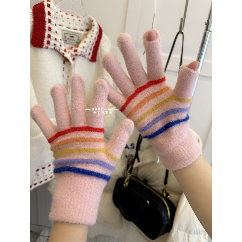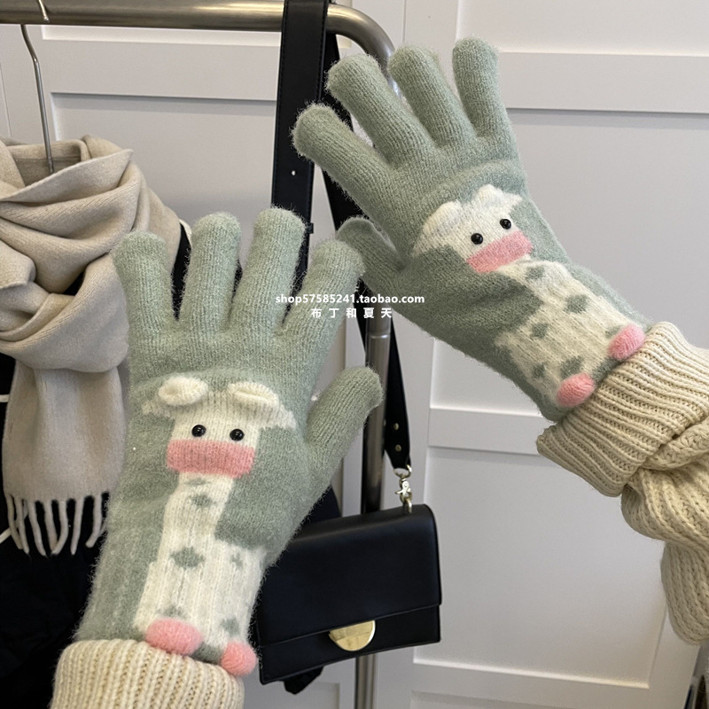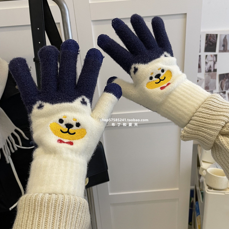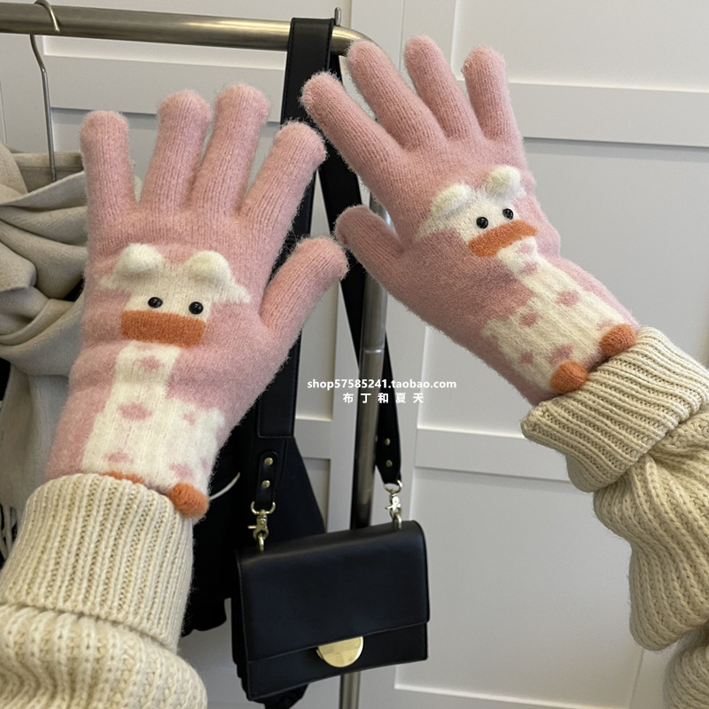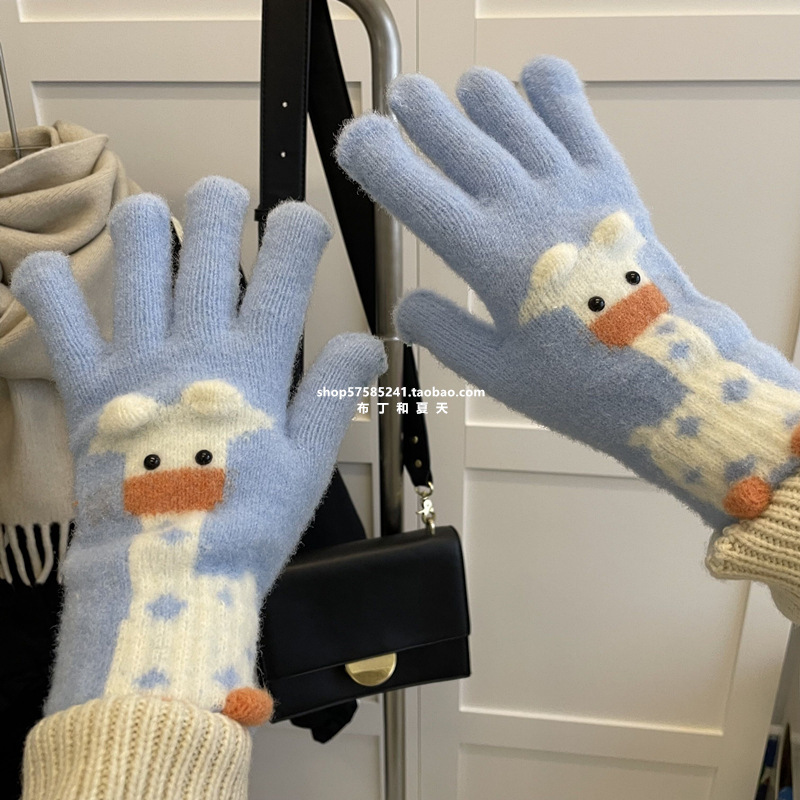 ins可爱雪人卡通手套女加绒保暖冬季五指可触屏分指骑车防风防寒