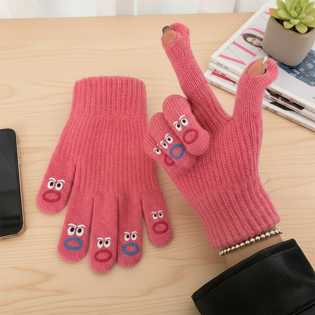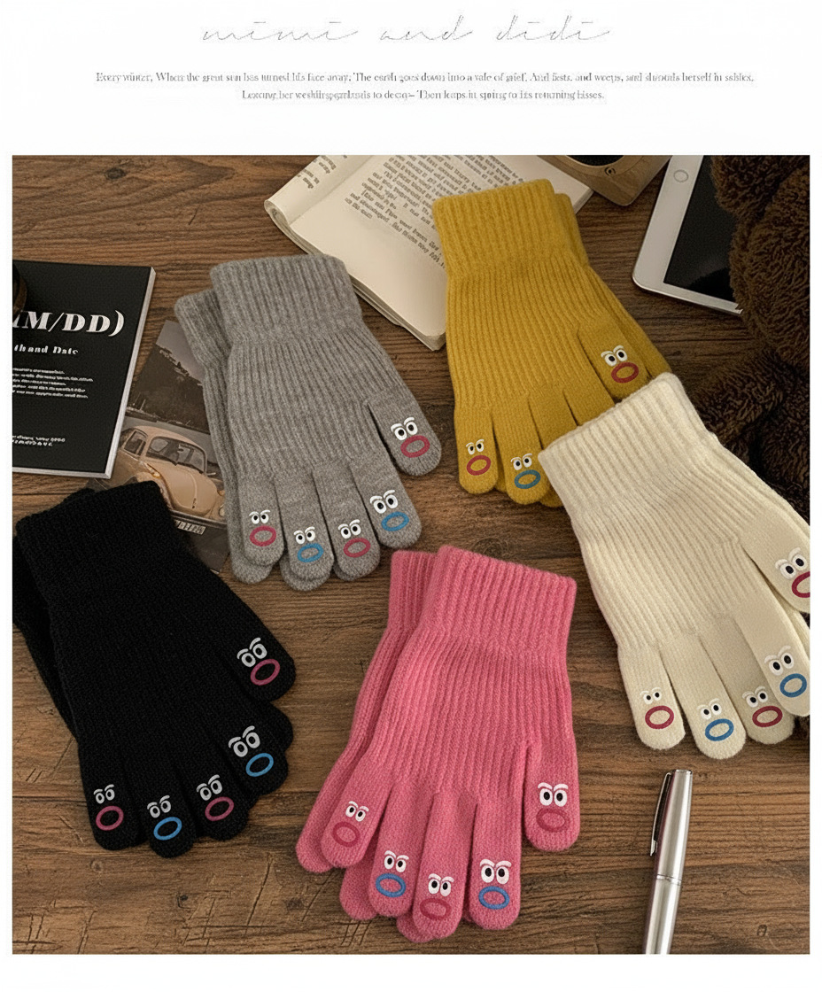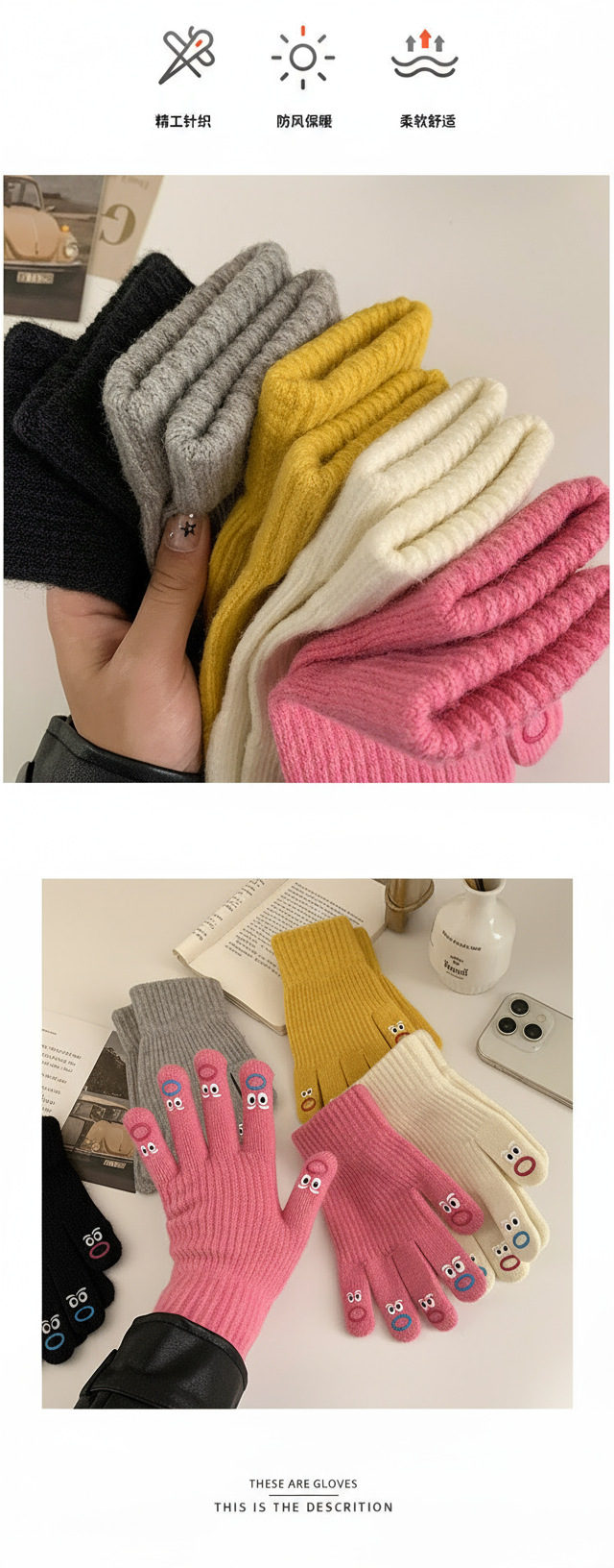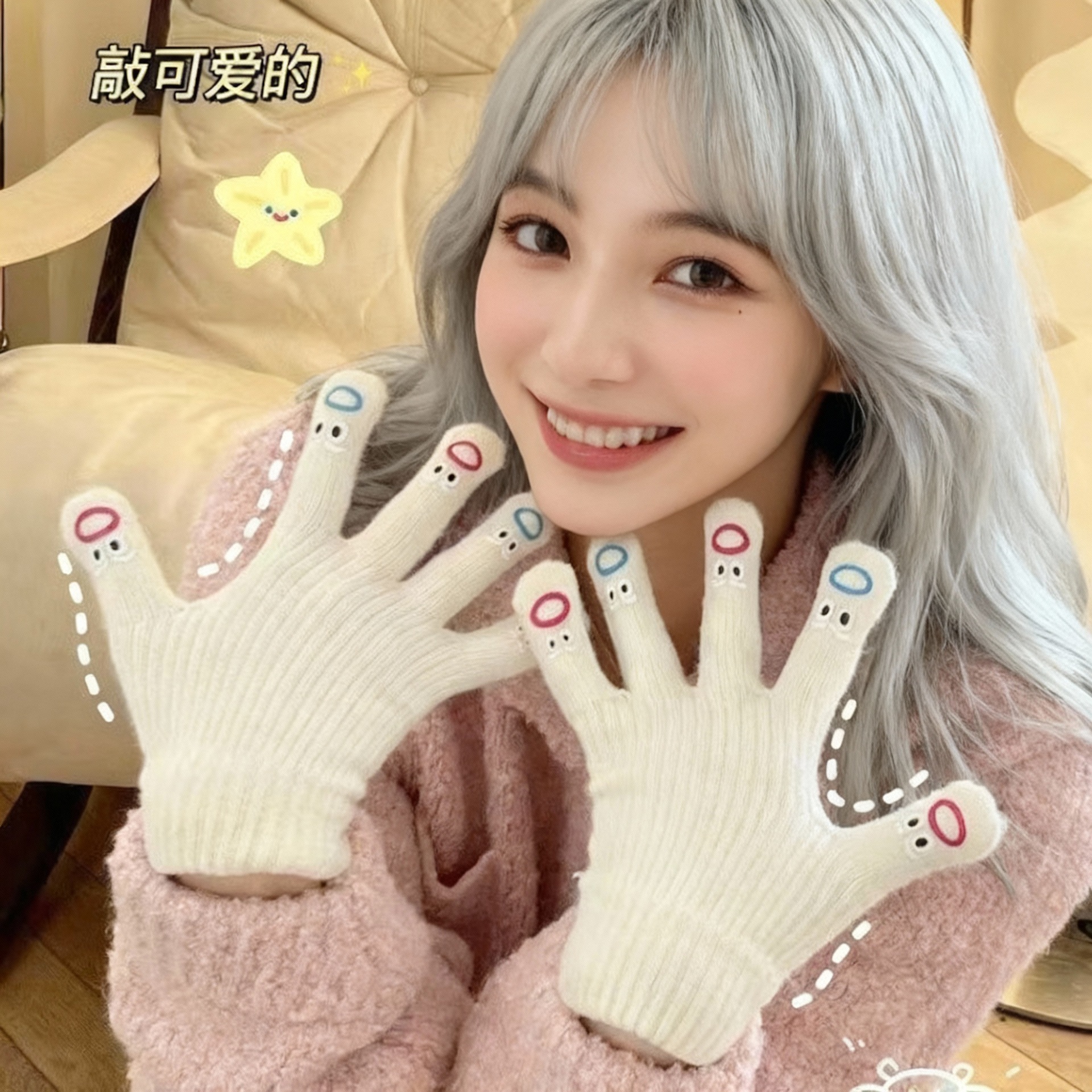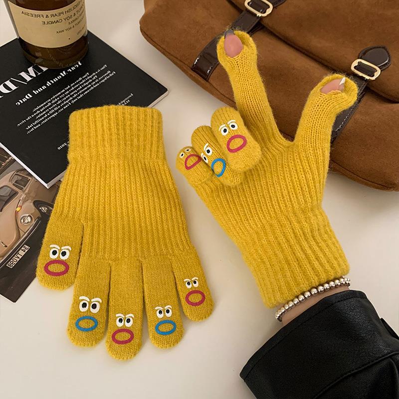 嘴嘴怪手套五指可爱韩版女冬季骑行可触摸屏毛线加厚保暖针织手套