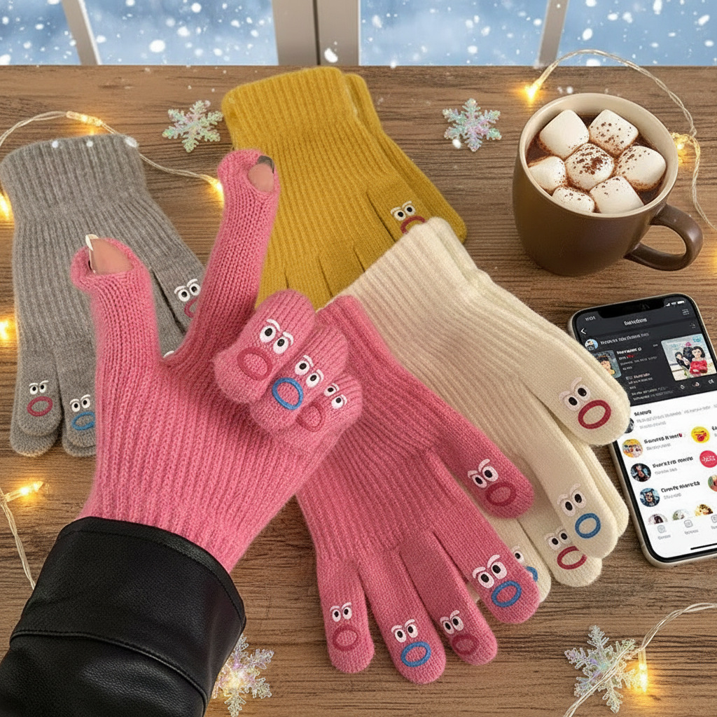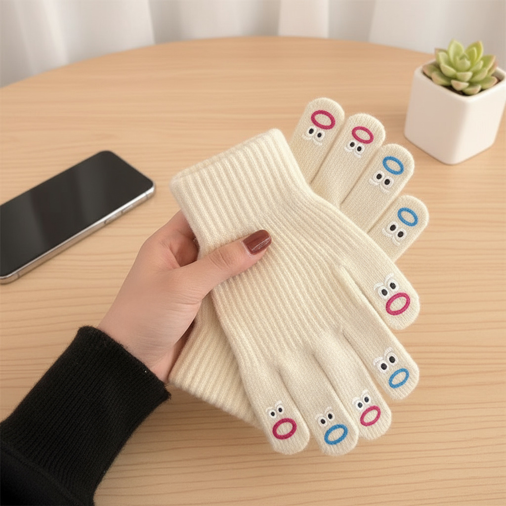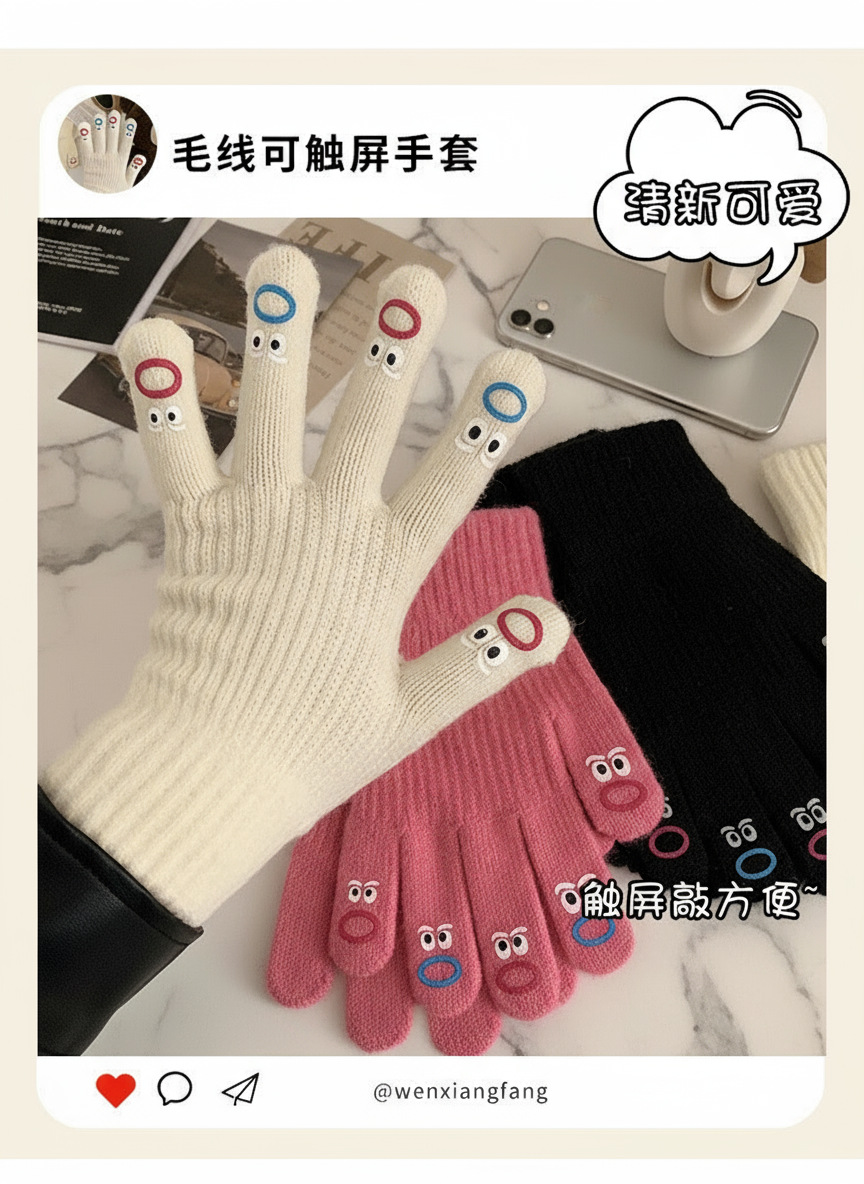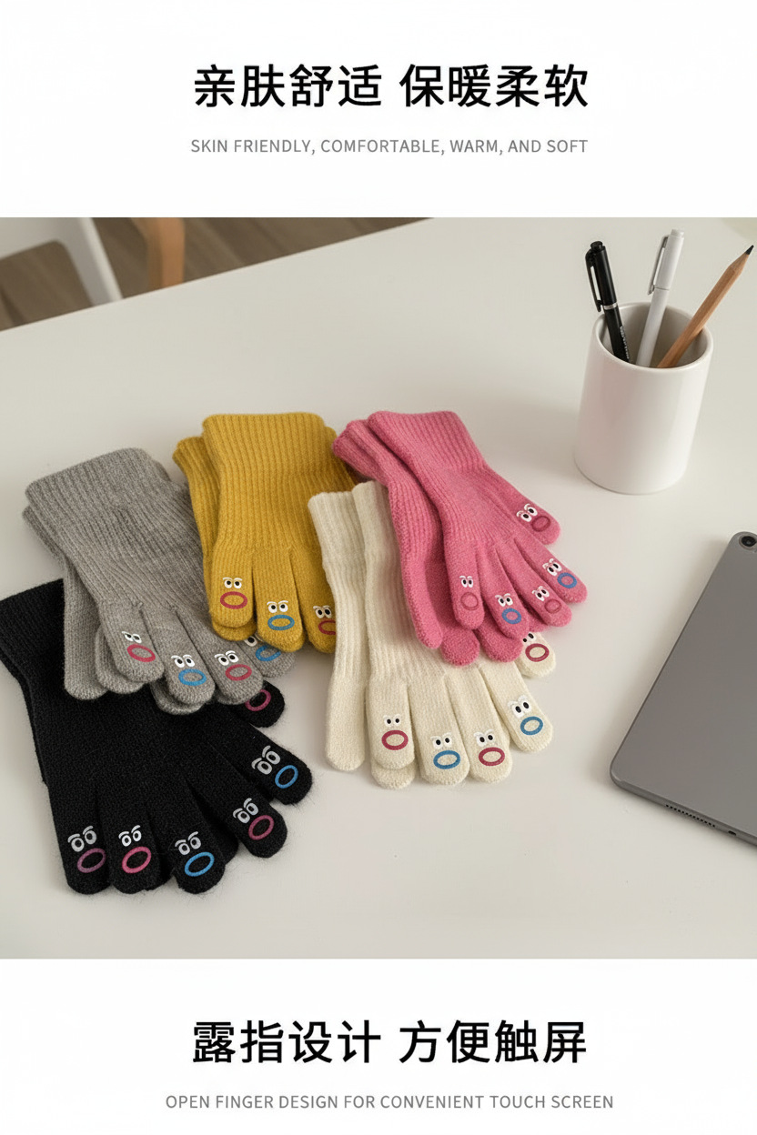 嘴嘴怪手套五指可爱韩版女冬季骑行可触摸屏毛线加厚保暖针织手套