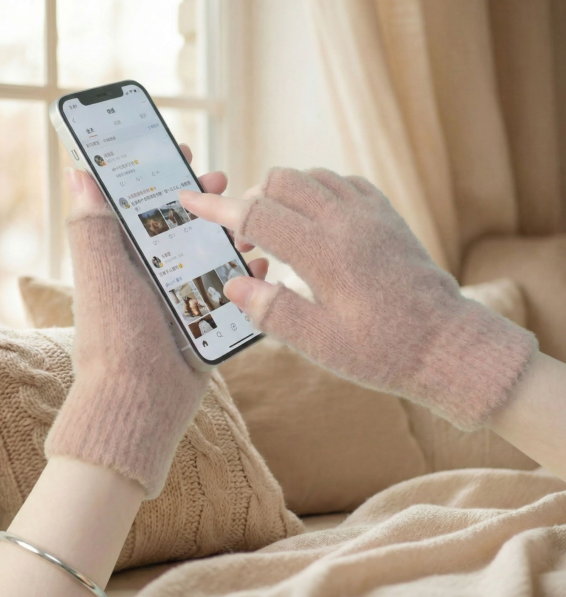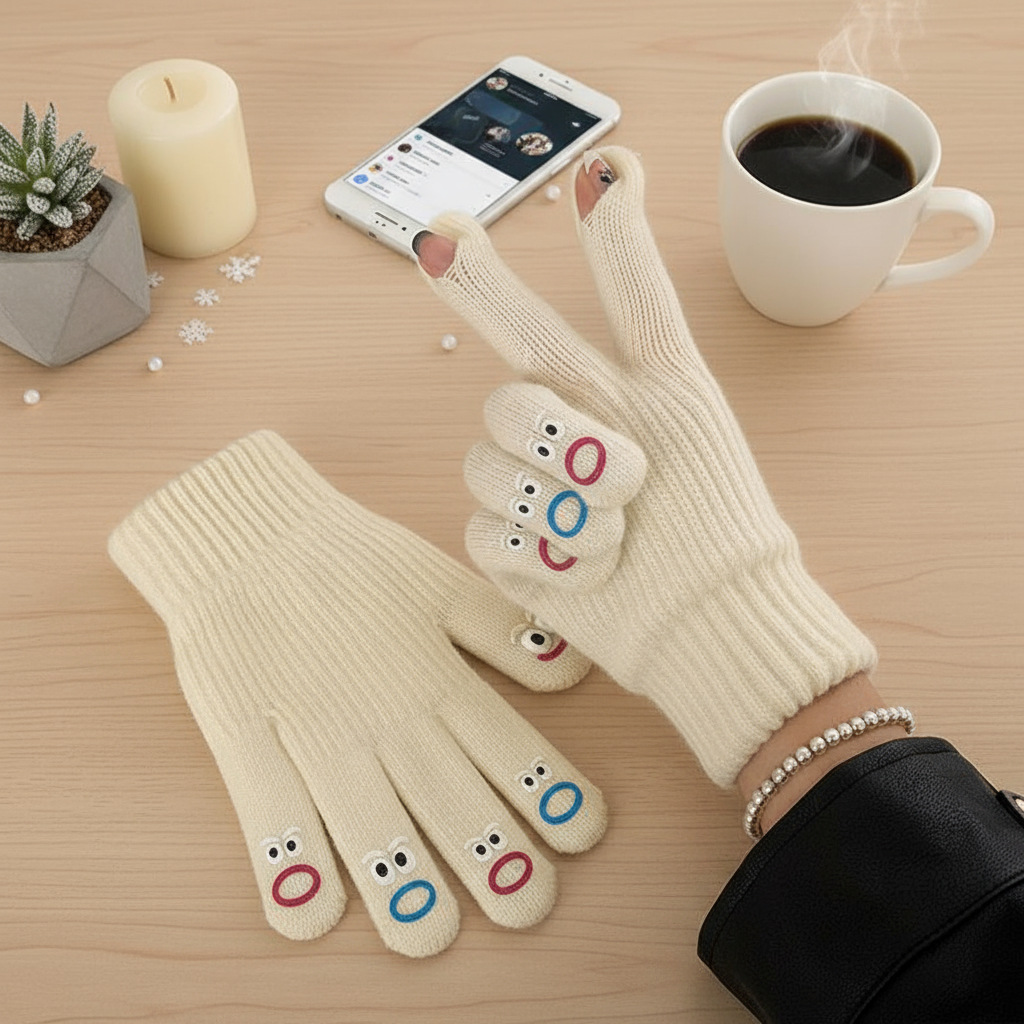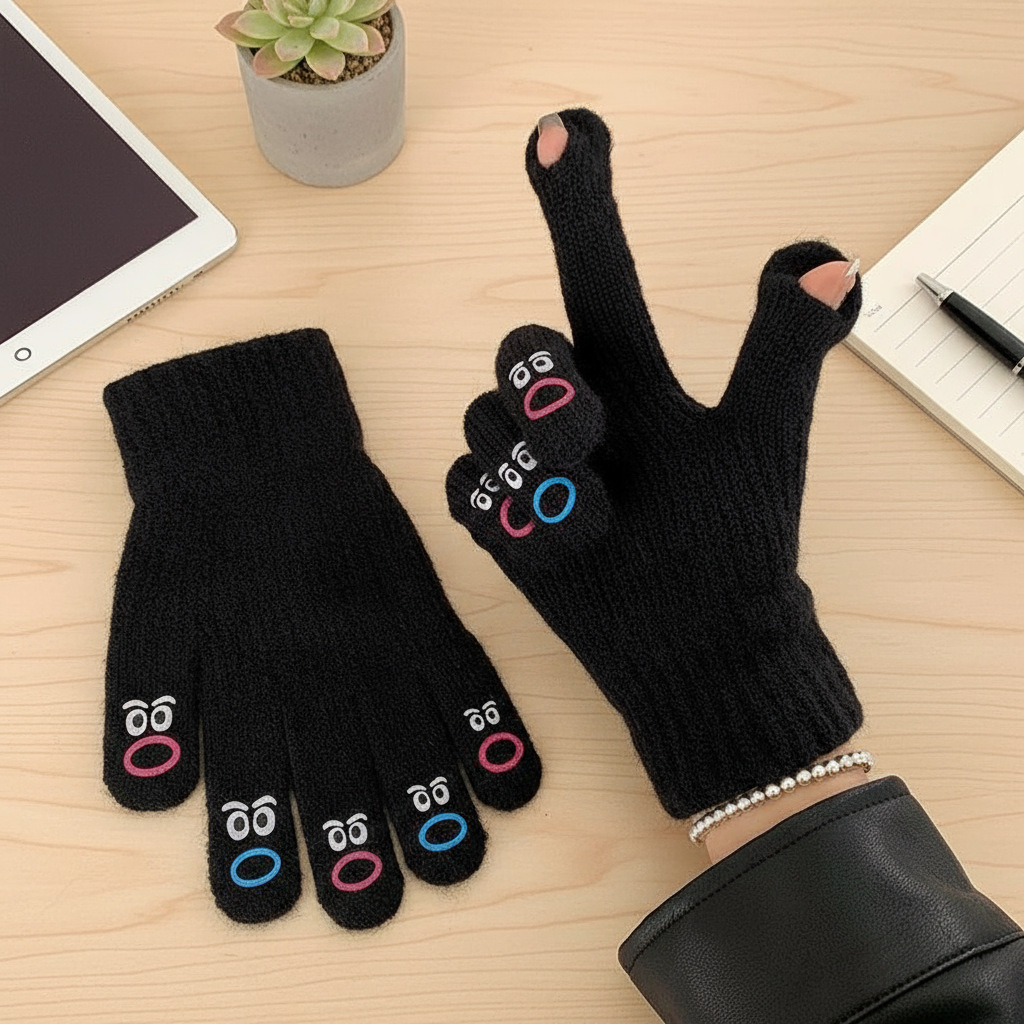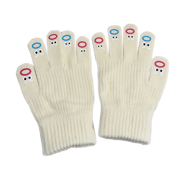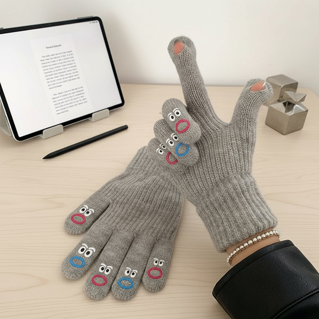 嘴嘴怪手套五指可爱韩版女冬季骑行可触摸屏毛线加厚保暖针织手套