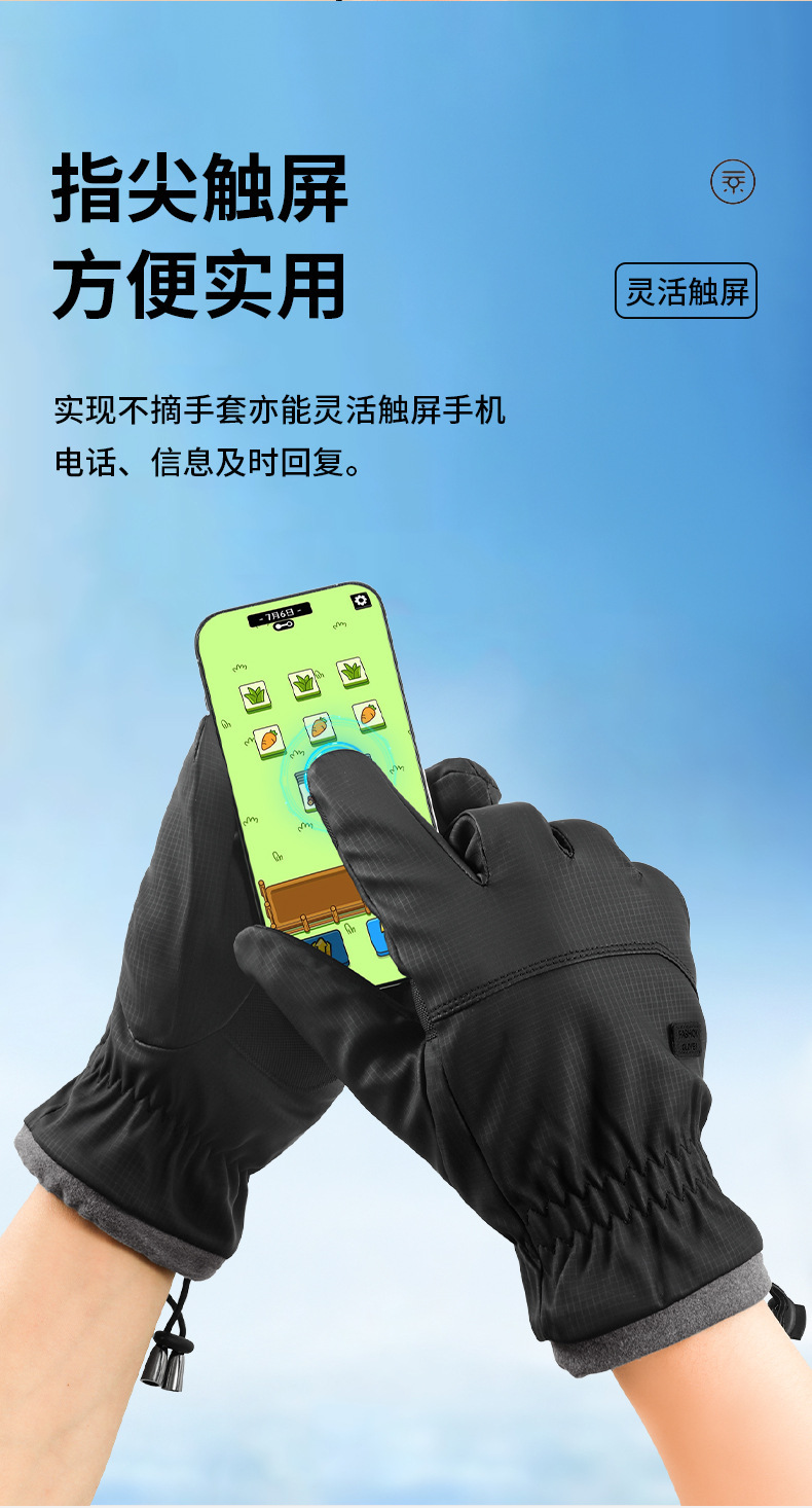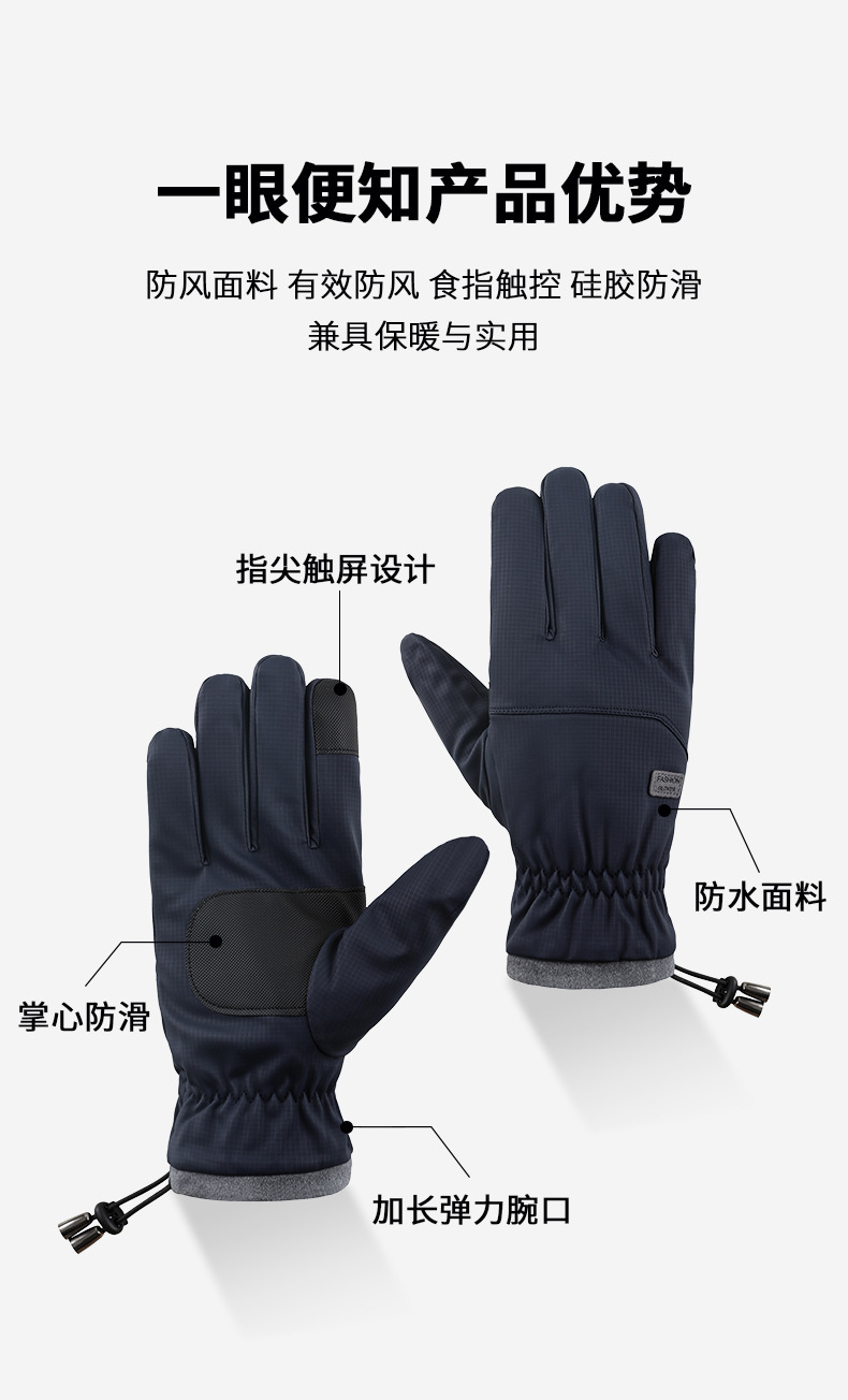 秋冬男士保暖手套肤感防风防寒防滑可触屏骑行电动车男女冬季手套