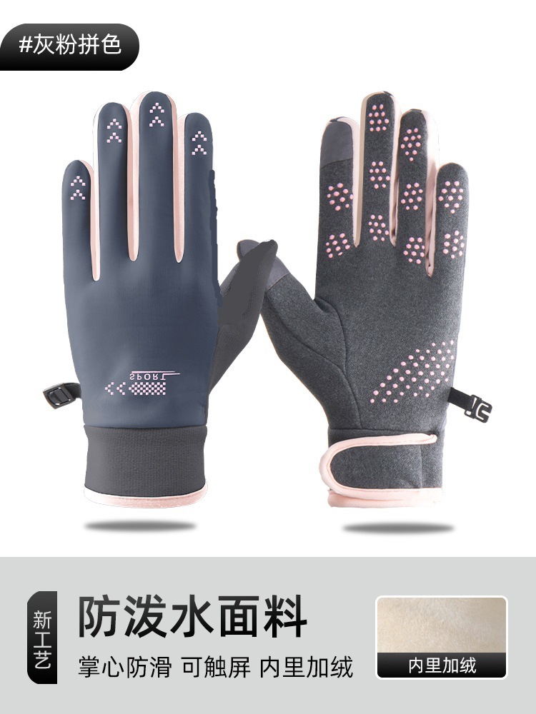 春秋冬季保暖手套户外骑行运动男女情侣防滑防风防水薄绒触屏手套