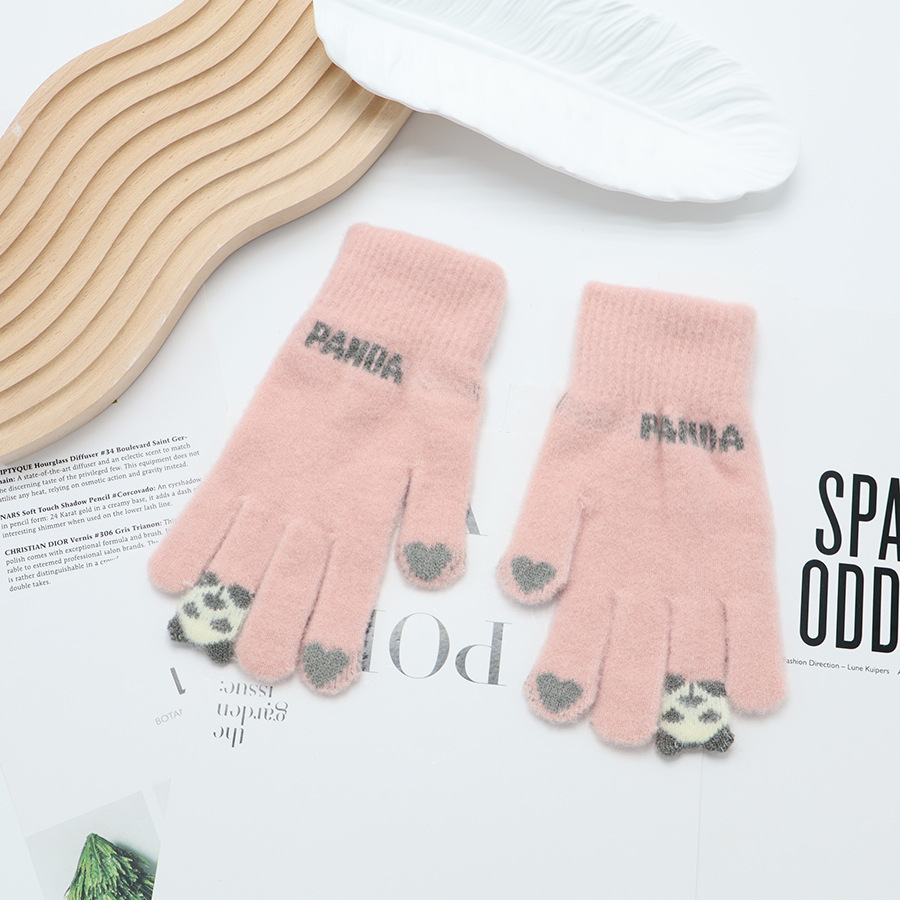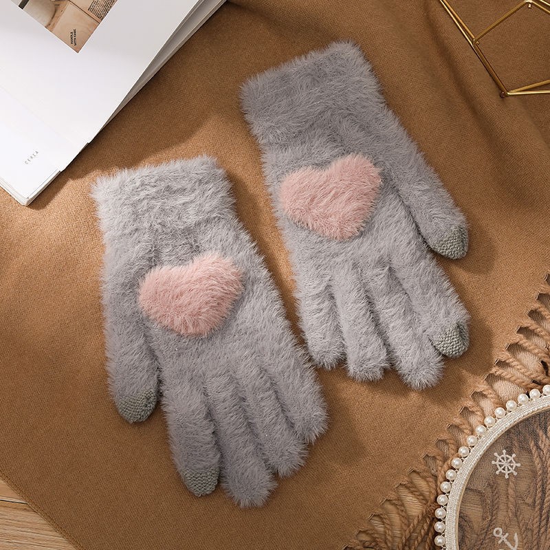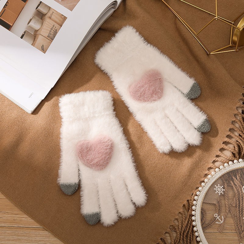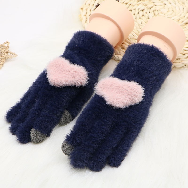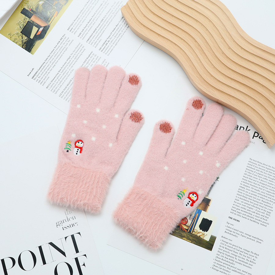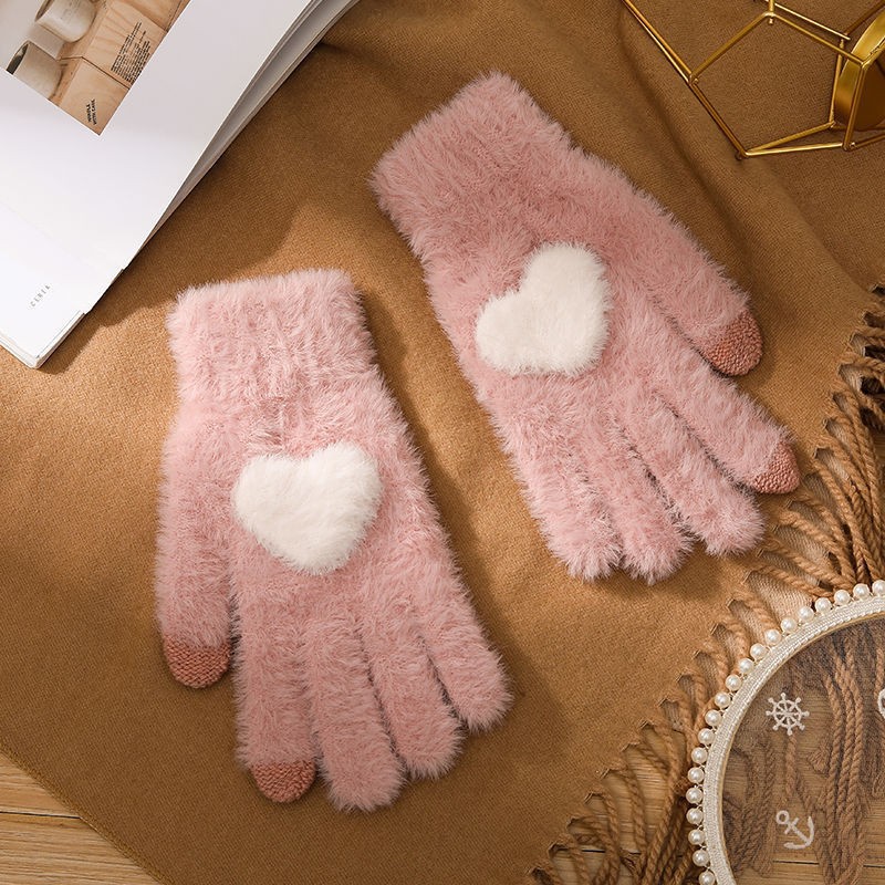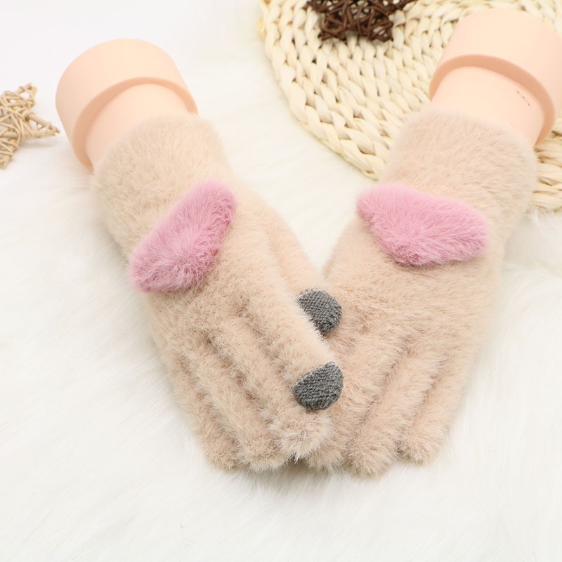 韩系保暖手套冬季加厚骑车分指防寒可触屏毛绒水晶绒可爱女士新款