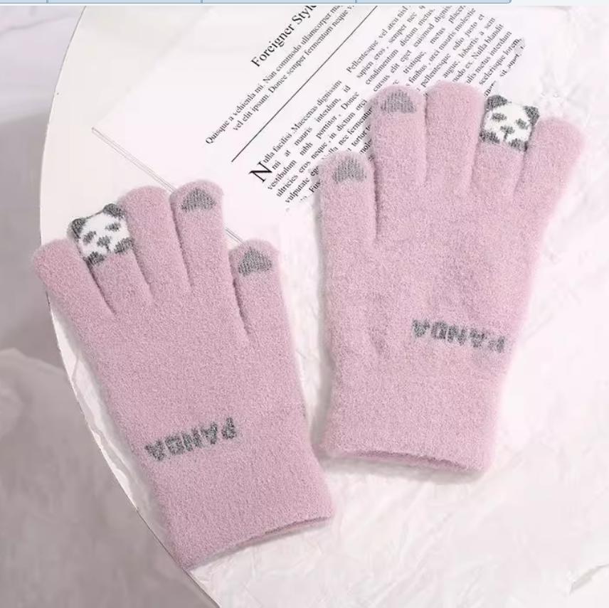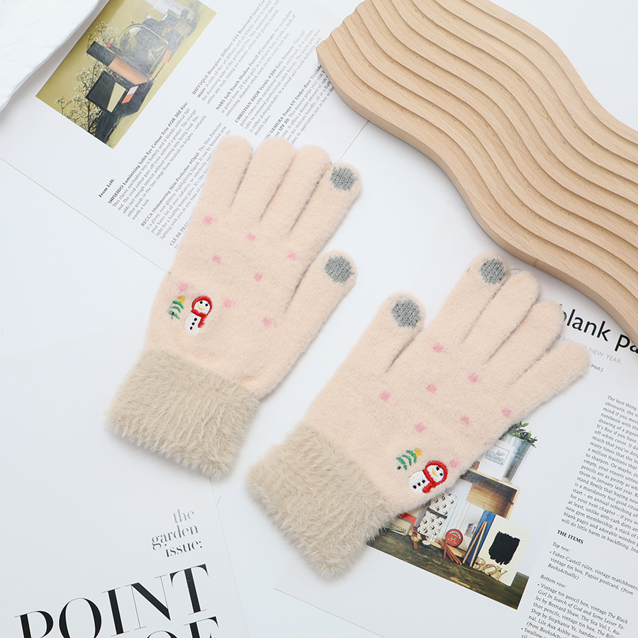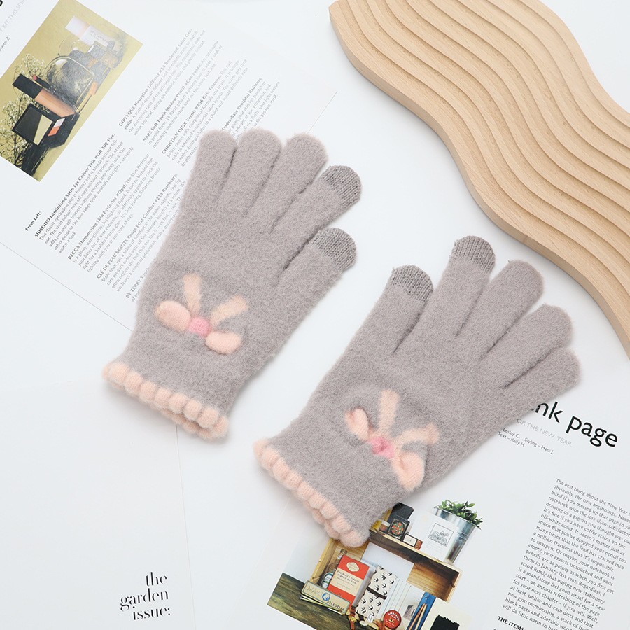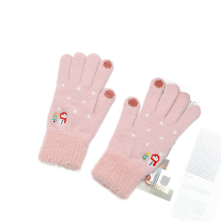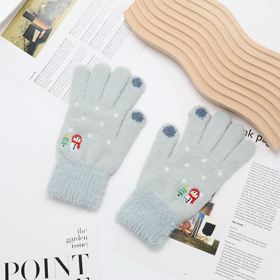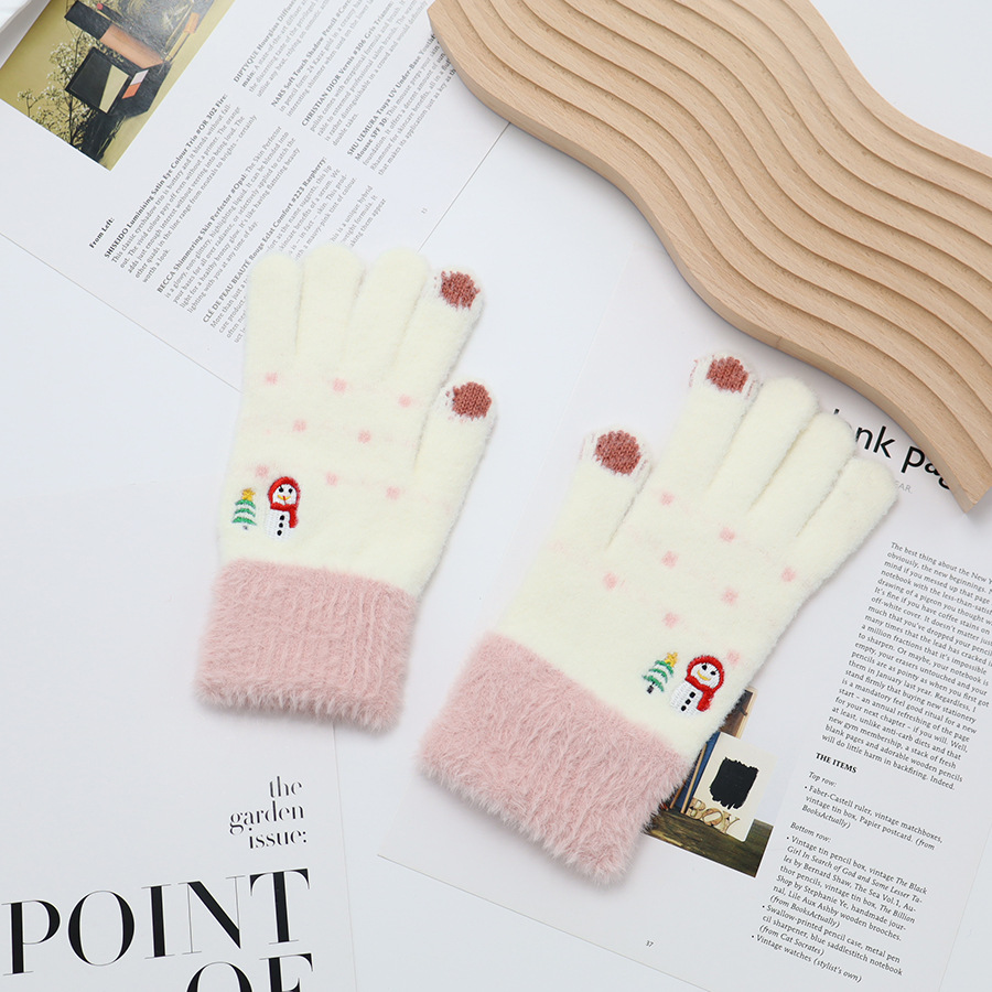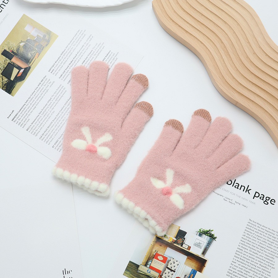 韩系保暖手套冬季加厚骑车分指防寒可触屏毛绒水晶绒可爱女士新款