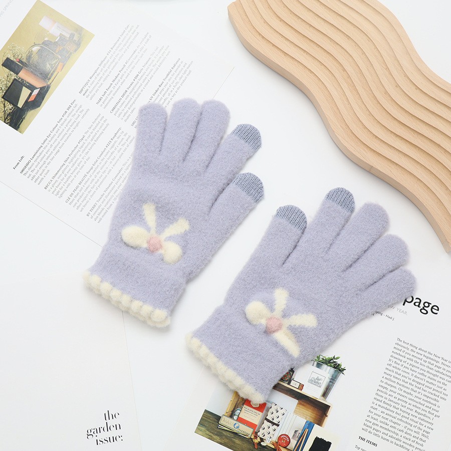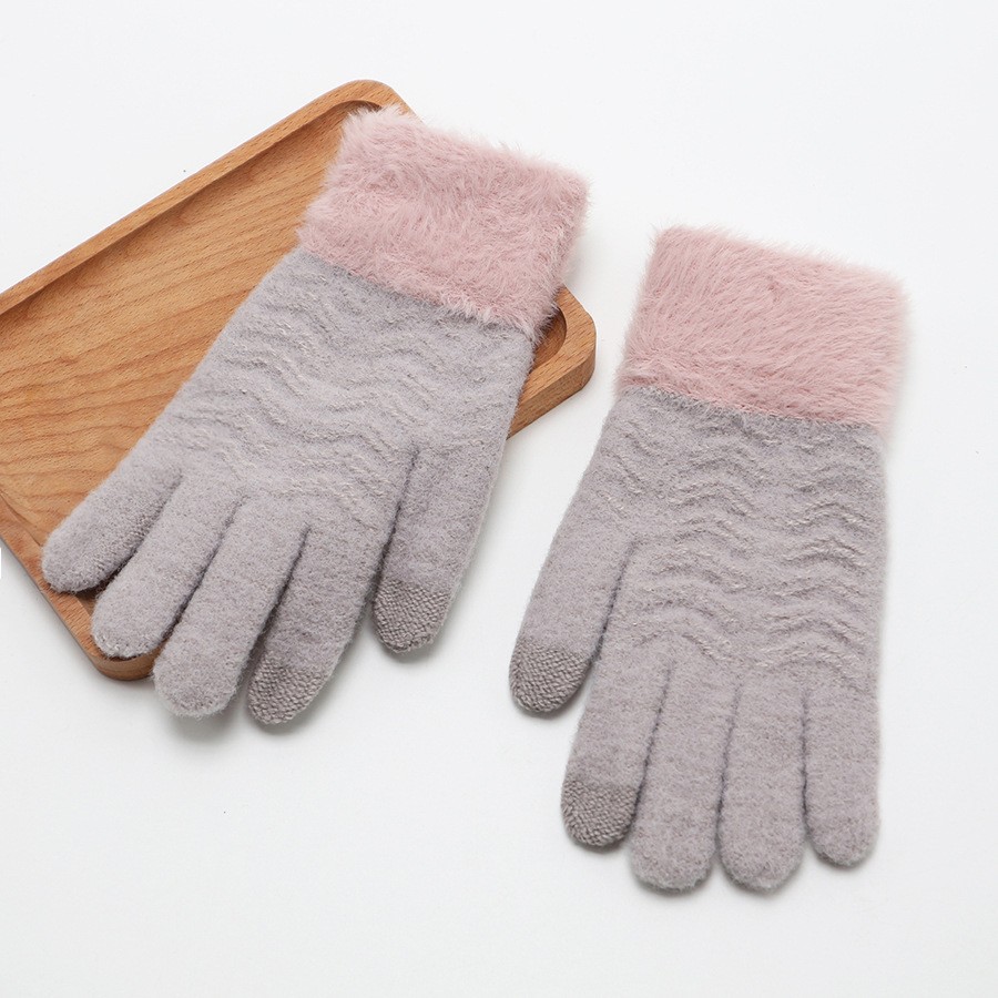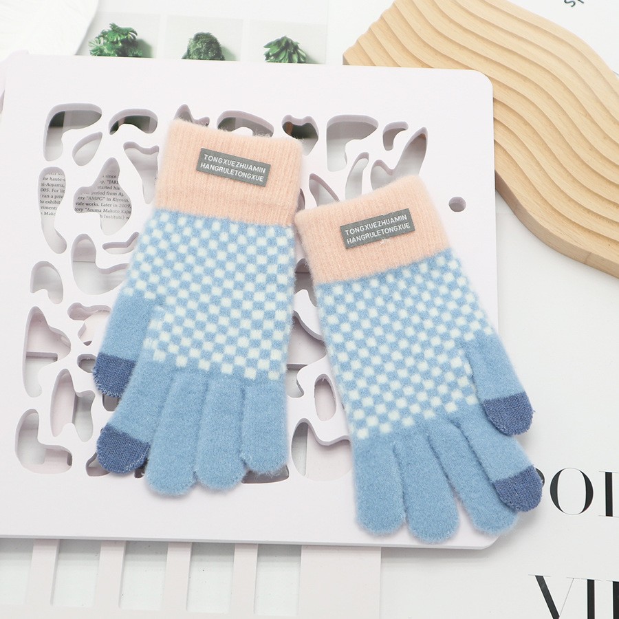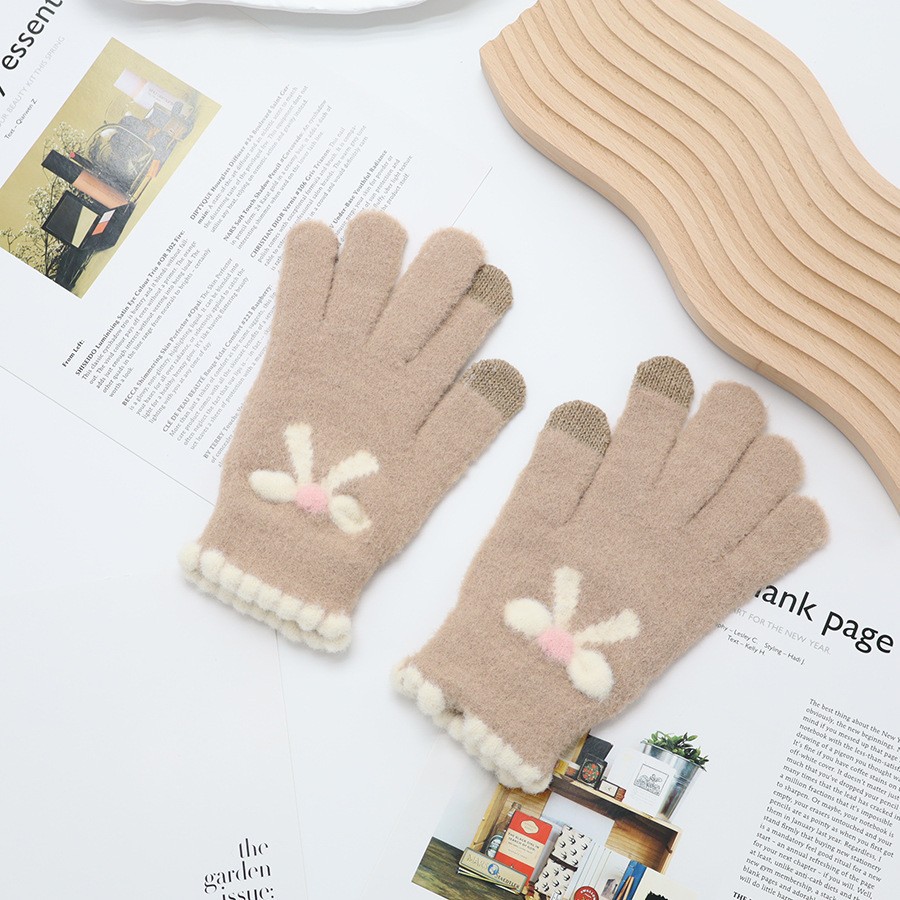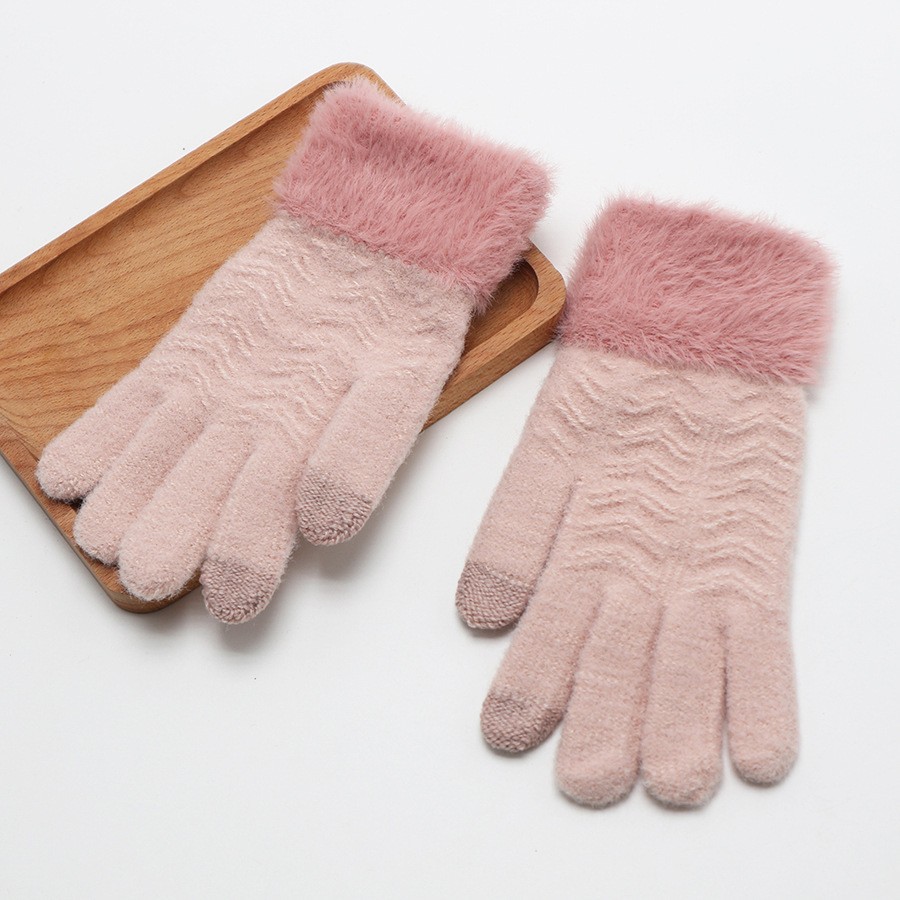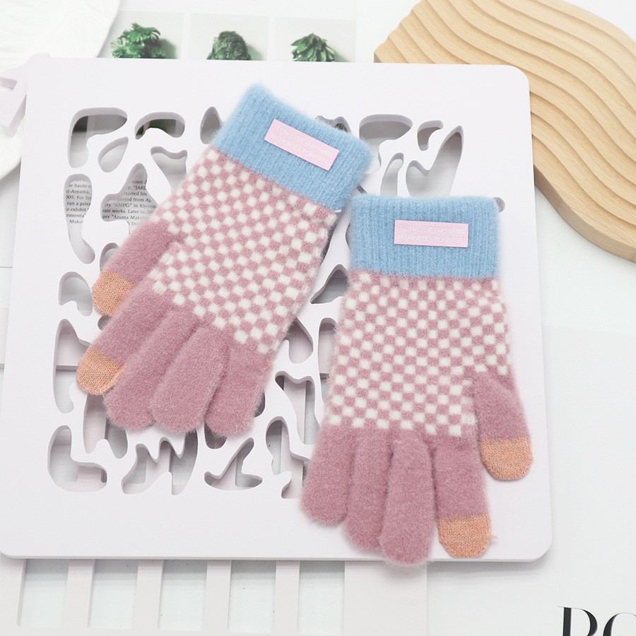 韩系保暖手套冬季加厚骑车分指防寒可触屏毛绒水晶绒可爱女士新款