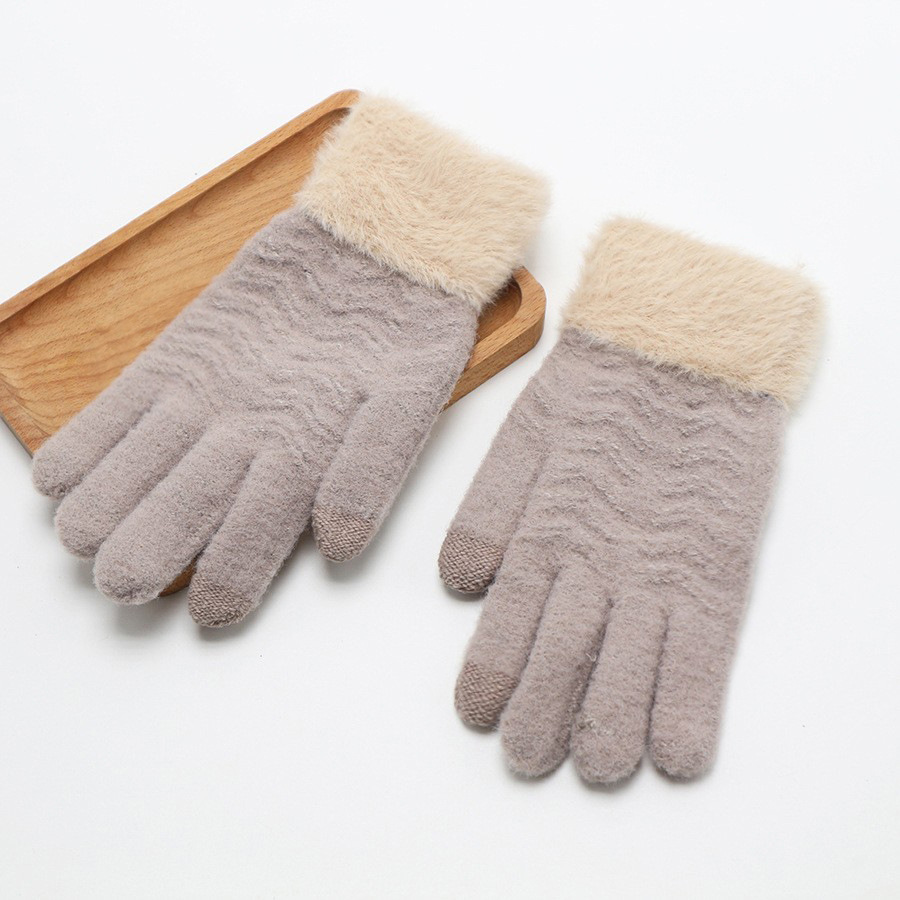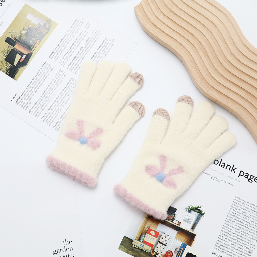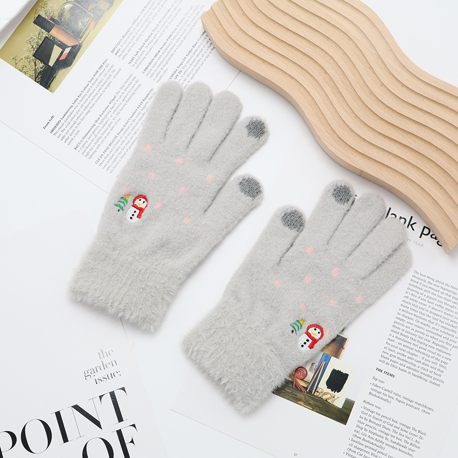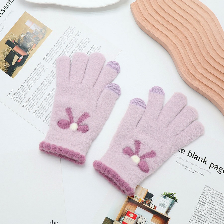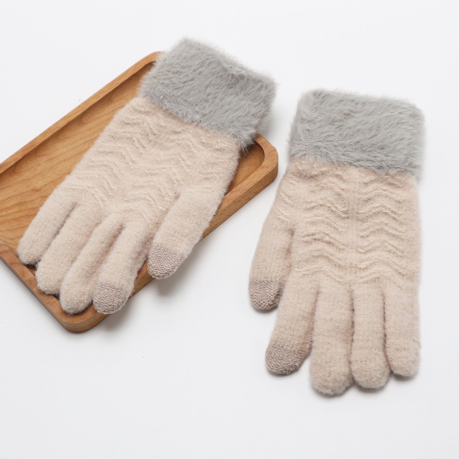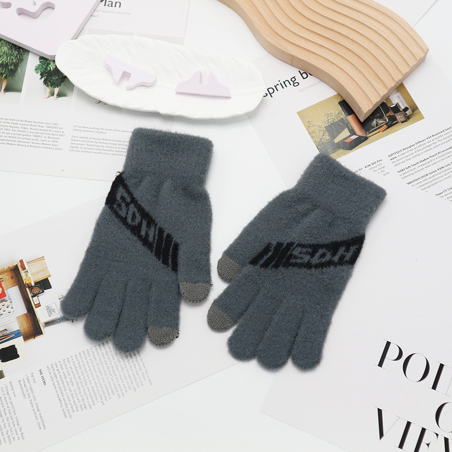 韩系保暖手套冬季加厚骑车分指防寒可触屏毛绒水晶绒可爱女士新款