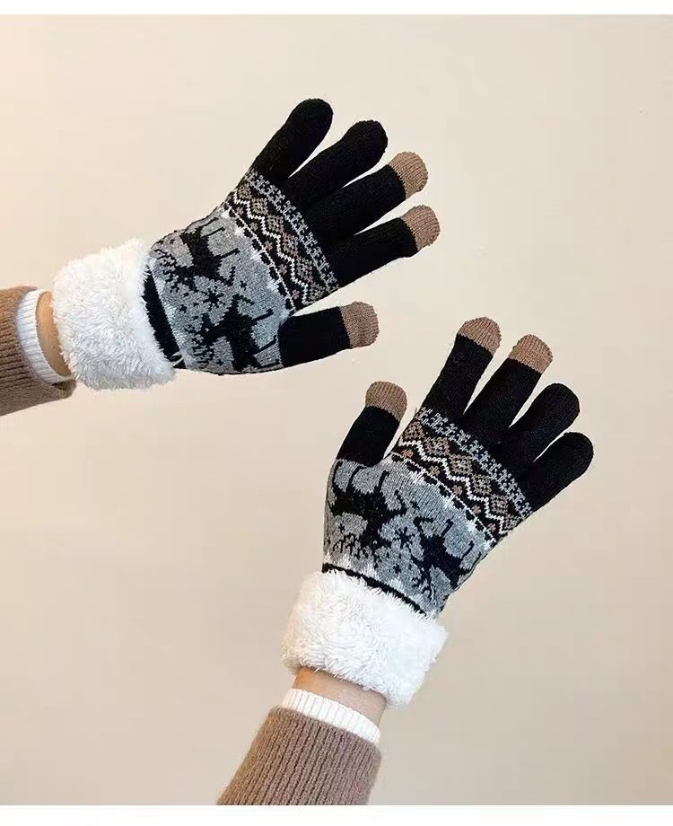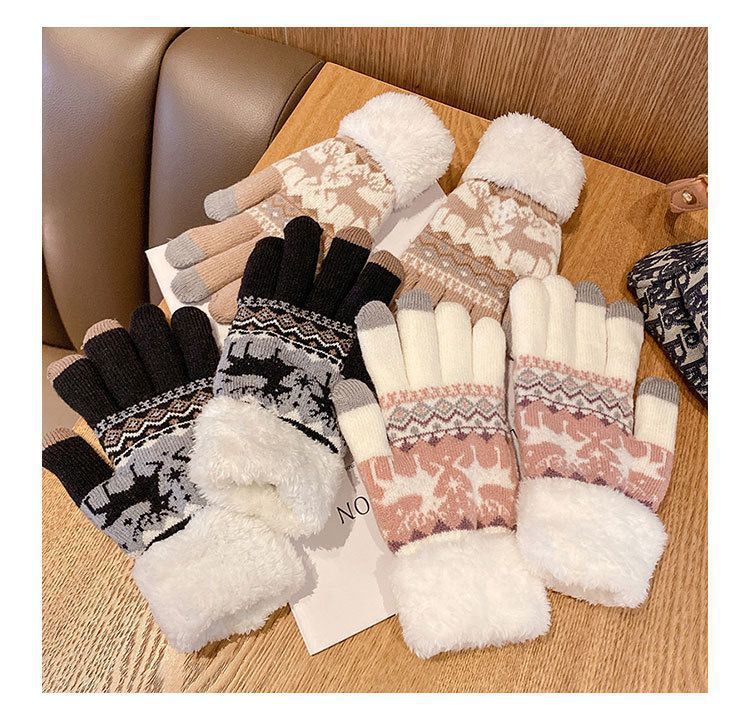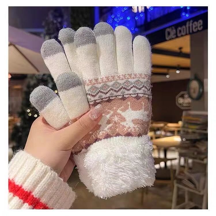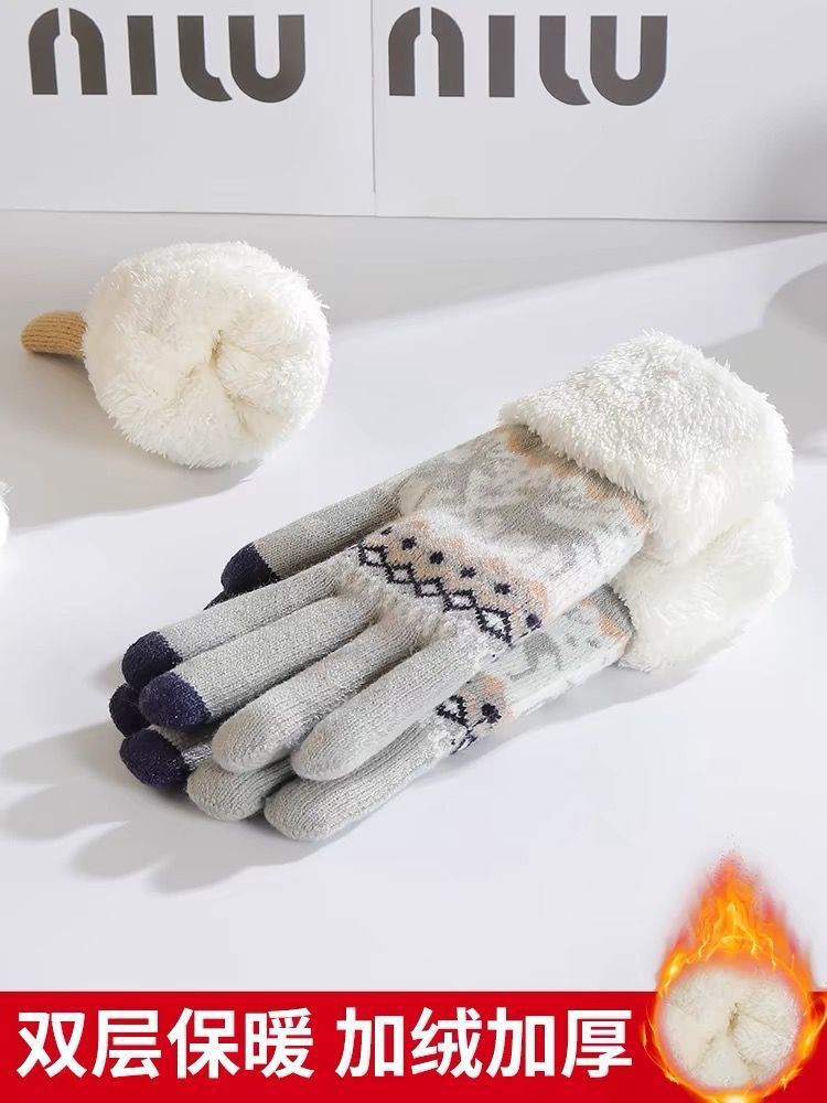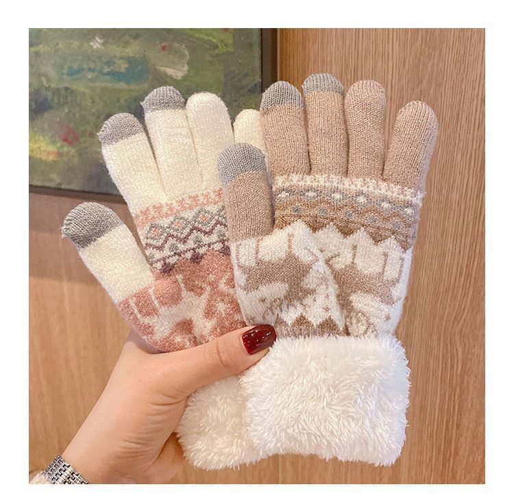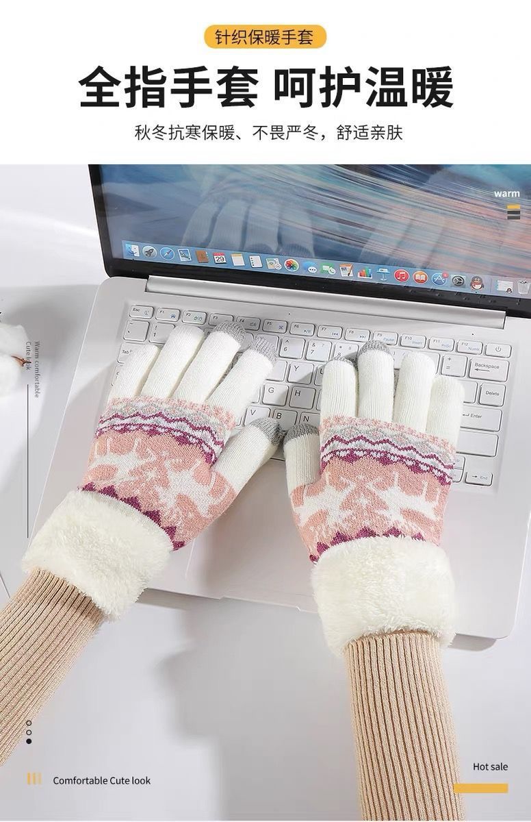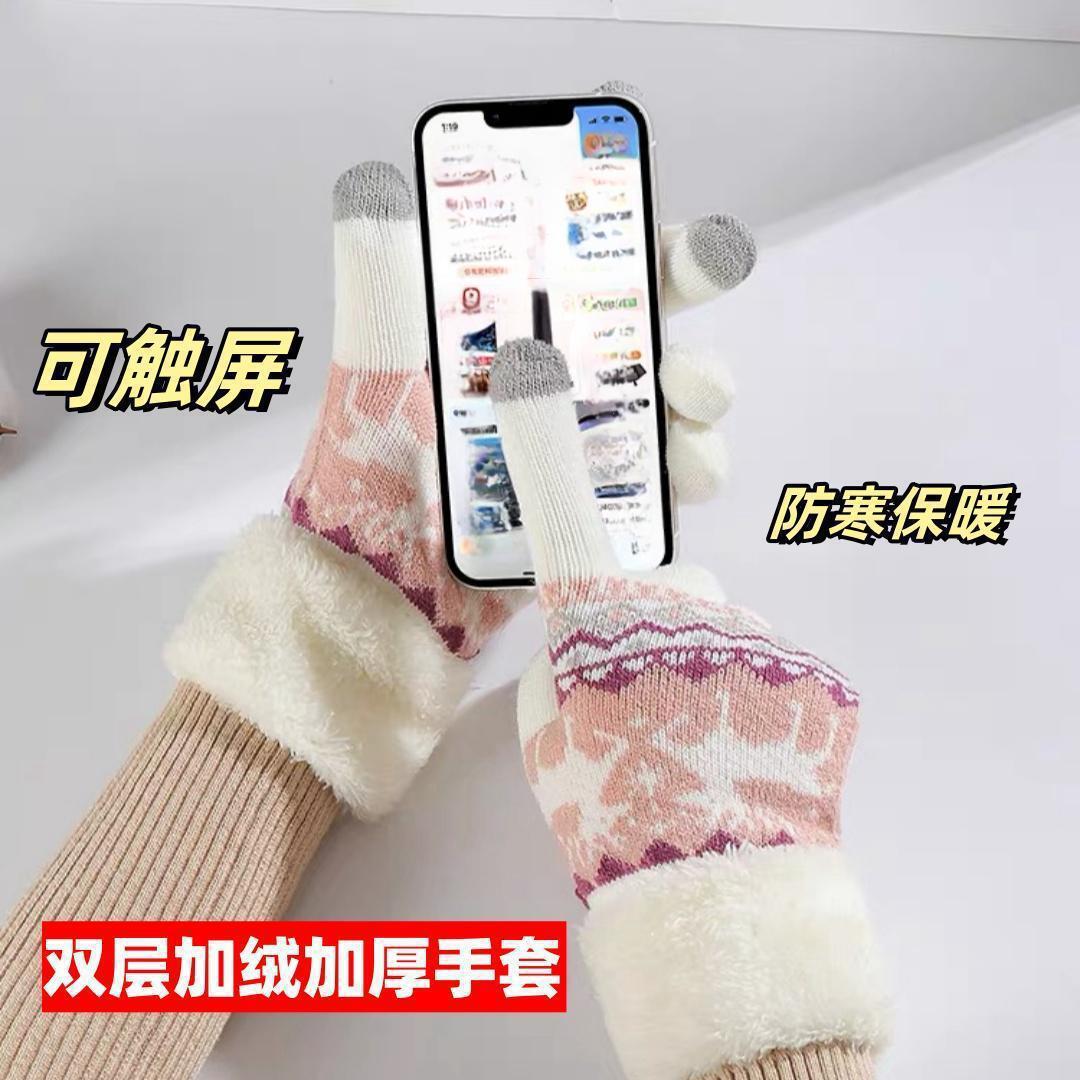 可爱针织手套冬天女款学生ins骑车韩版加绒加厚保暖触屏灵敏