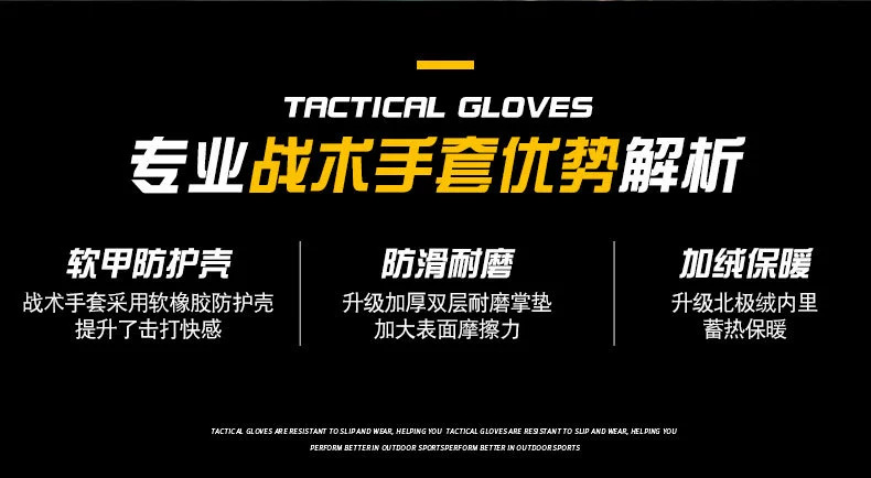加绒保暖防寒滑雪战术手套冬季户外训练登山骑行防滑耐磨摩托车男