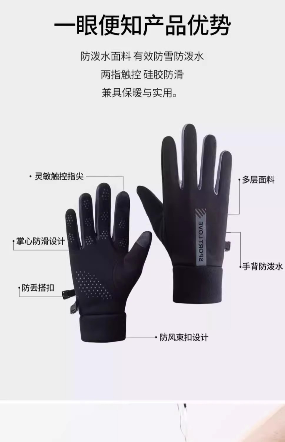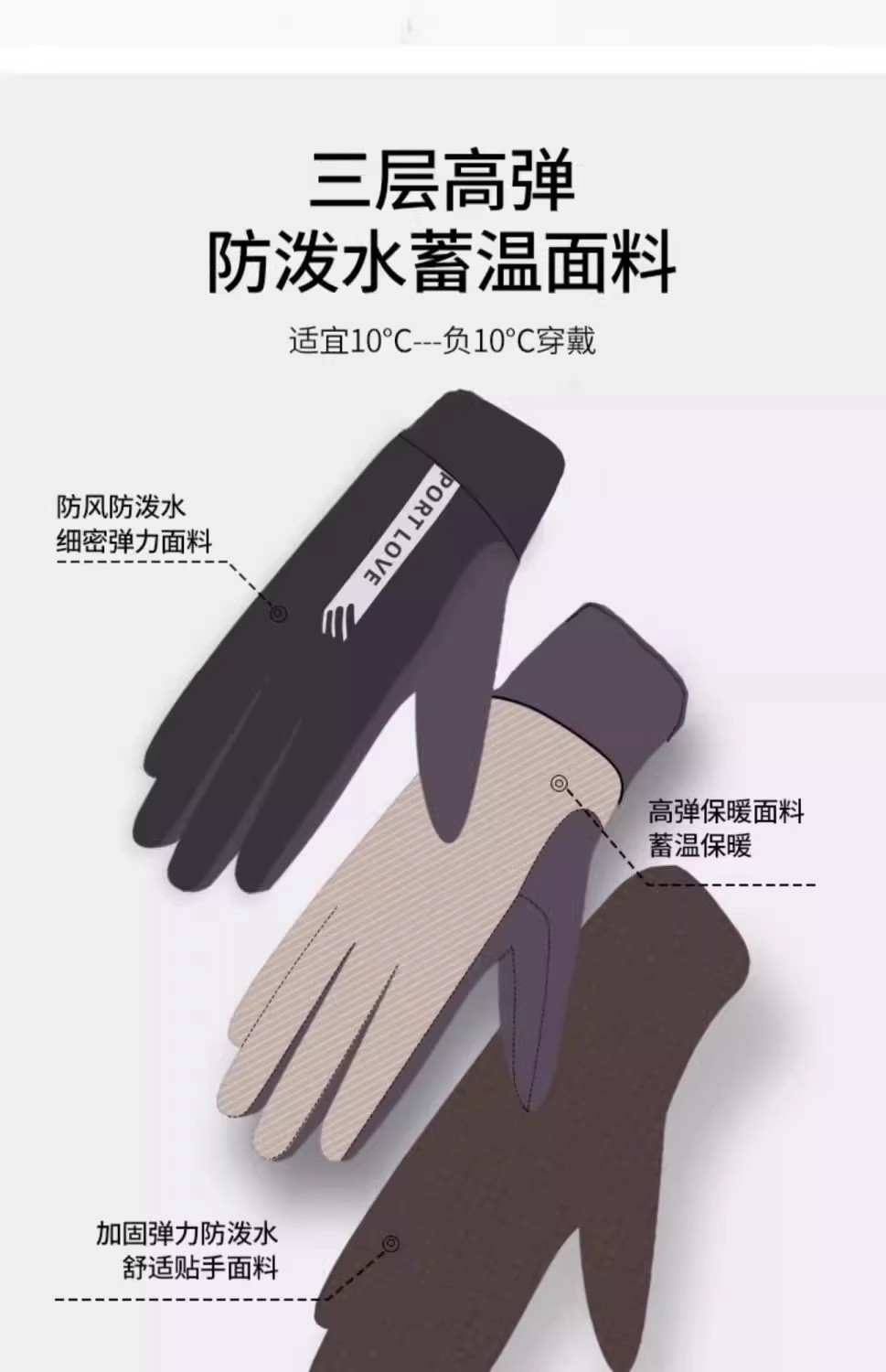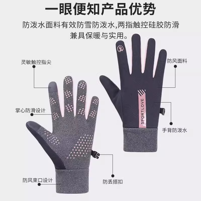 防水冬季保暖男手套骑车女保暖加绒加厚男骑行开车电动车防滑触屏