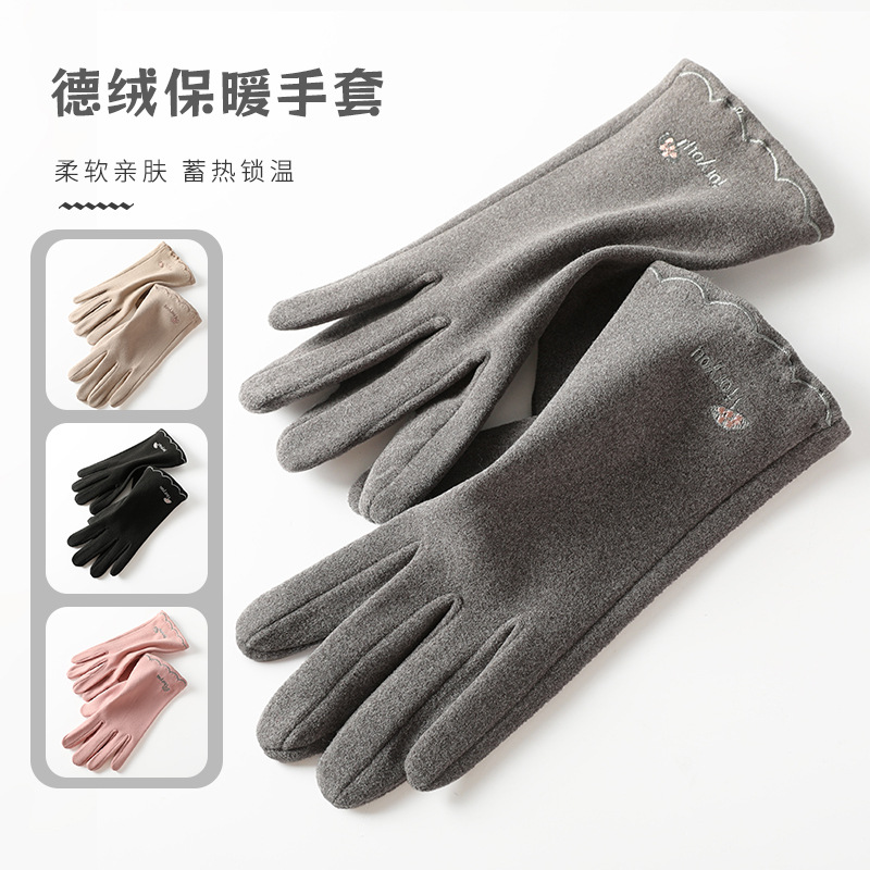 保暖手套批发女春秋冬天德绒薄款防风防寒可触屏户外开车骑行手套