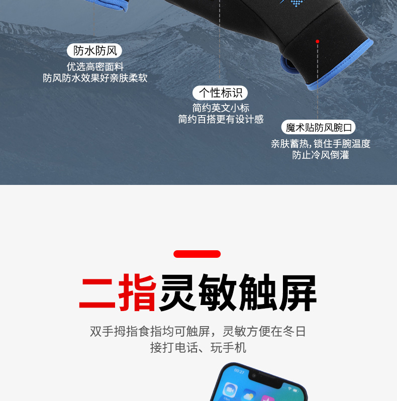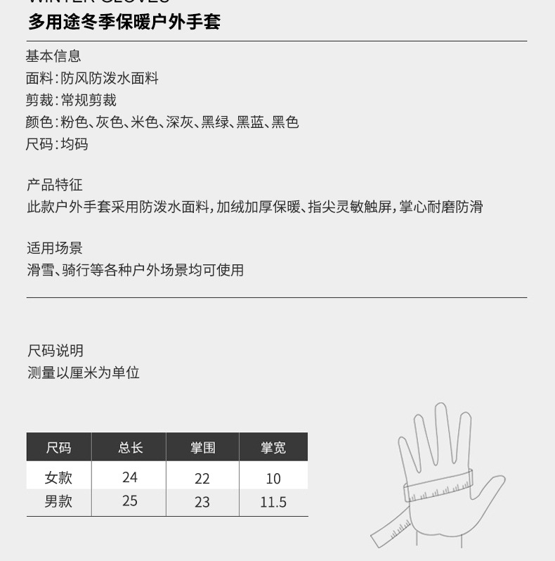 秋冬季情侣款德绒保暖手套男女新款触屏开车骑行防滑防寒运动手套