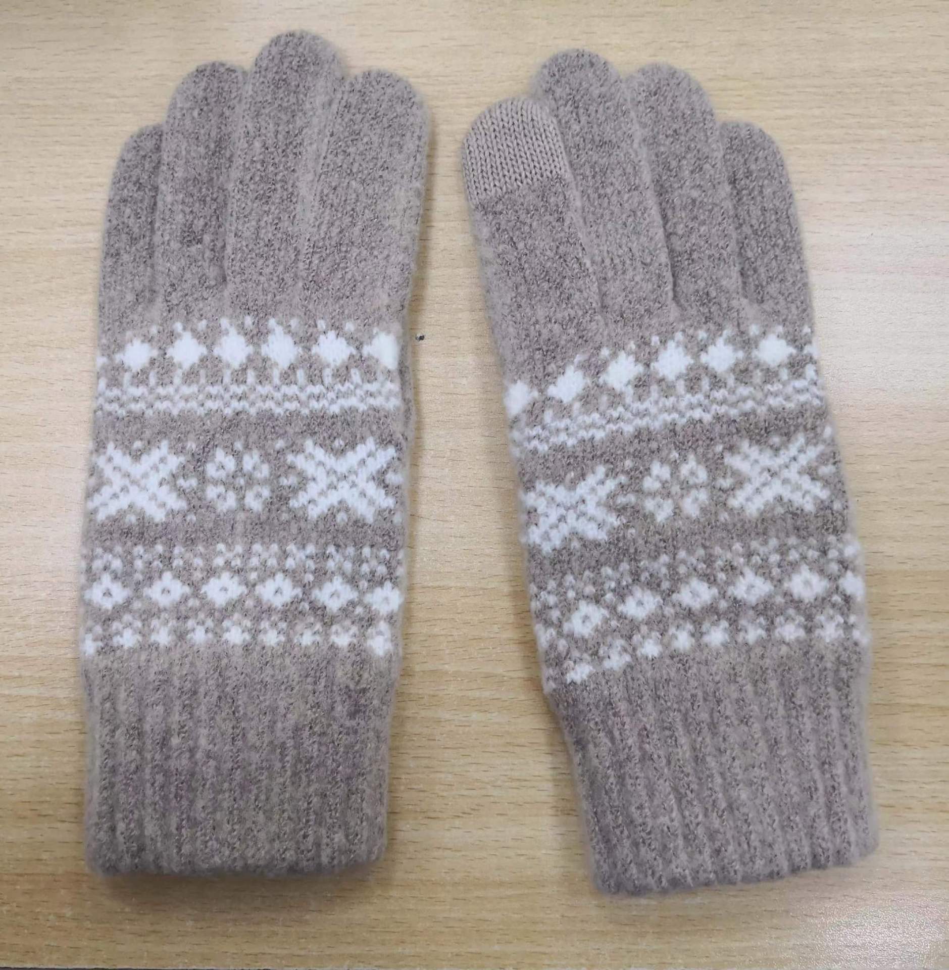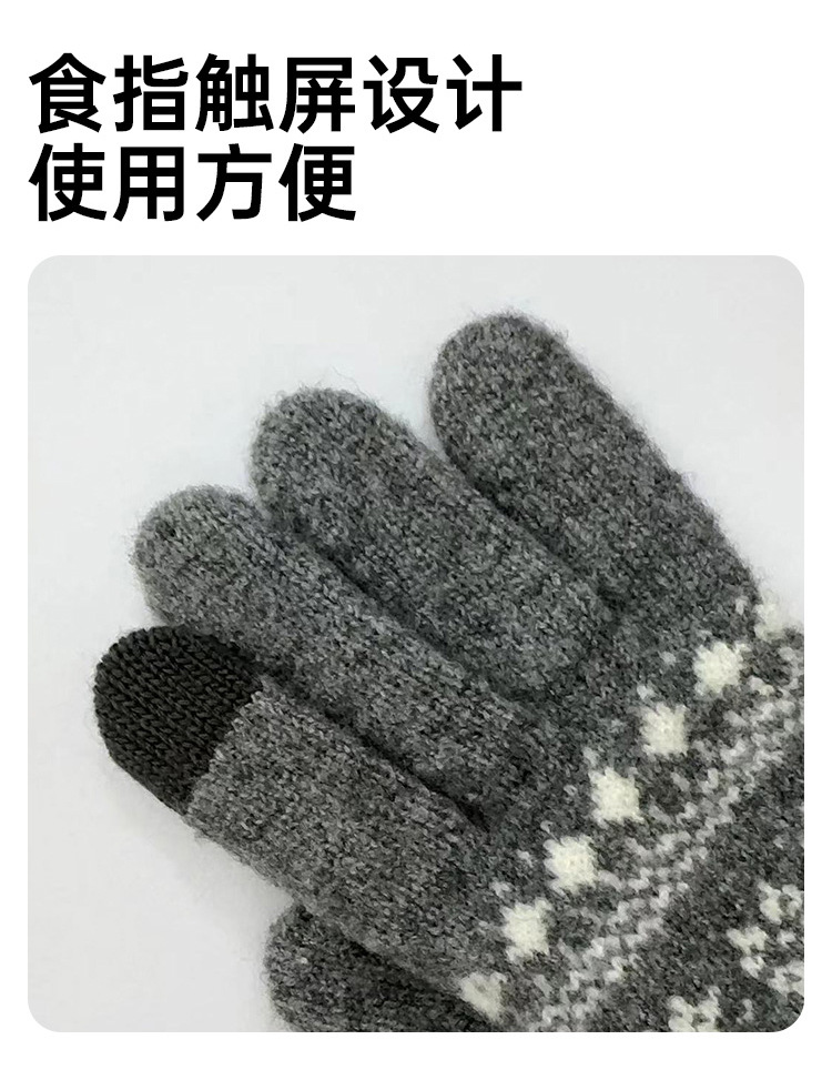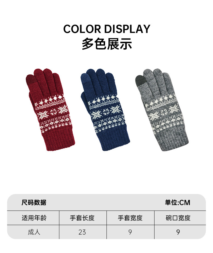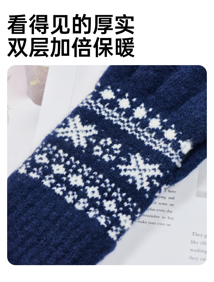 女式保暖手套可爱雪花提花触屏手套冬季新款现货针织防寒骑行手套