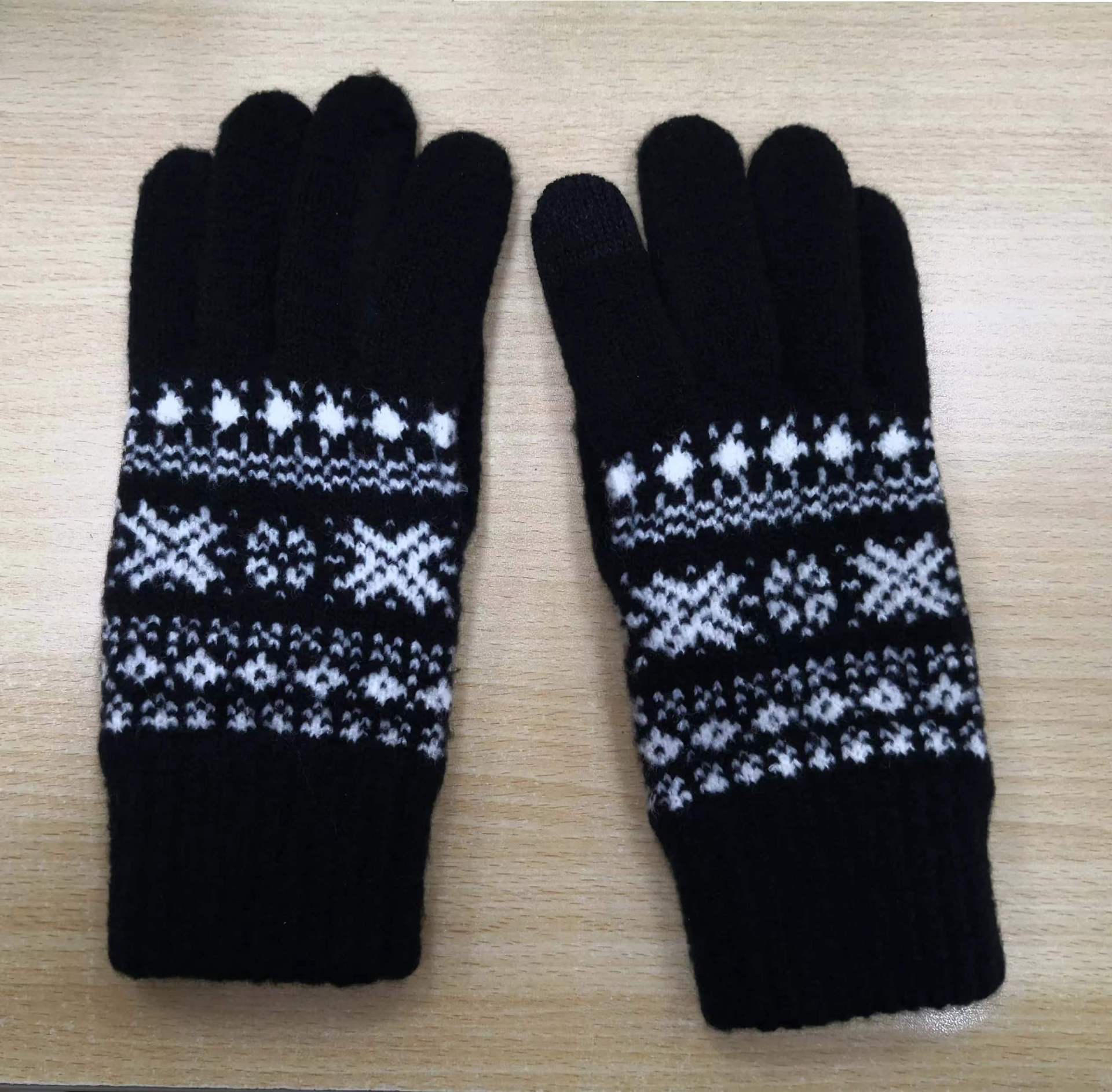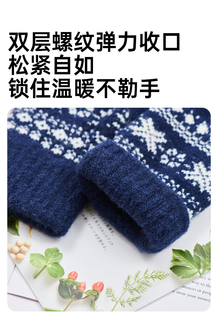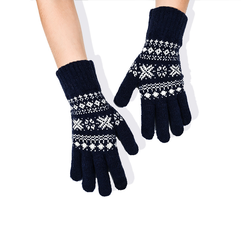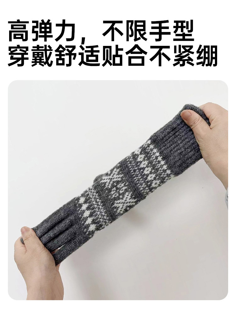 女式保暖手套可爱雪花提花触屏手套冬季新款现货针织防寒骑行手套