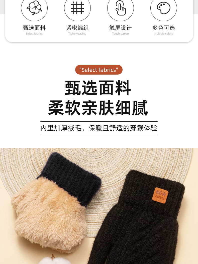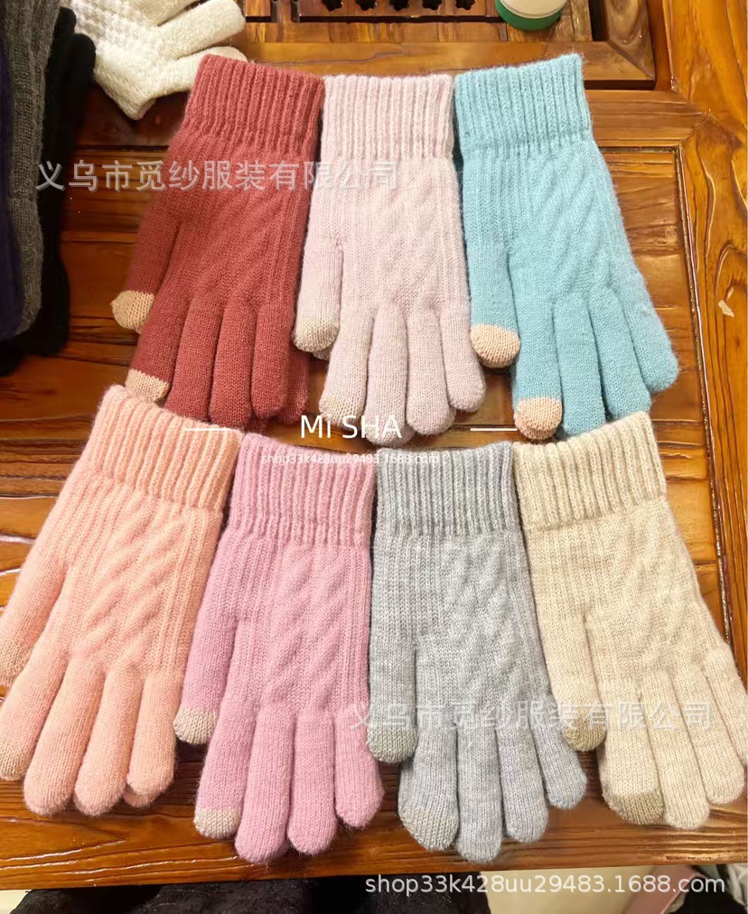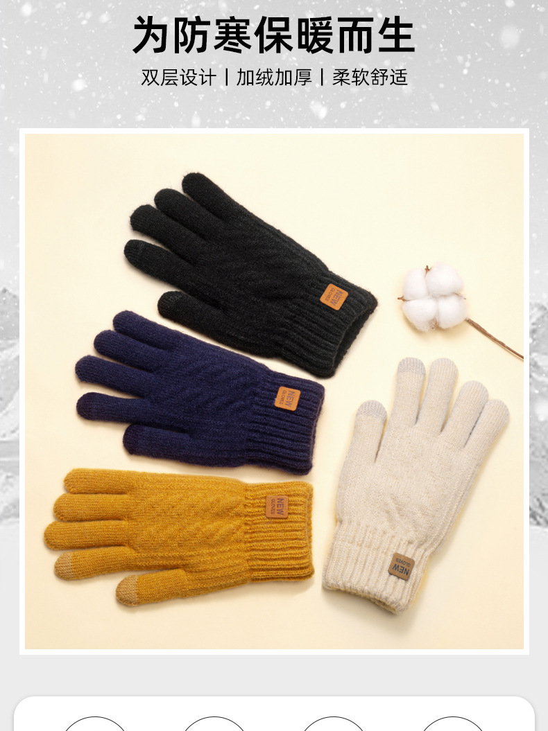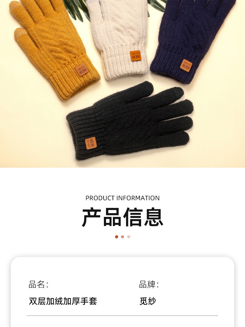 冬季双层加绒加厚手套男女针织防寒骑行触屏保暖毛线手套厂家批发