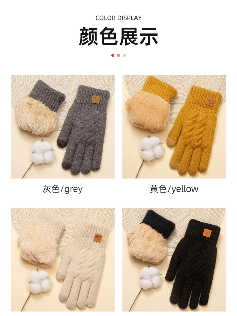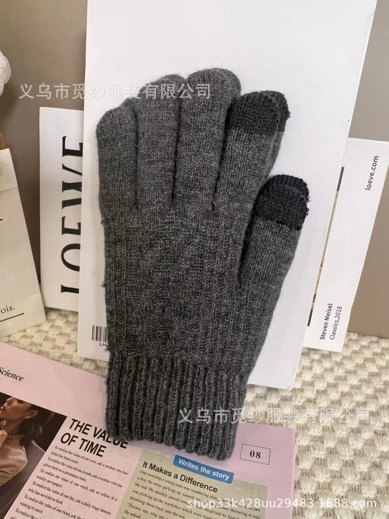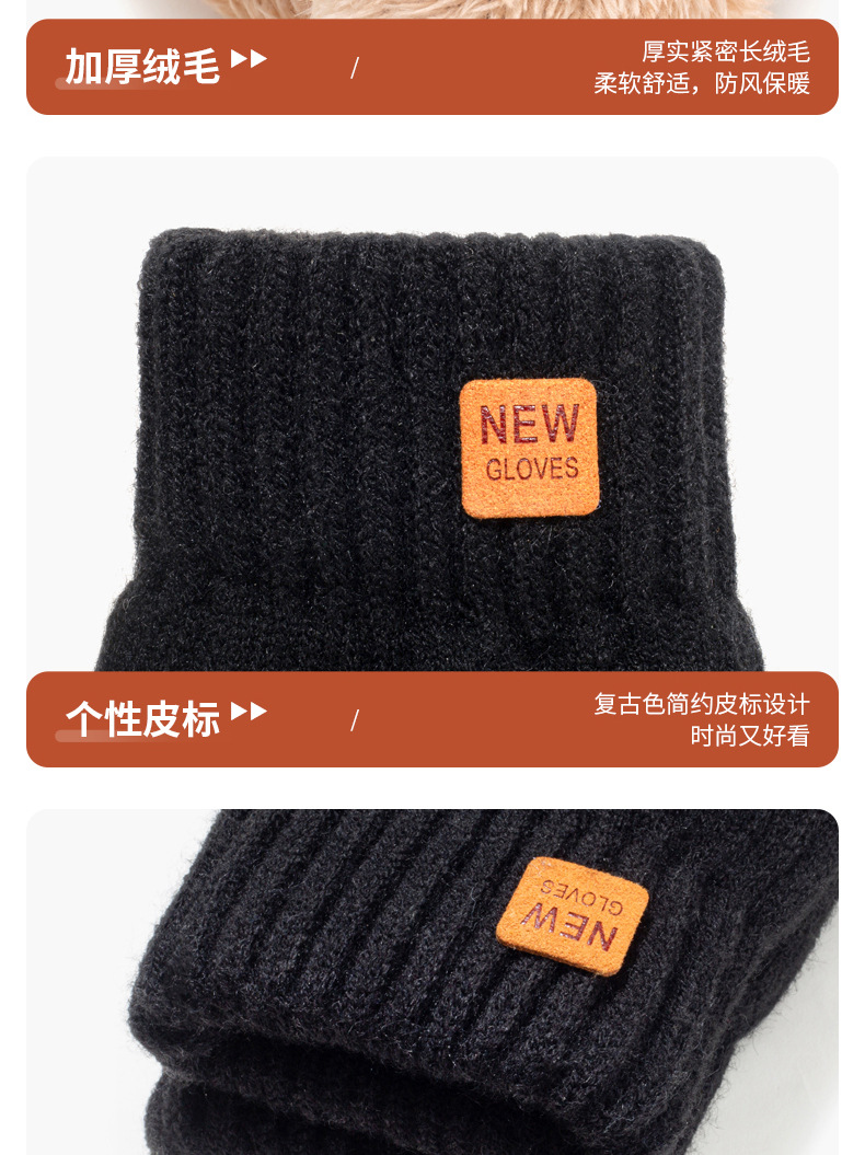 冬季双层加绒加厚手套男女针织防寒骑行触屏保暖毛线手套厂家批发