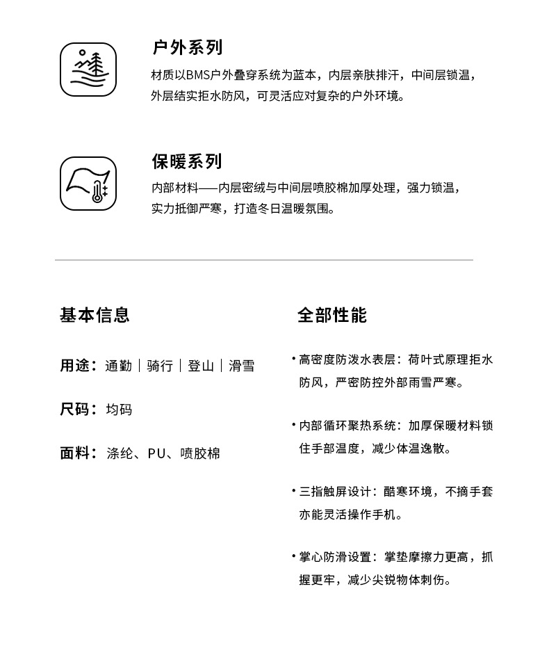 防水保暖骑行防寒加绒加厚骑车手套男冬季电动车女滑雪防风摩托车