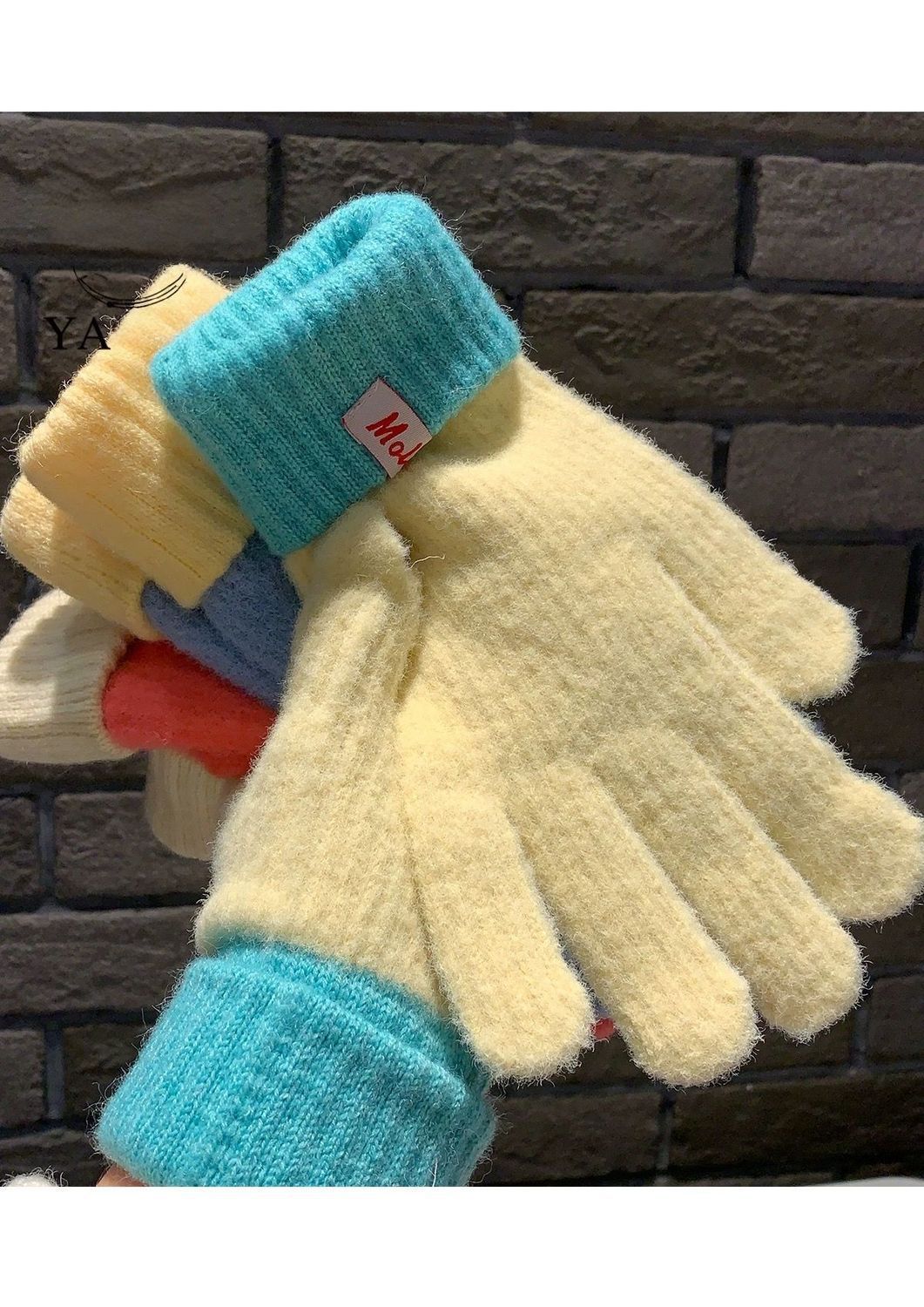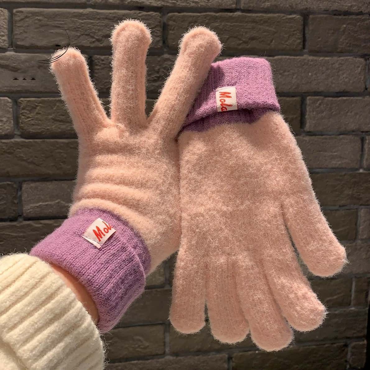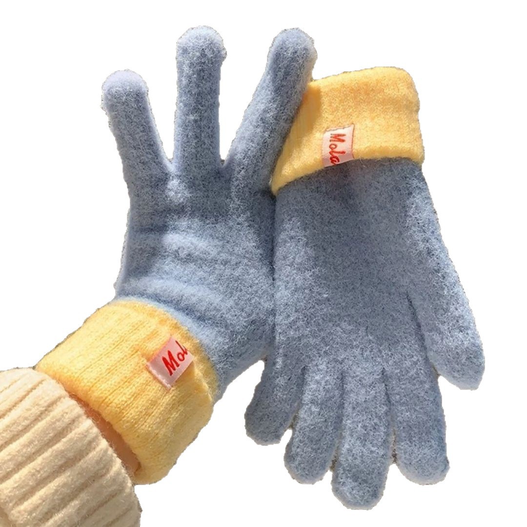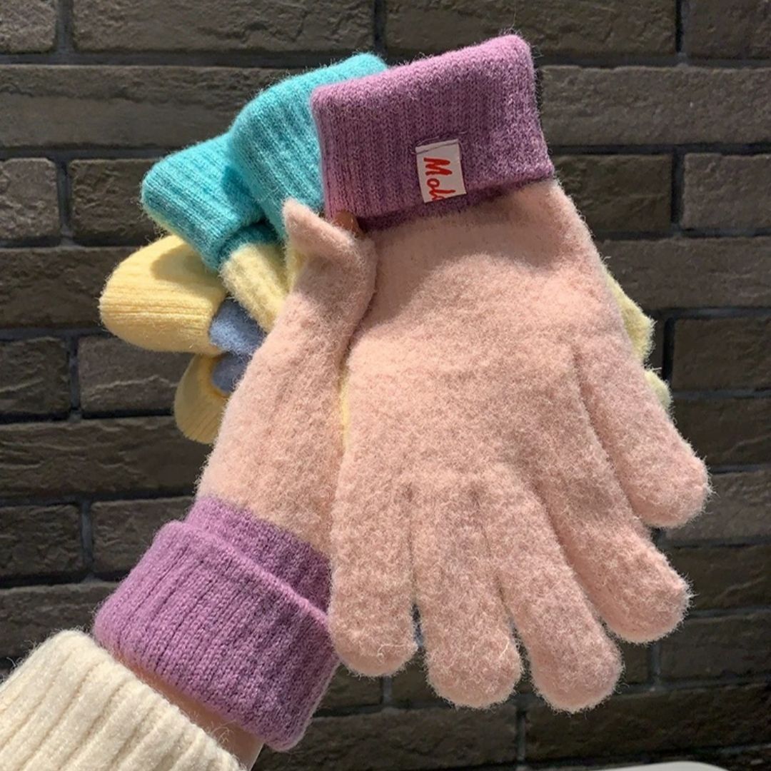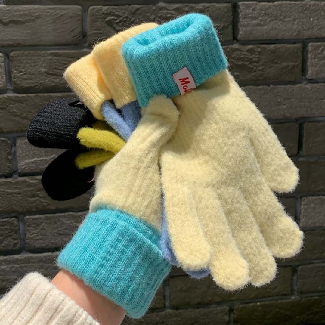 多巴胺彩色保暖毛线手套女秋冬季新款针织可触屏冬天骑行五指防寒