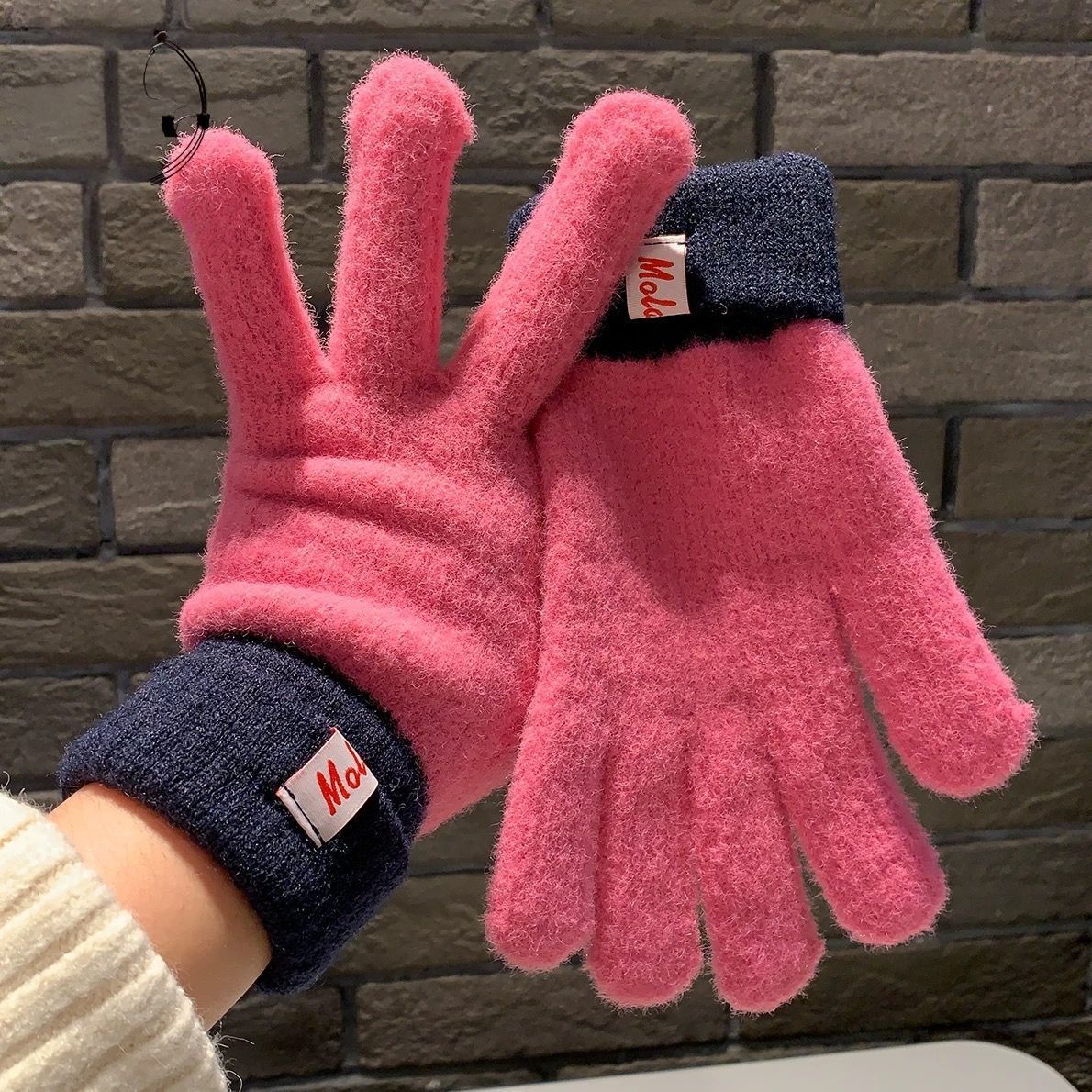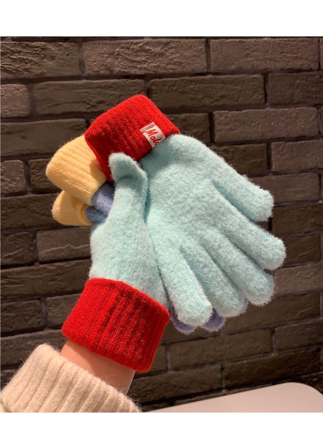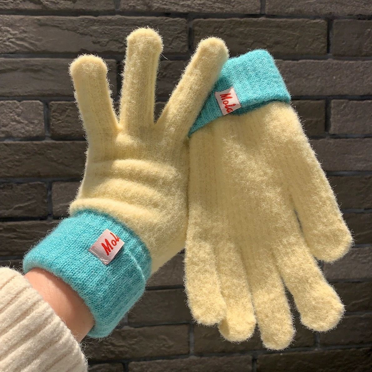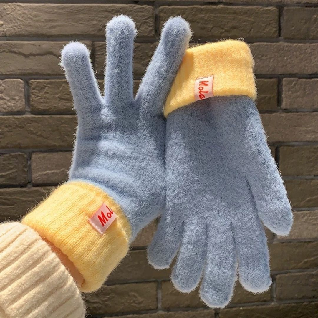 多巴胺彩色保暖毛线手套女秋冬季新款针织可触屏冬天骑行五指防寒