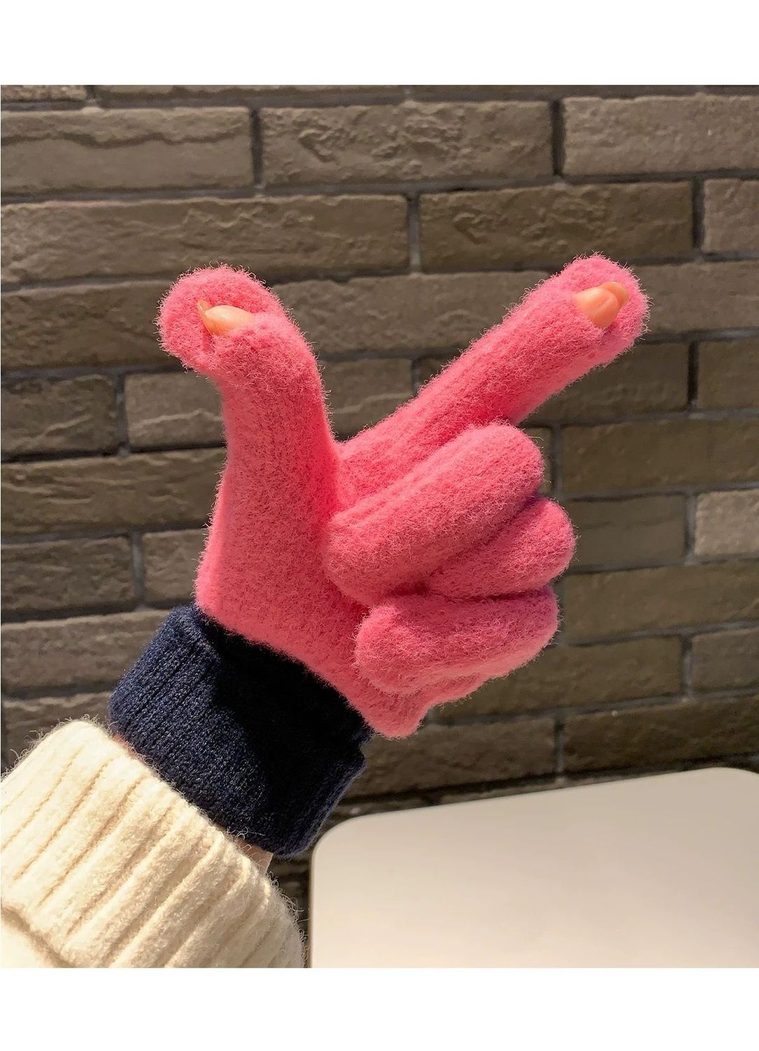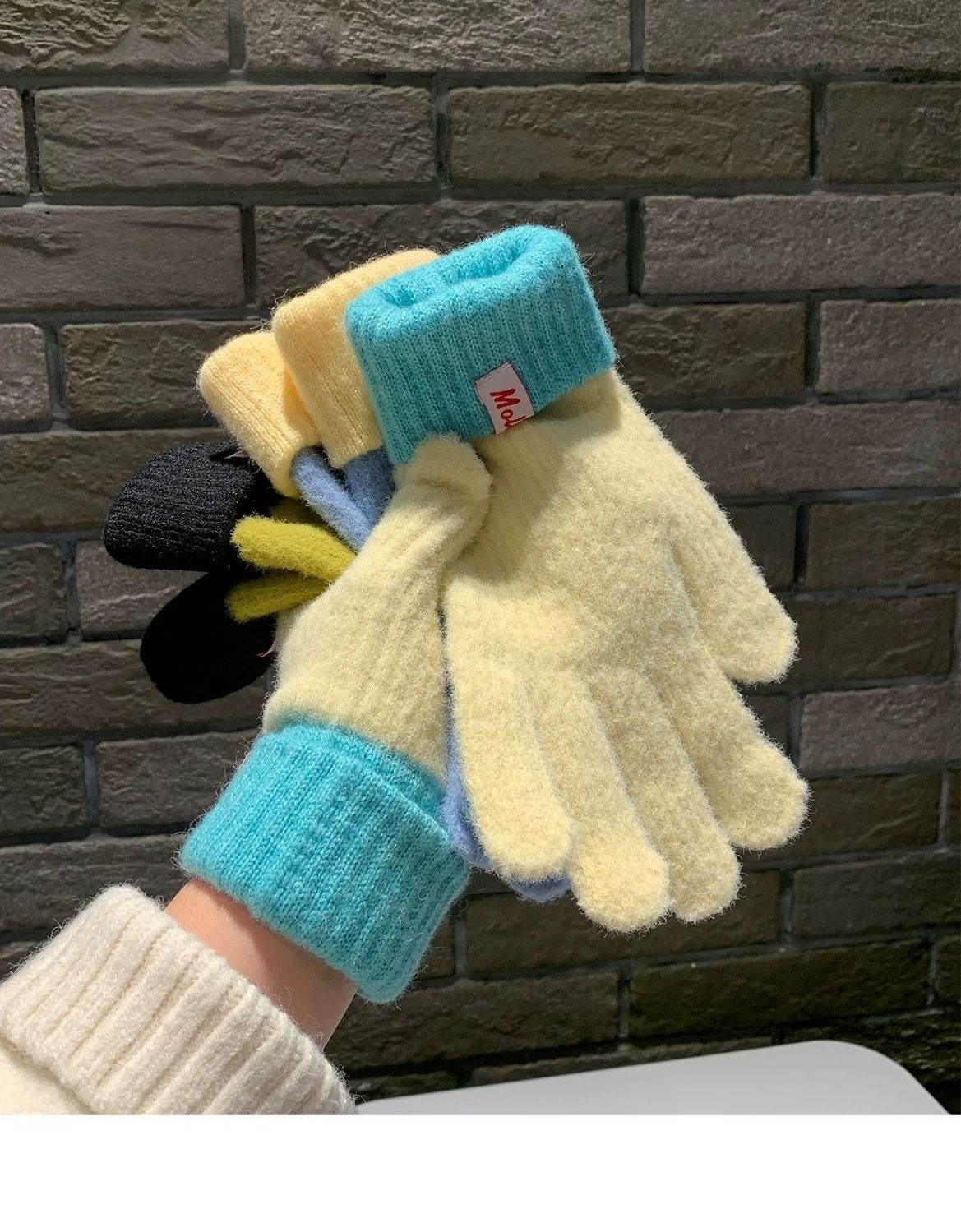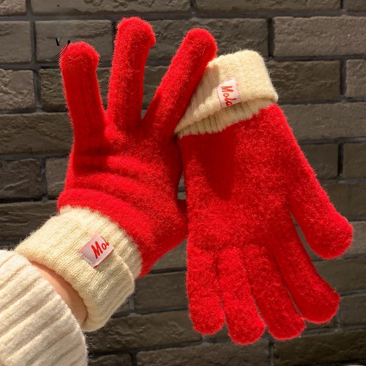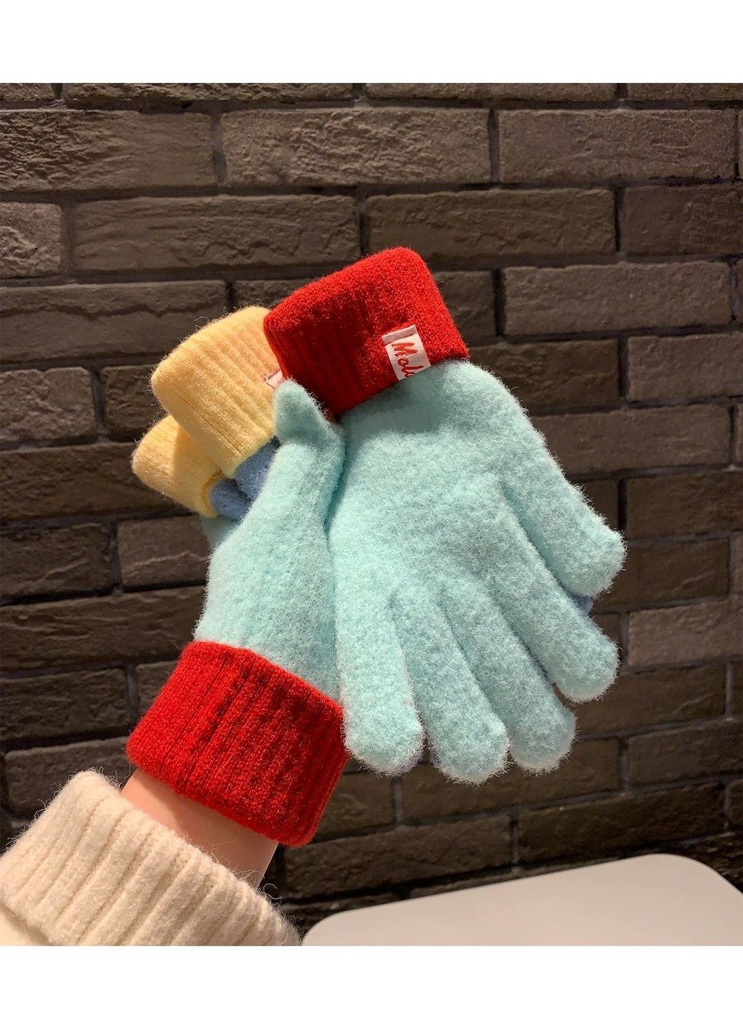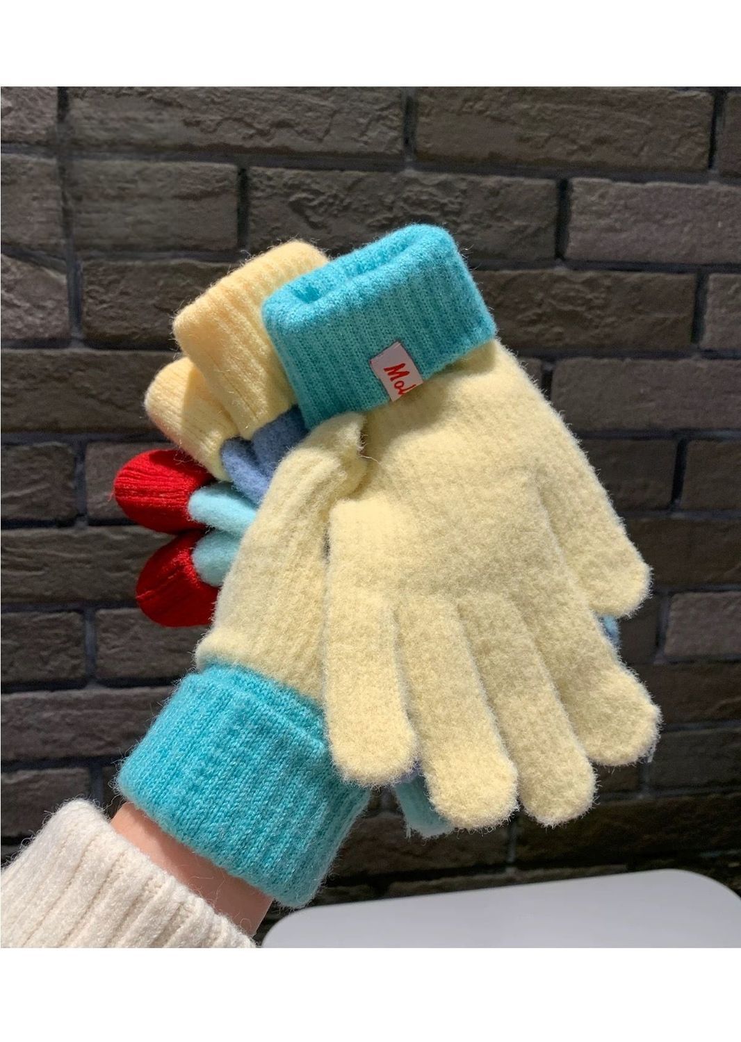 多巴胺彩色保暖毛线手套女秋冬季新款针织可触屏冬天骑行五指防寒