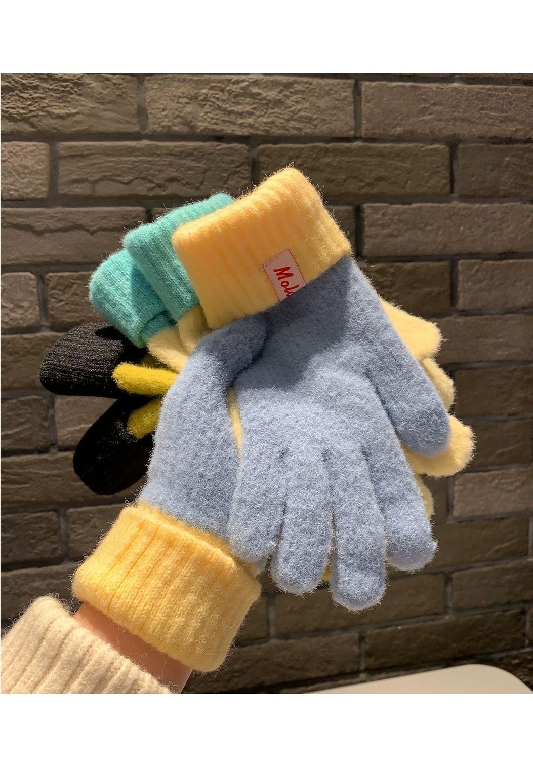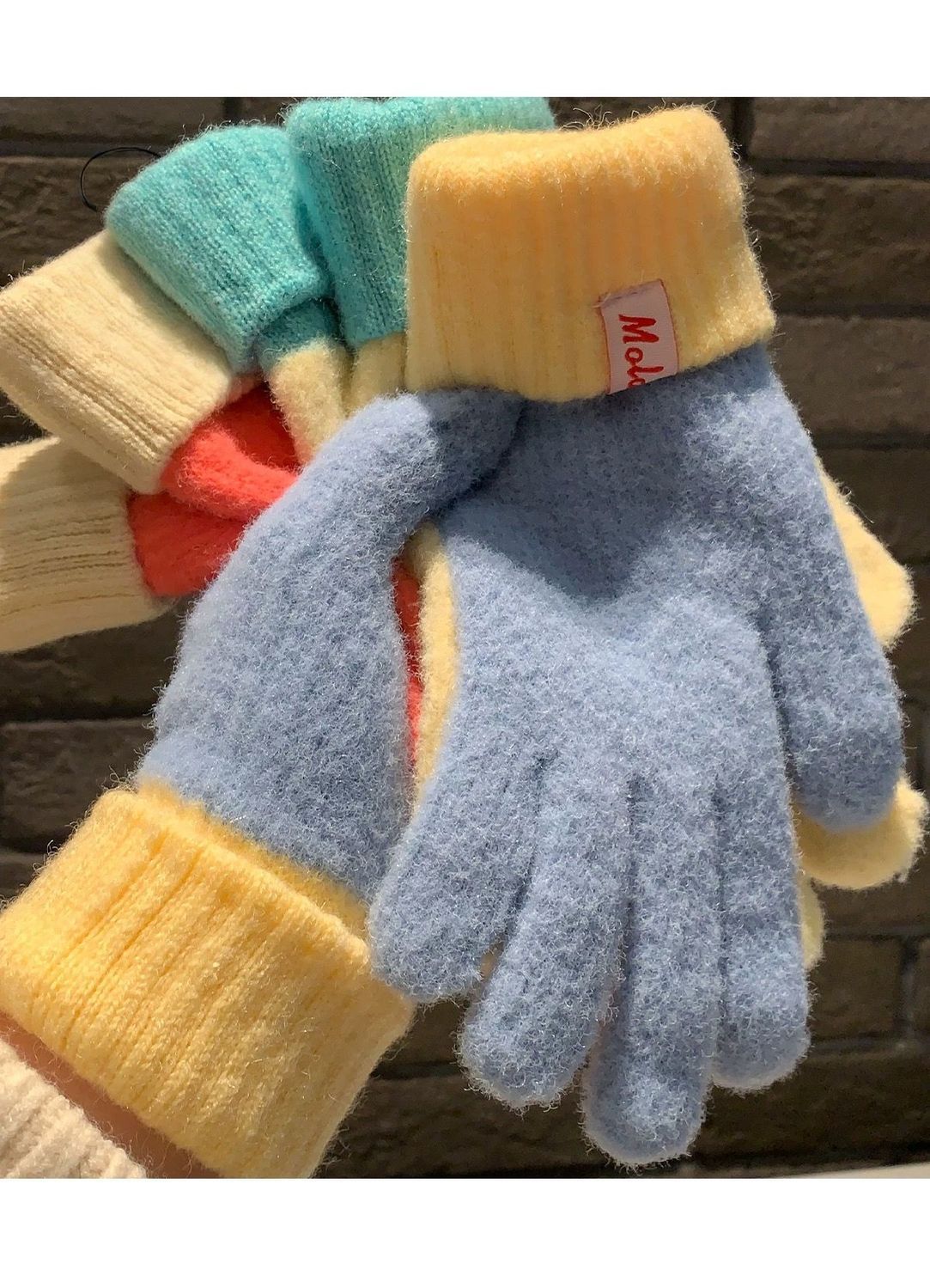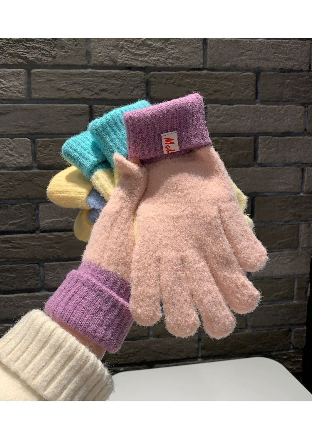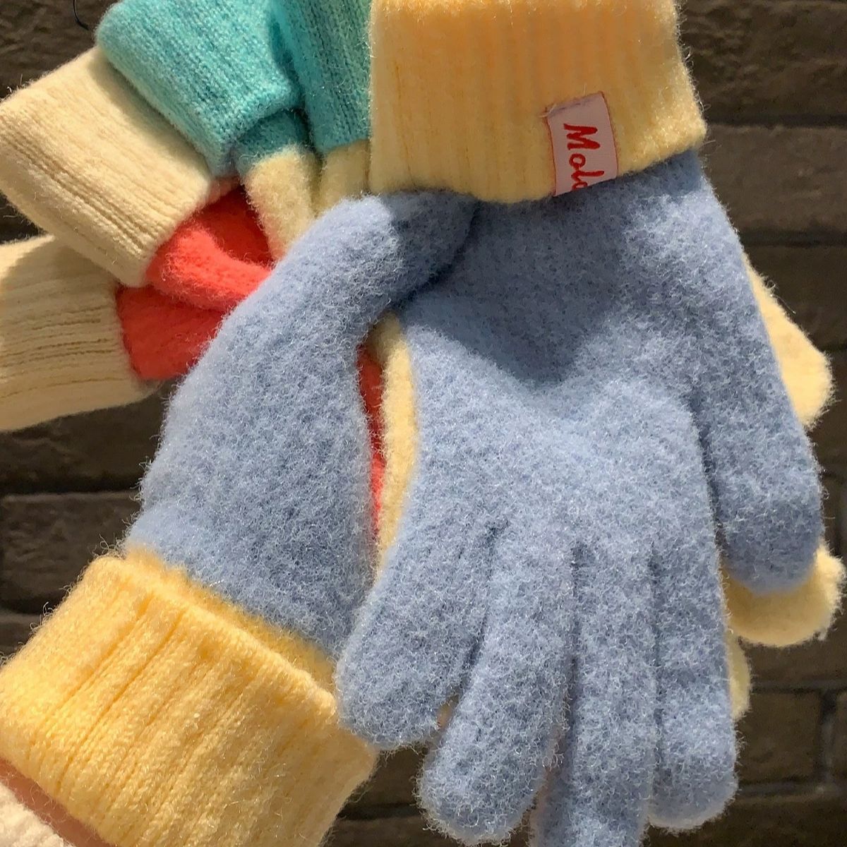 多巴胺彩色保暖毛线手套女秋冬季新款针织可触屏冬天骑行五指防寒