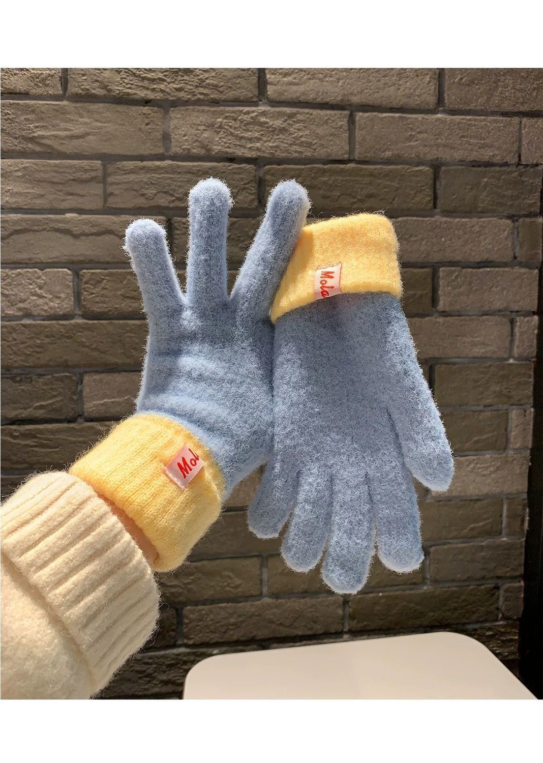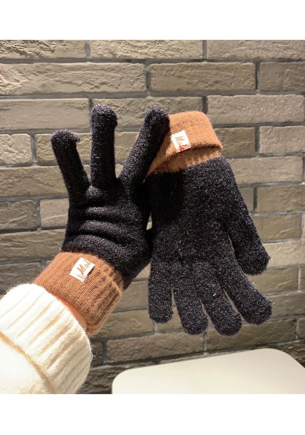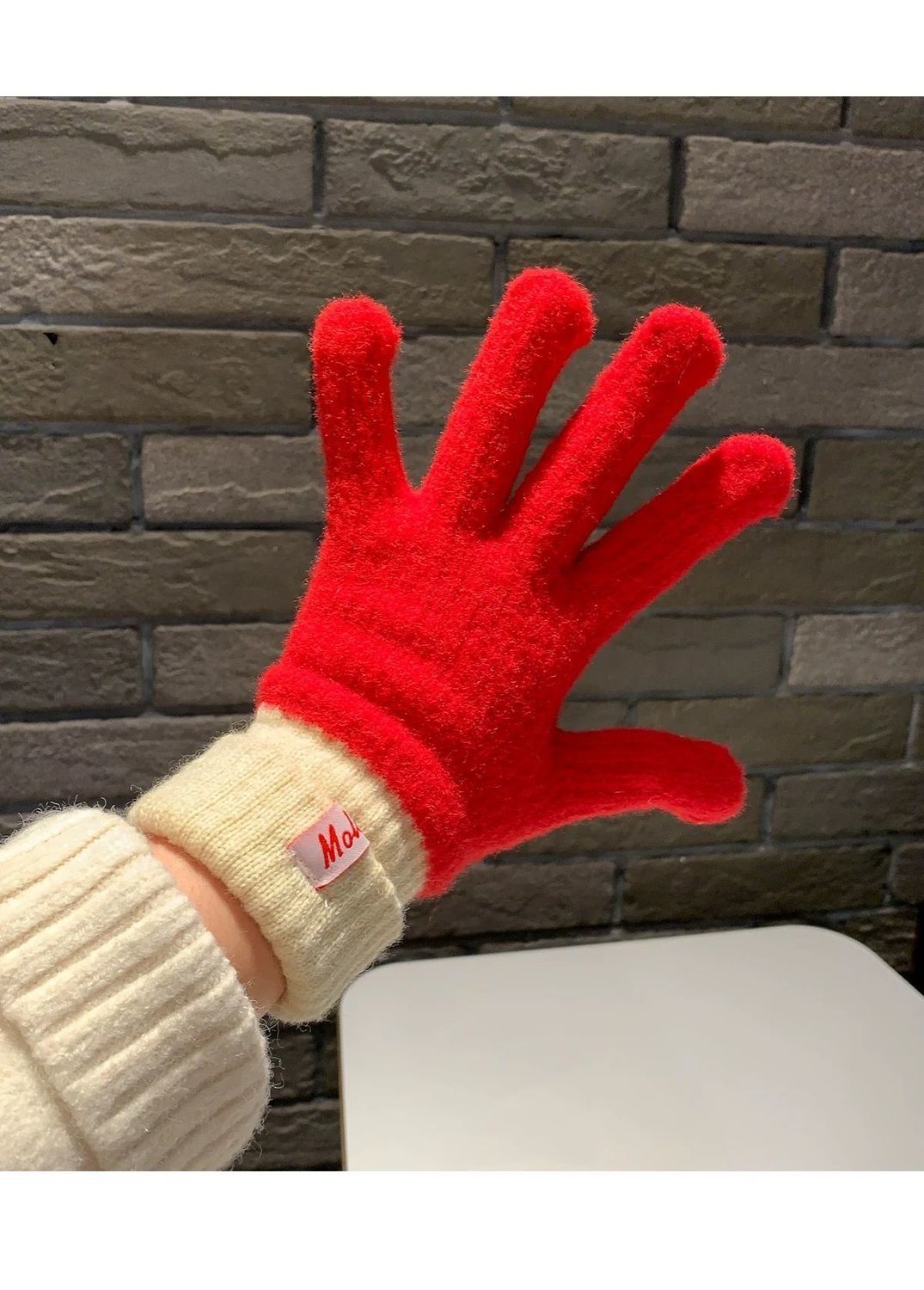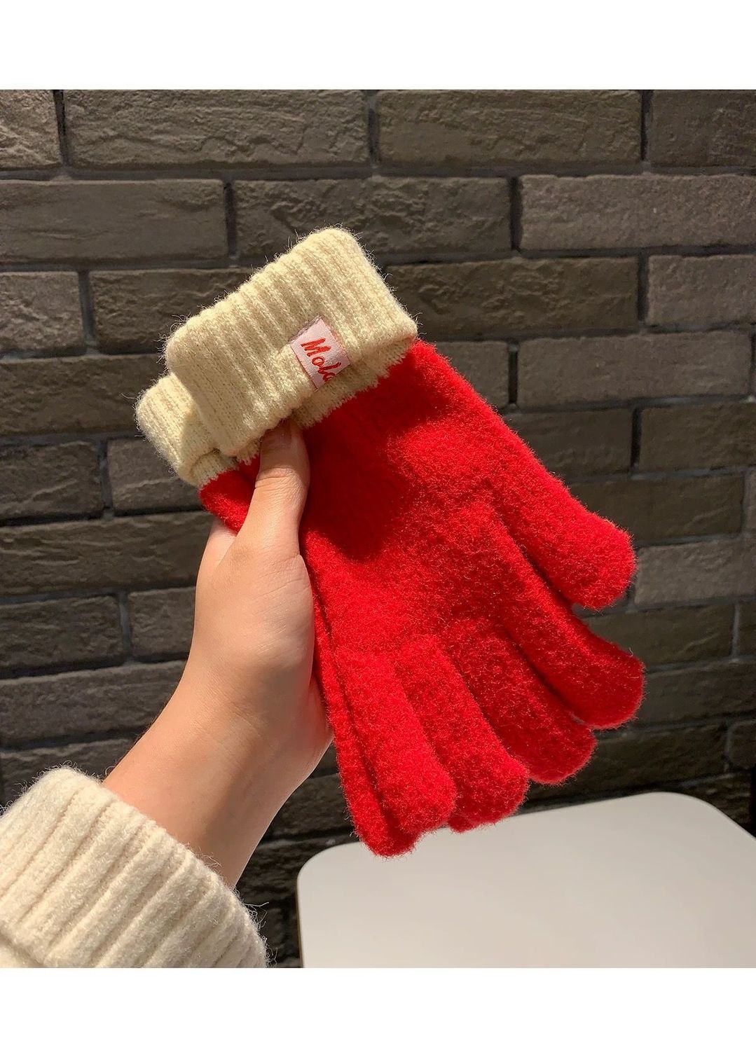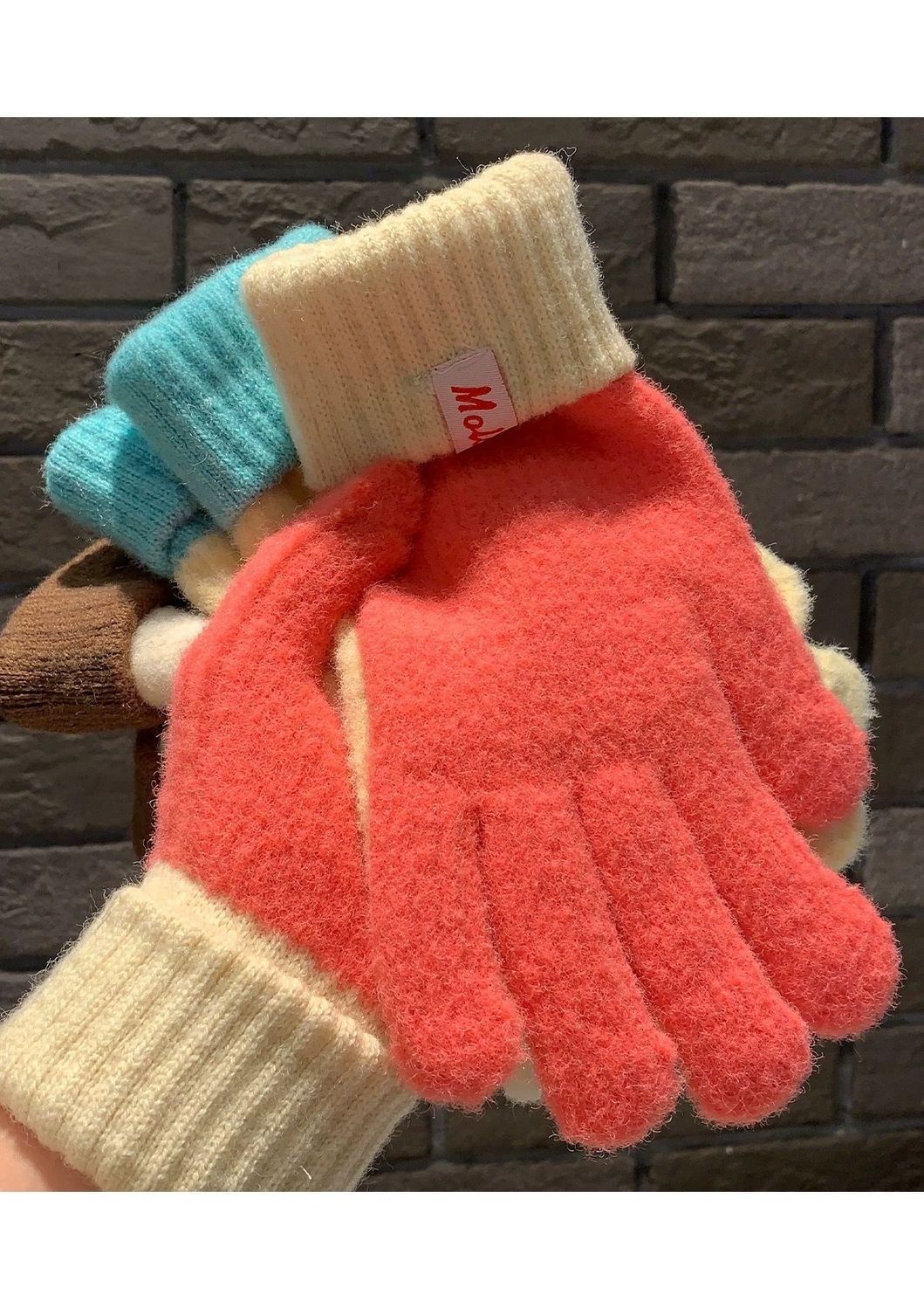 多巴胺彩色保暖毛线手套女秋冬季新款针织可触屏冬天骑行五指防寒