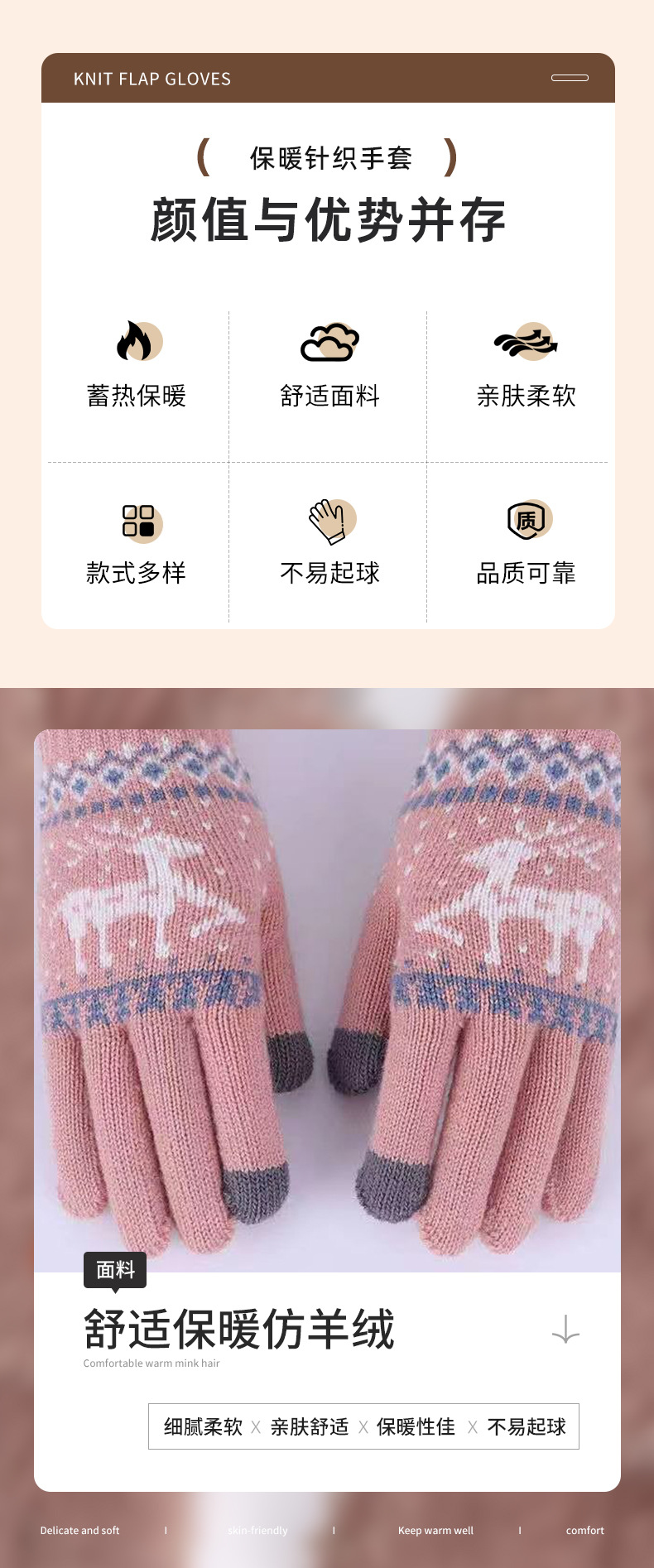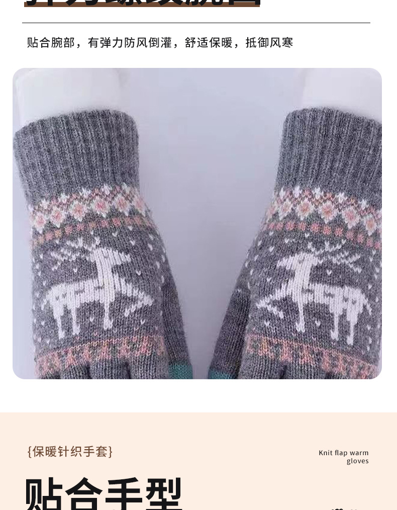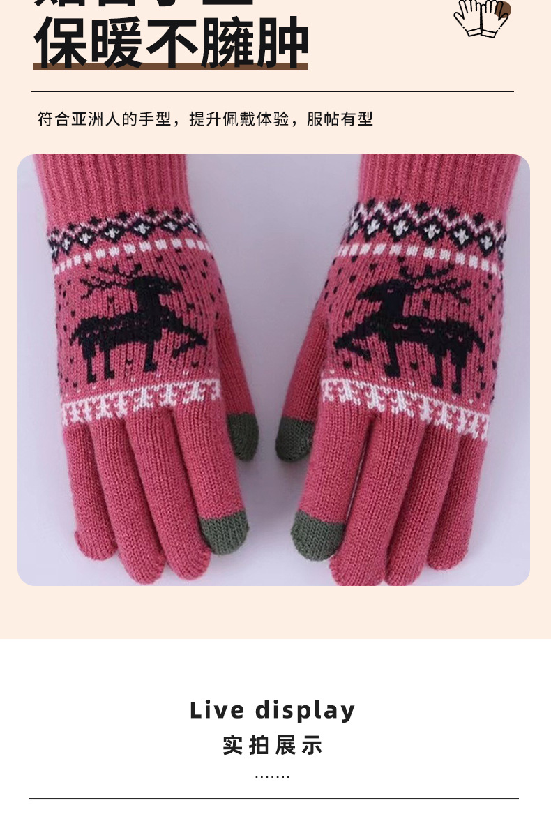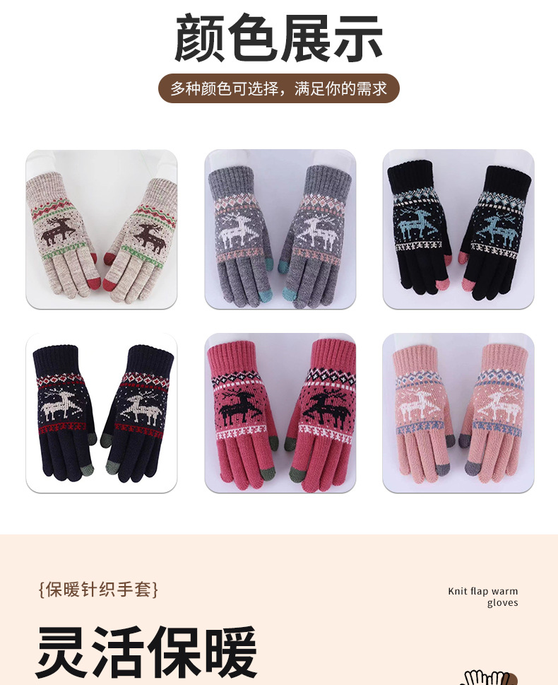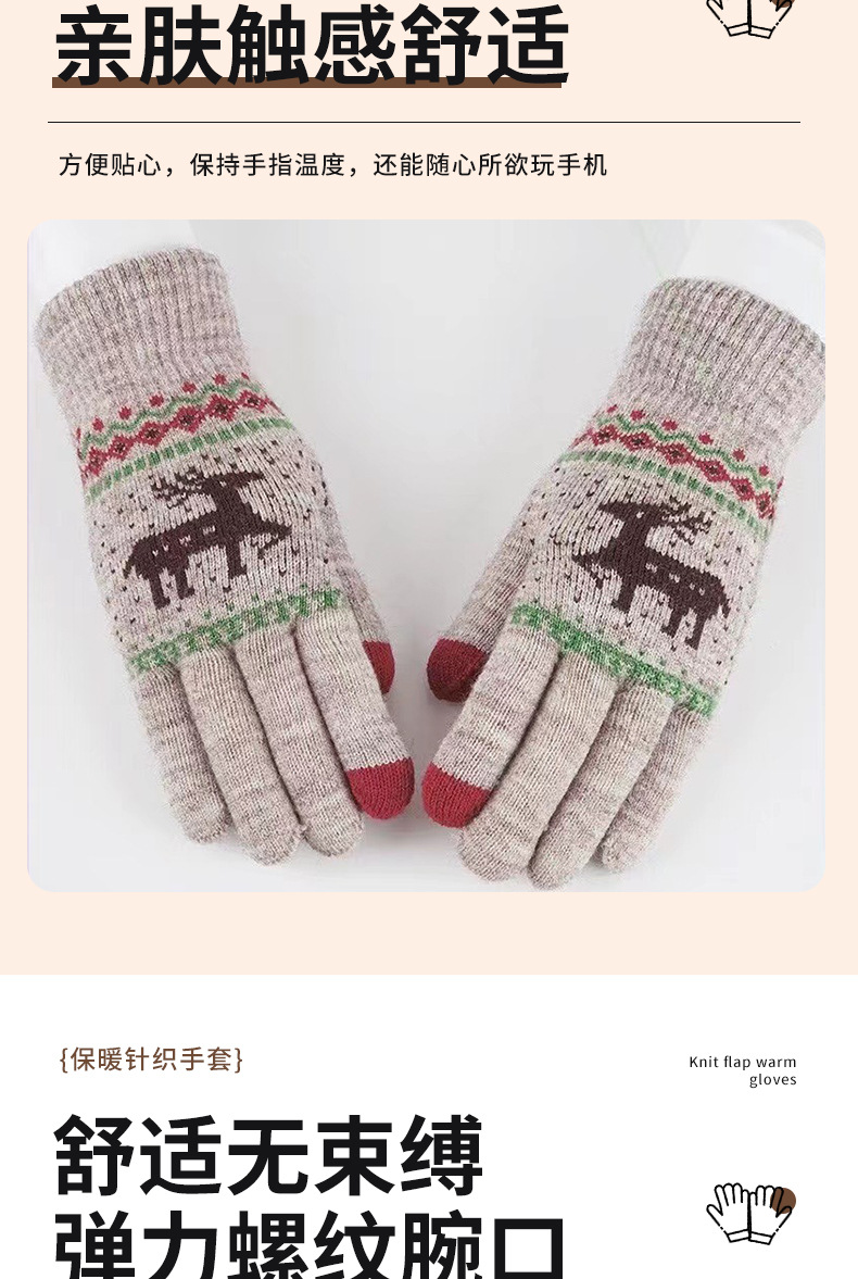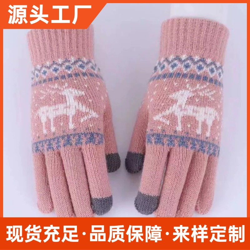 厂家批发加厚跨境男女冬季保暖触屏骑行防寒圣诞小鹿针织毛线手套