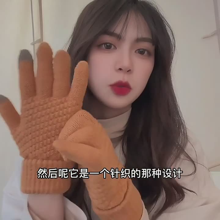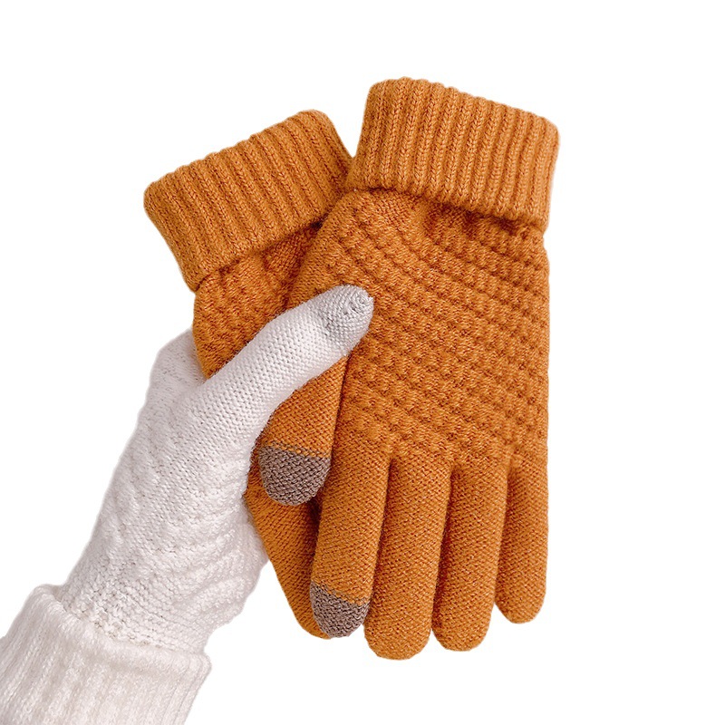冬季新款菠萝款仿羊绒全指触屏针织保暧提花时尚加绒加厚毛线手套