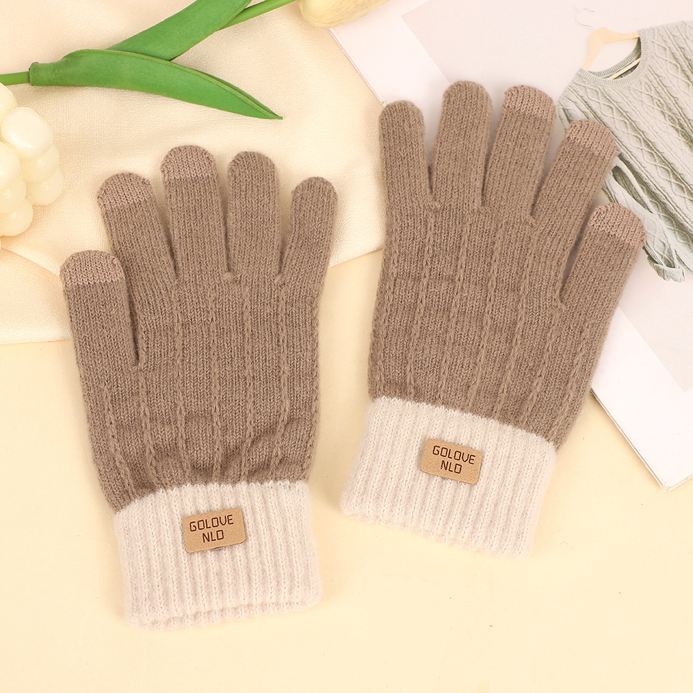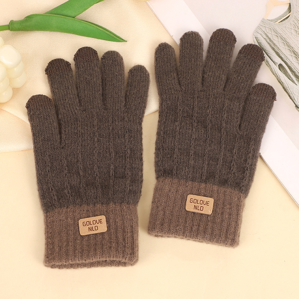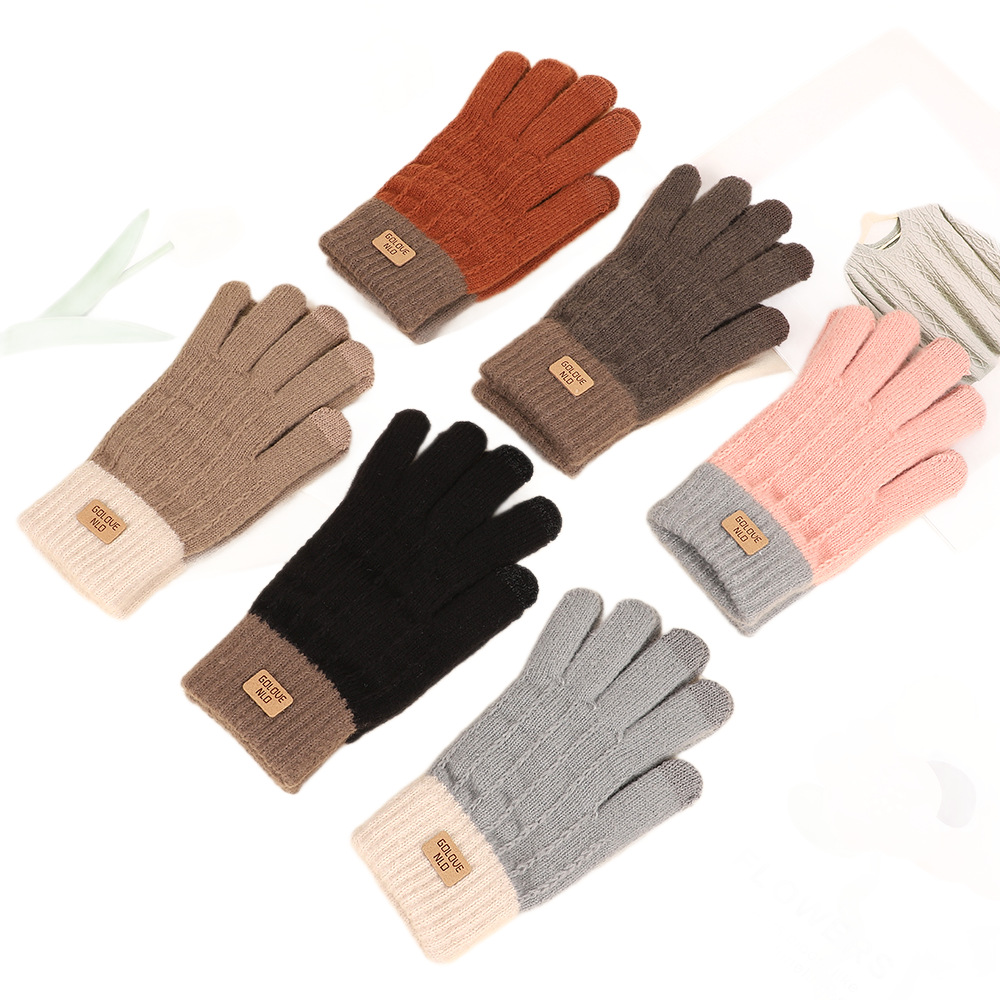 冬季新款针织保暖手套男女加厚触屏骑行毛线分指手套