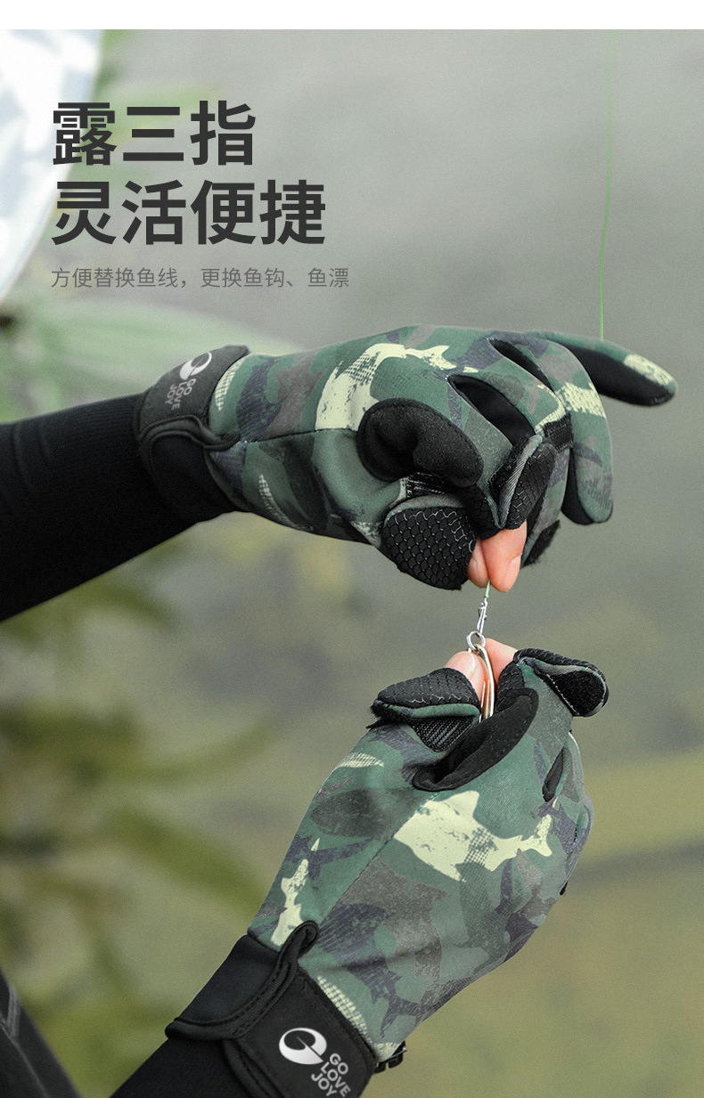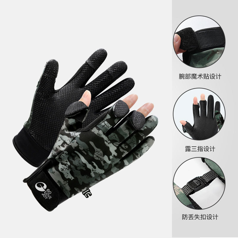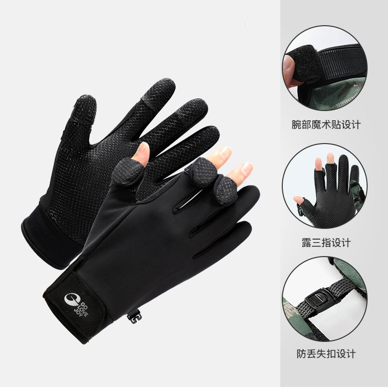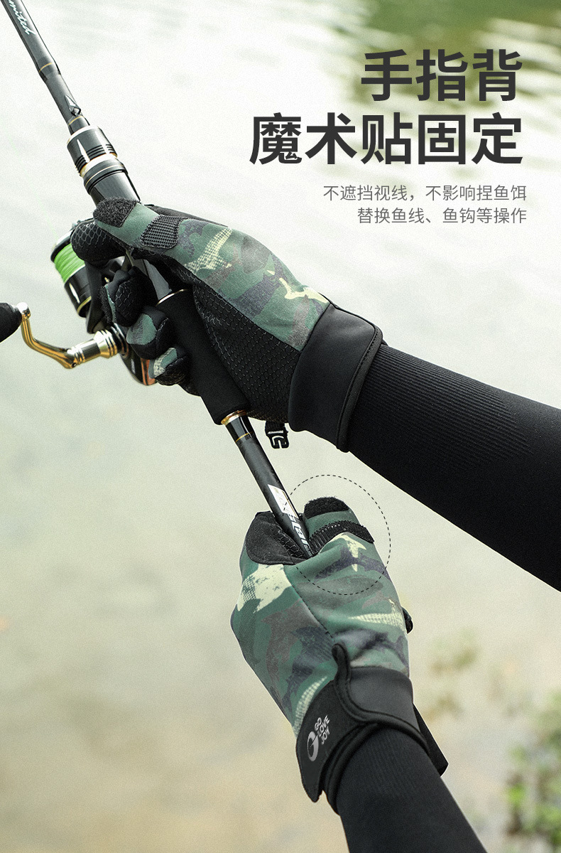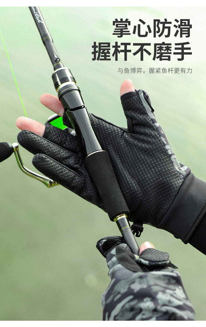 专业钓鱼手套冬季露三指半指触屏握竿防滑抓鱼路亚保暖加绒防风寒
