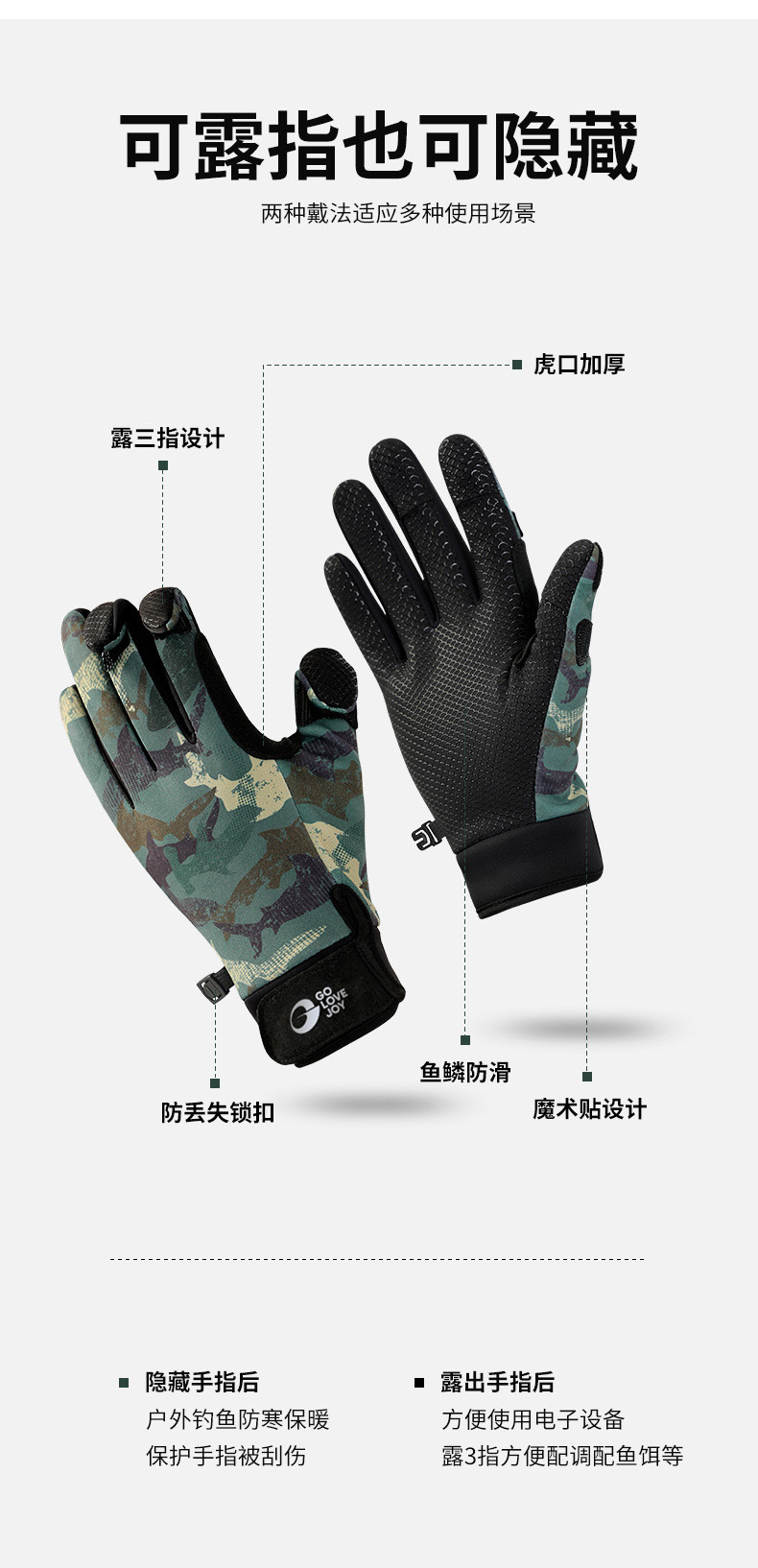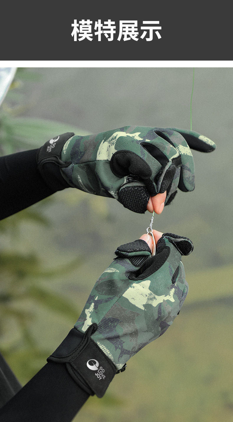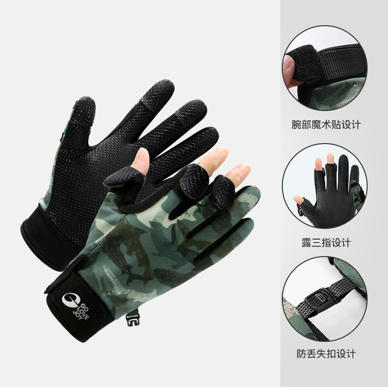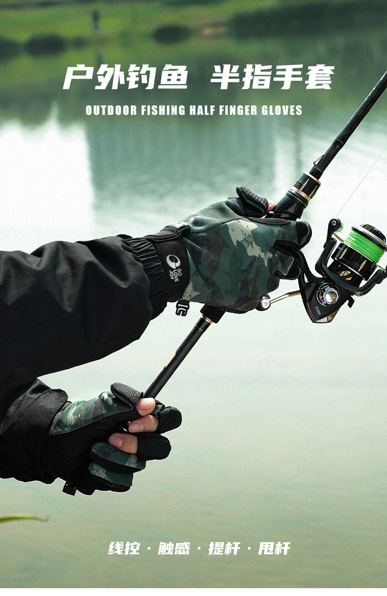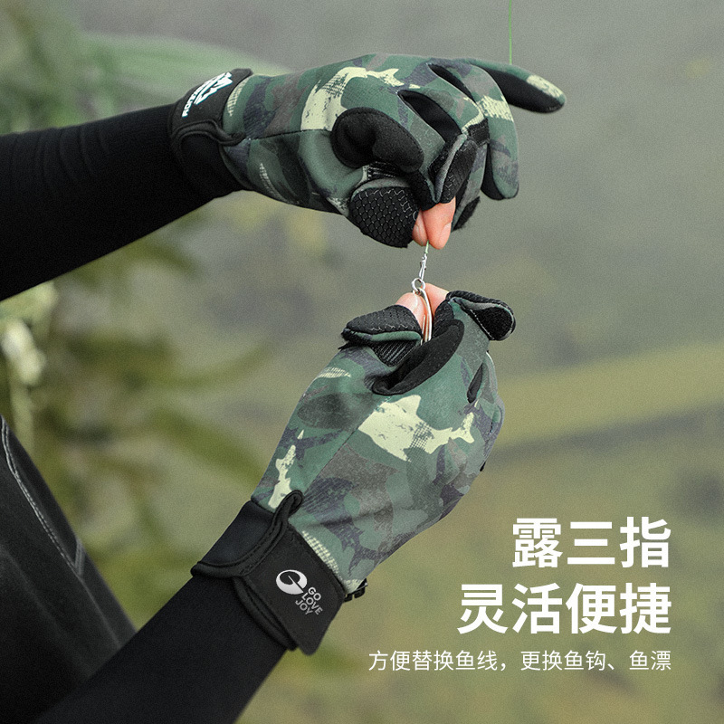 专业钓鱼手套冬季露三指半指触屏握竿防滑抓鱼路亚保暖加绒防风寒