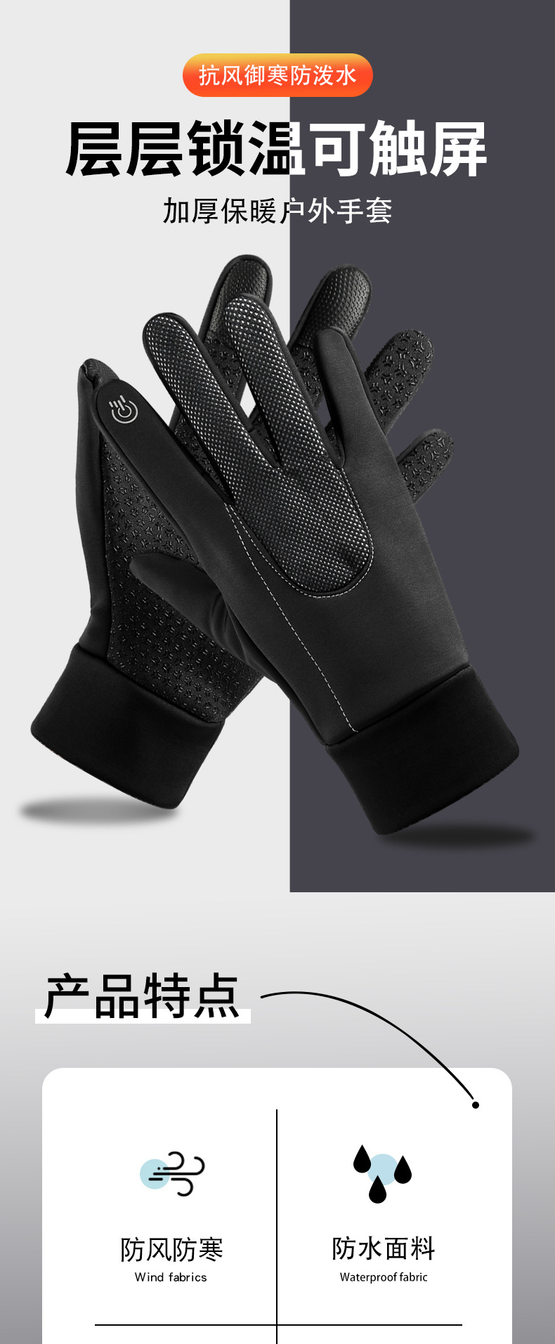 冬季保暖防风户外骑行手套男加绒加厚防滑防水可触屏运动手套批发