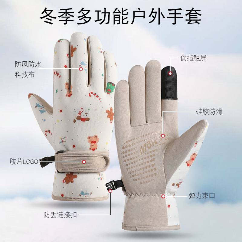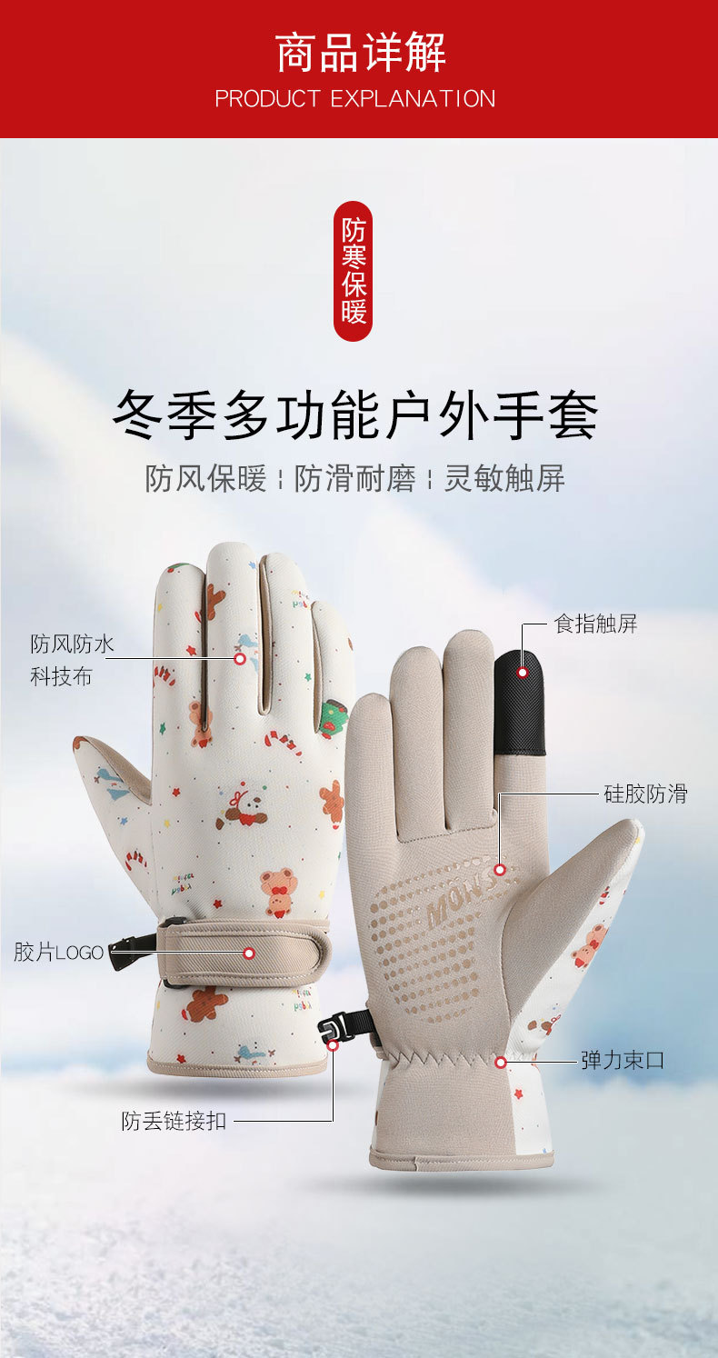 冬季保暖手套男女情侣防水加绒防风户外防滑触屏漏指摩托开车骑行