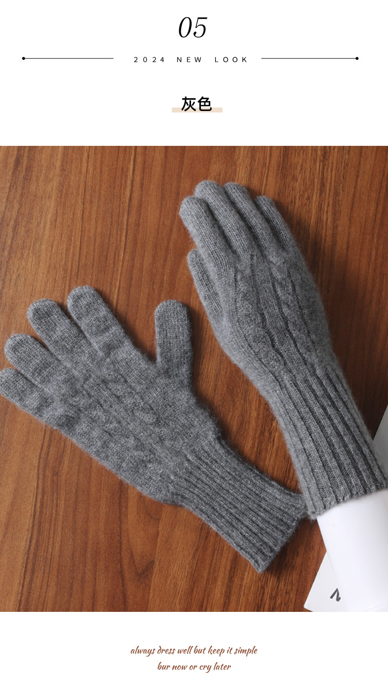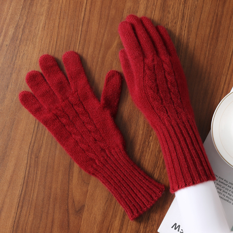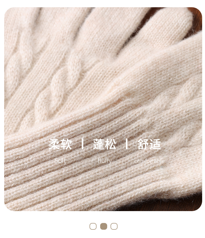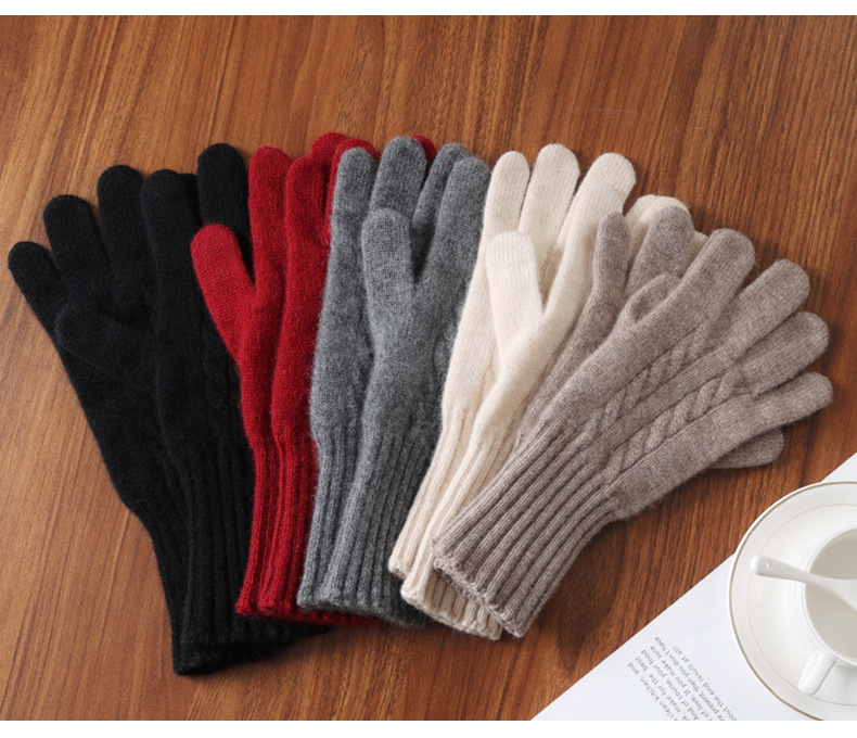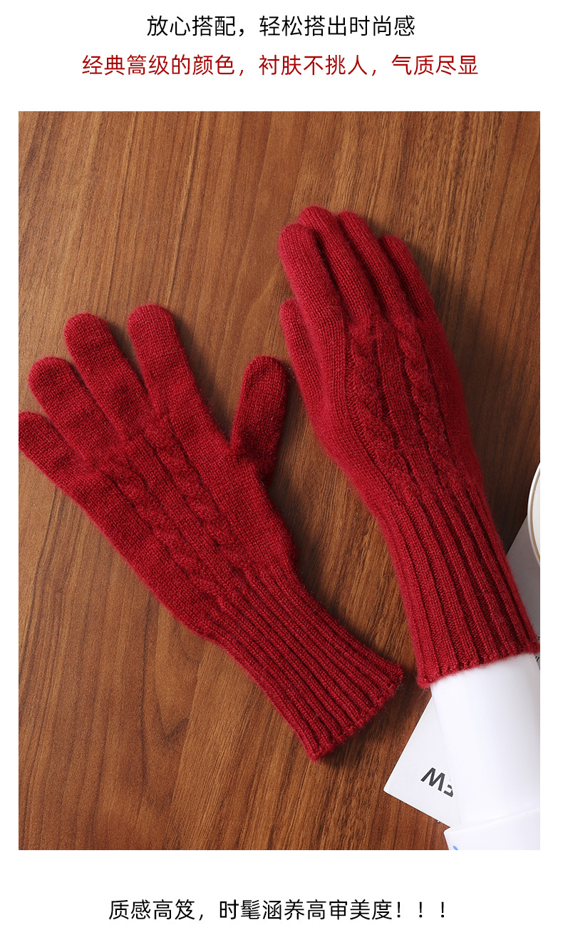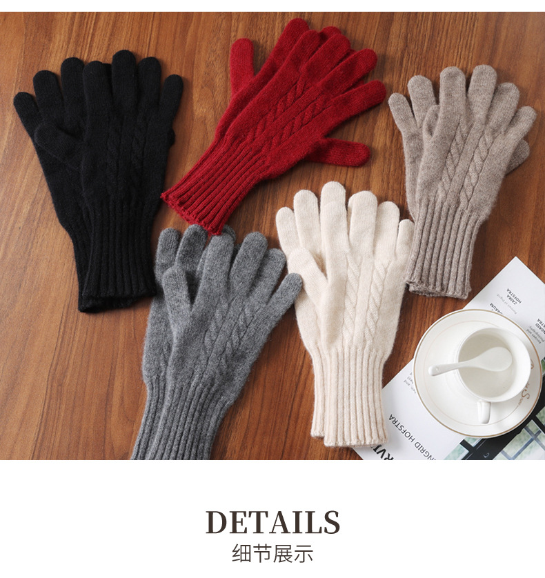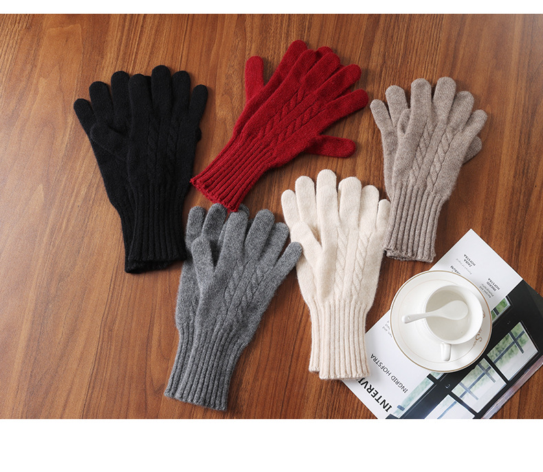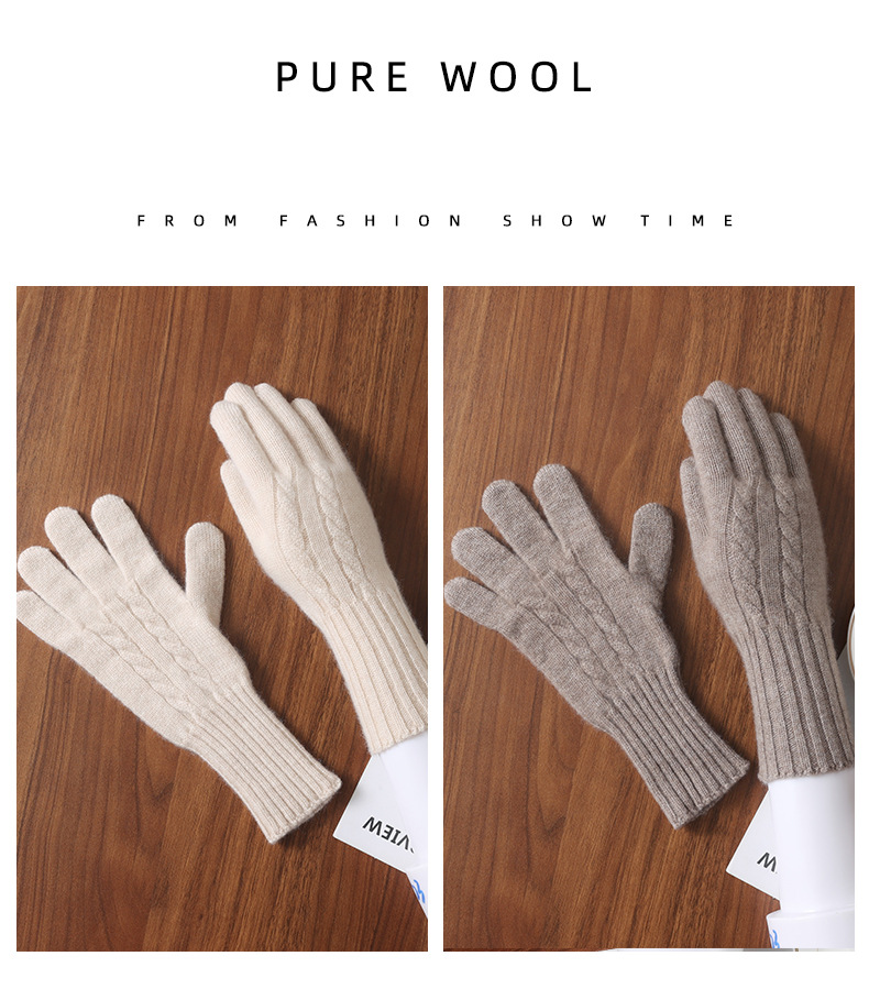 厂家跨境批发100%纯羊毛针织手套男女触屏护腕户外加厚保暖羊绒护