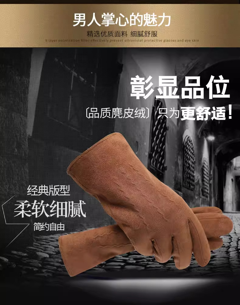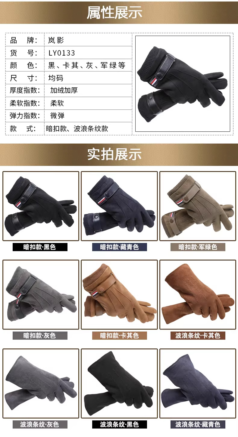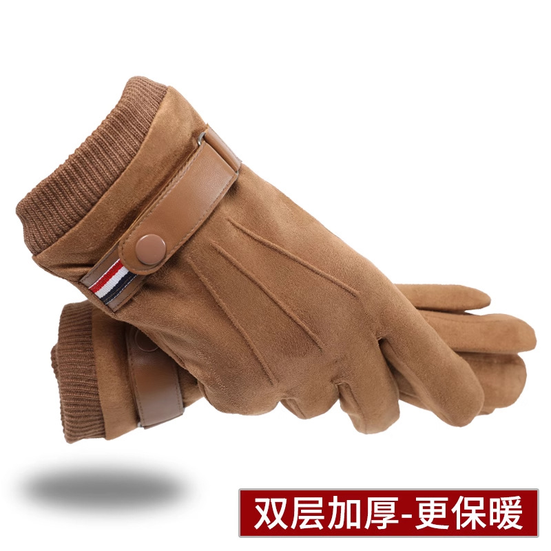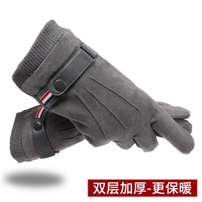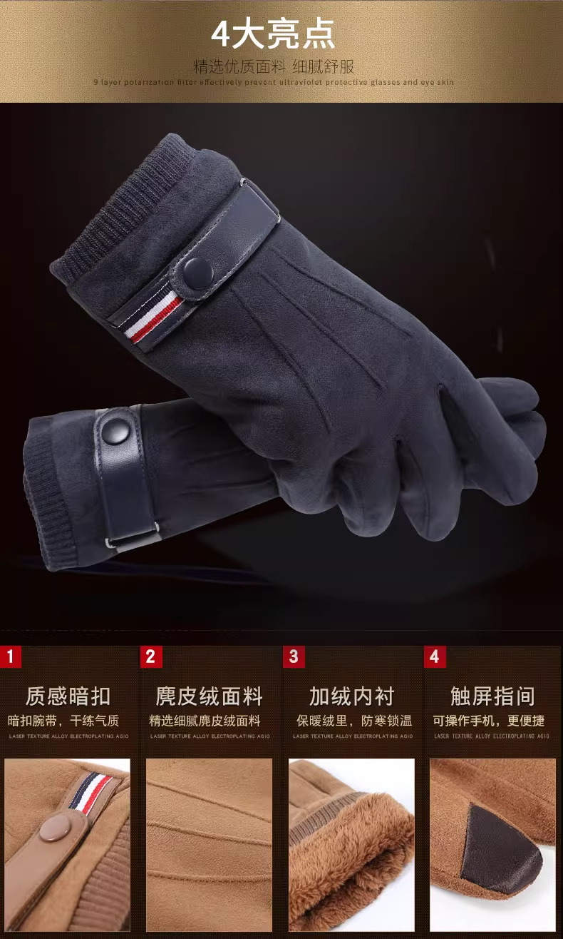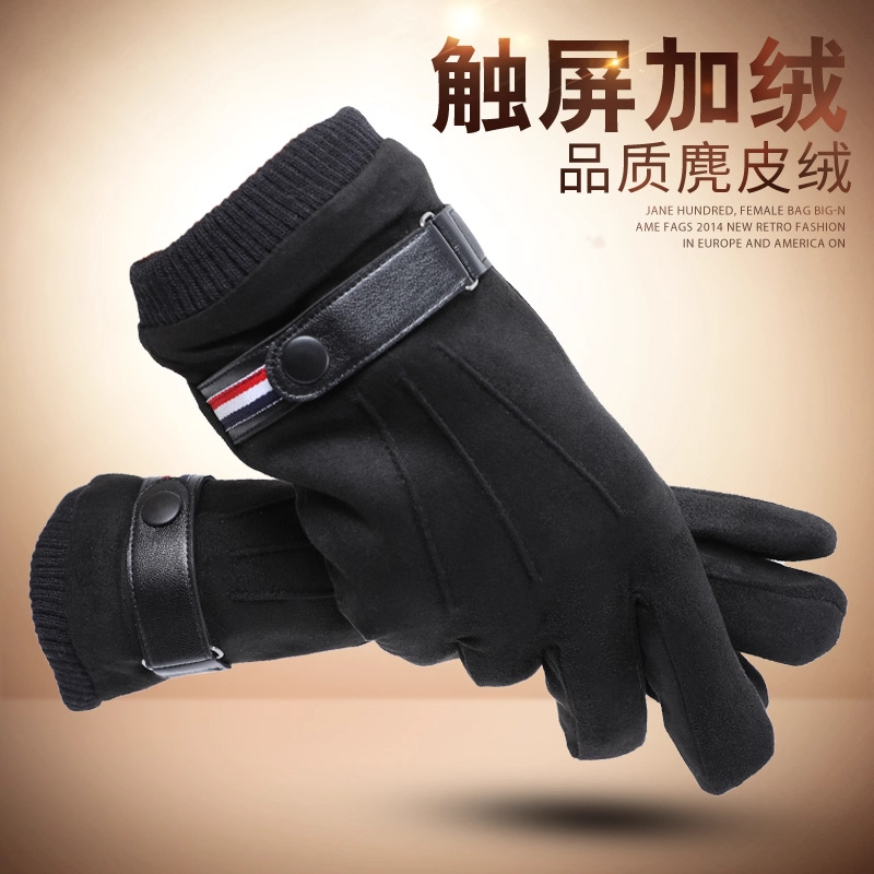 手套男冬季保暖加绒加厚麂皮绒手套户外运动骑车电动车触屏棉手套