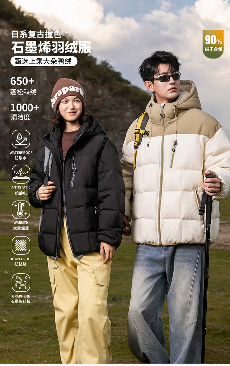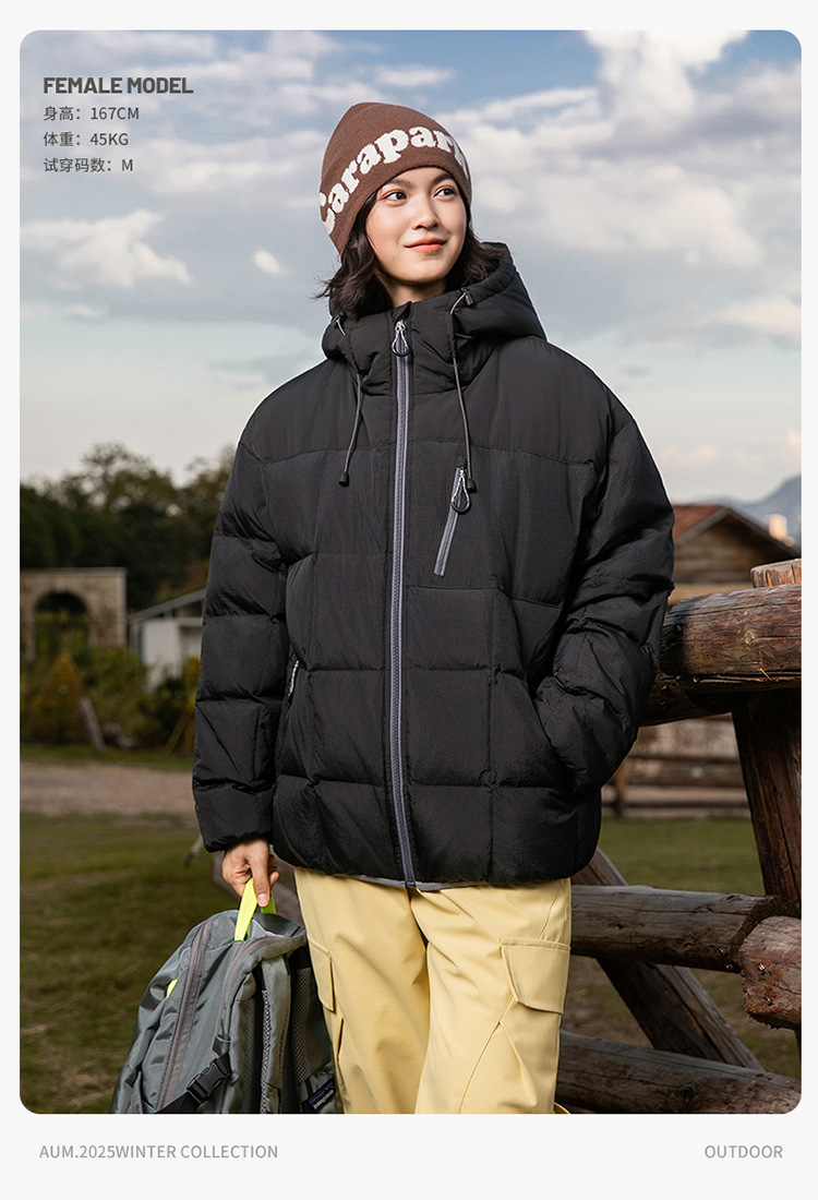 OOTD户外羽绒服男女同款2025新款冬季潮流防风保暖白鸭绒连帽外套