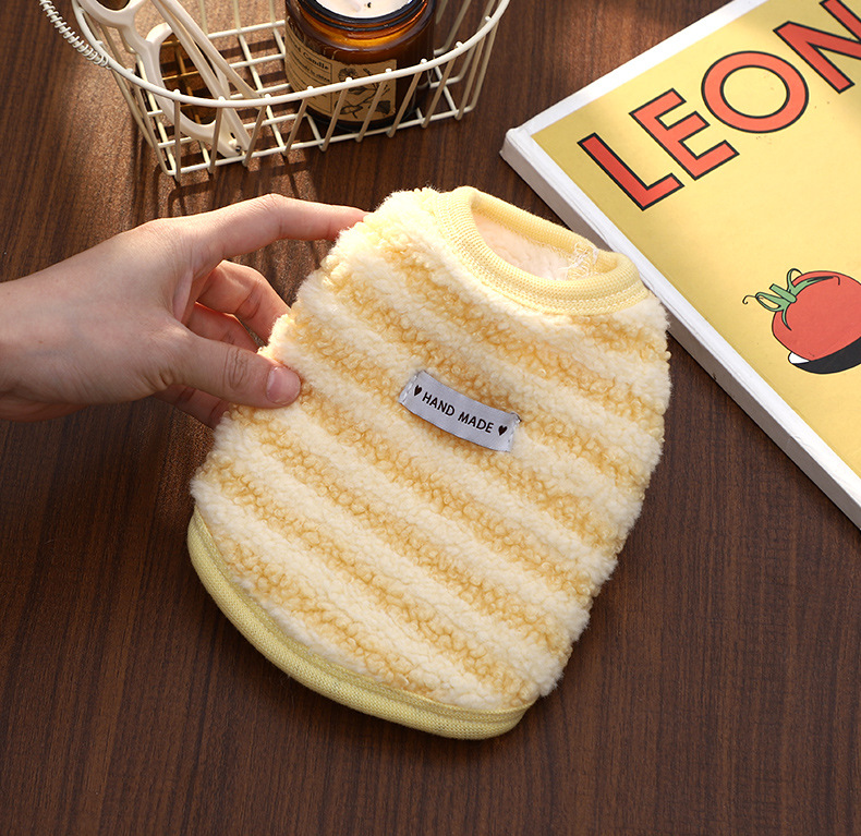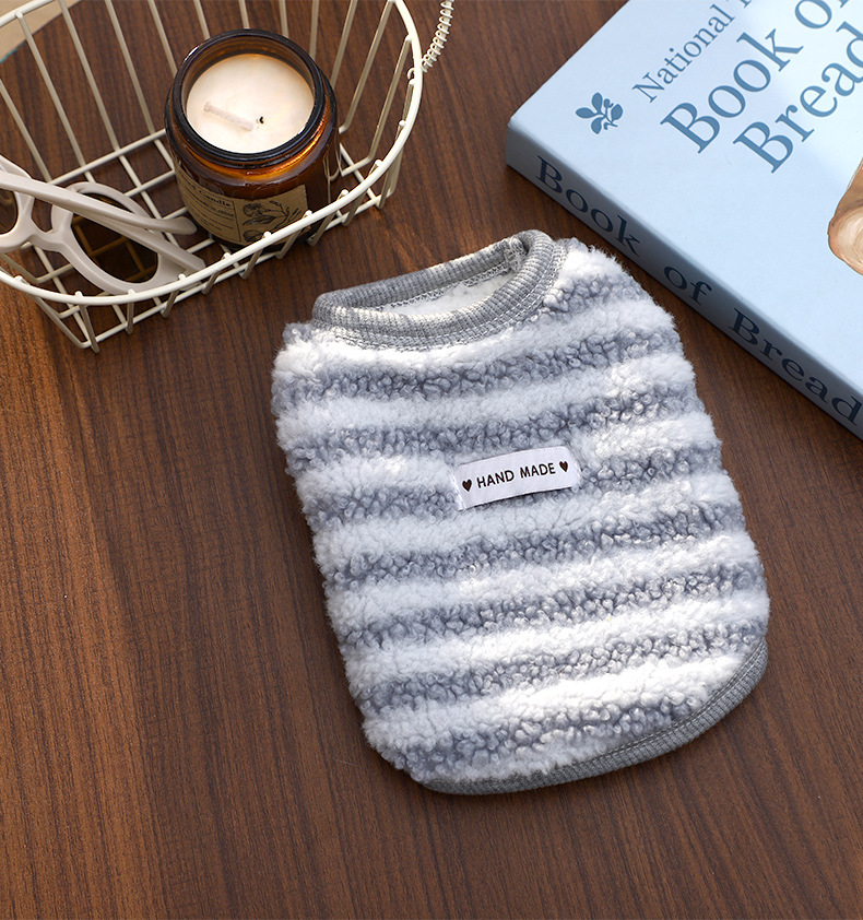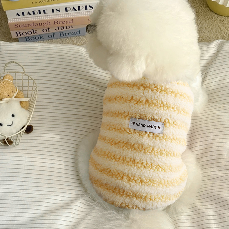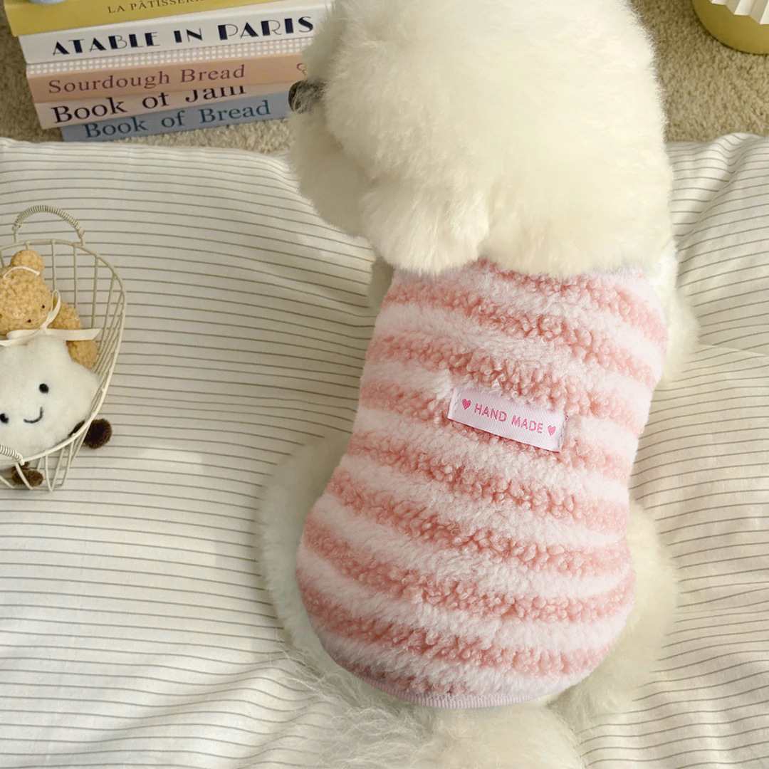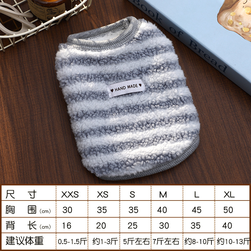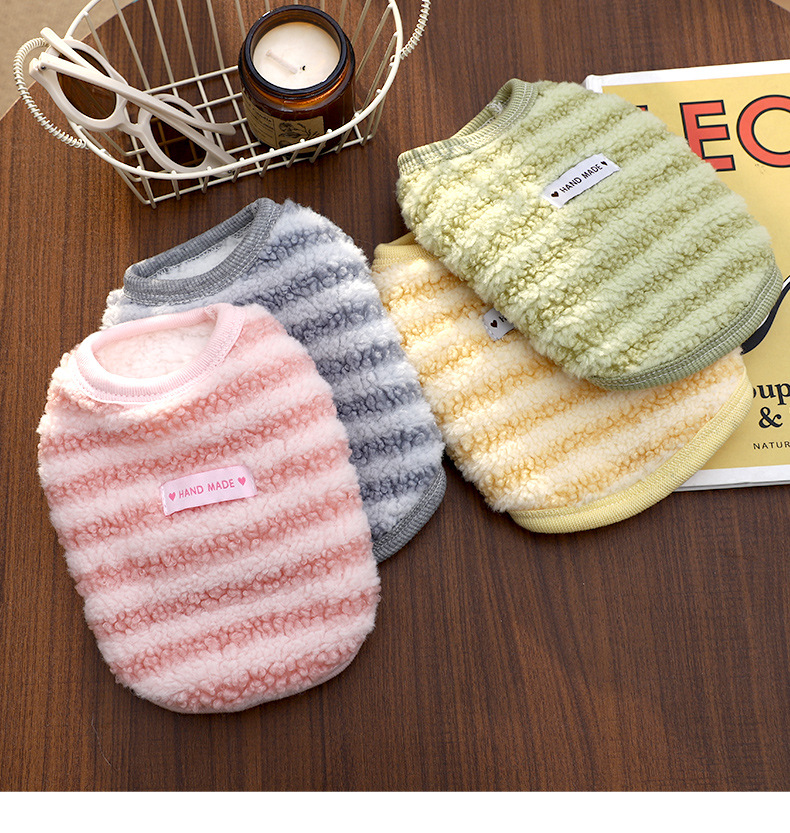 糖果色小狗狗冬装小型犬泰迪狗狗新款博美保暖厚款防着凉条纹背心