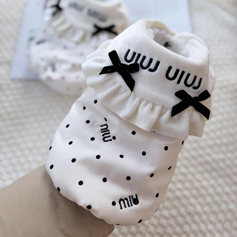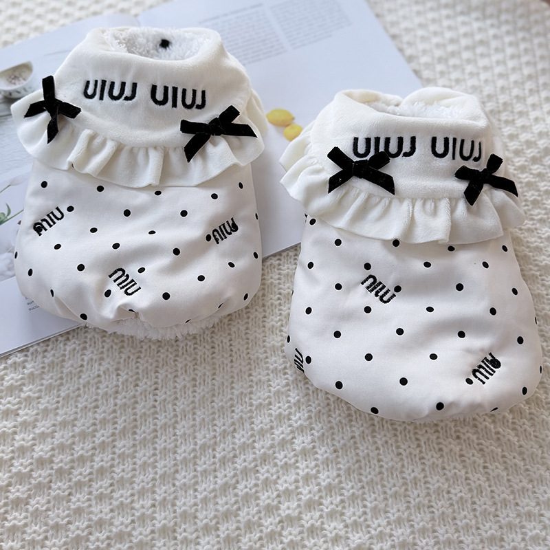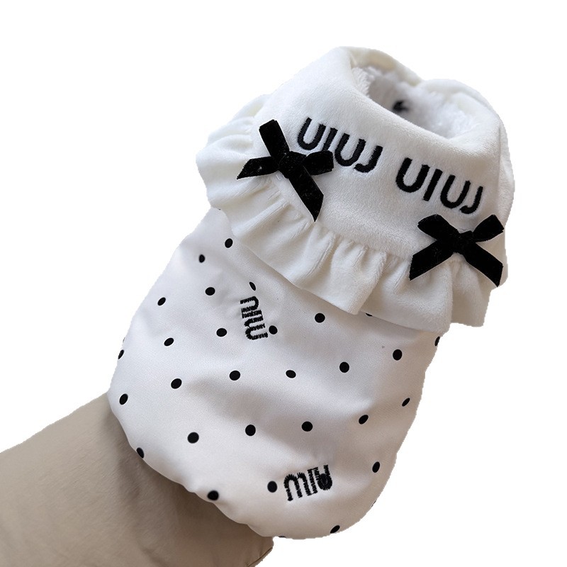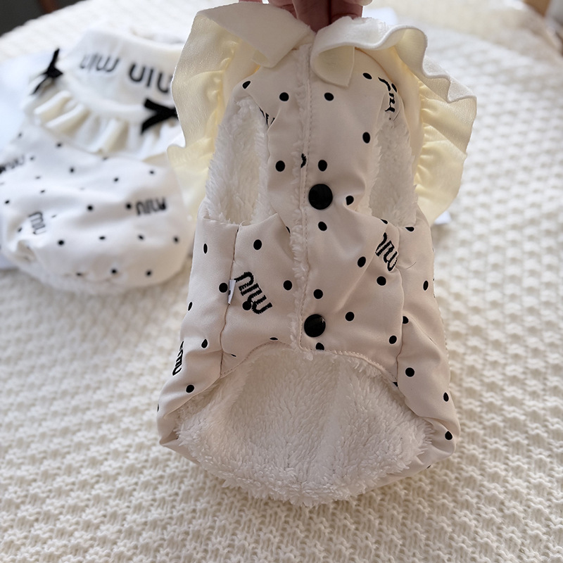 秋冬新款宠物狗狗猫咪衣服 棉服可牵引衣服 miu系点点甜美马甲