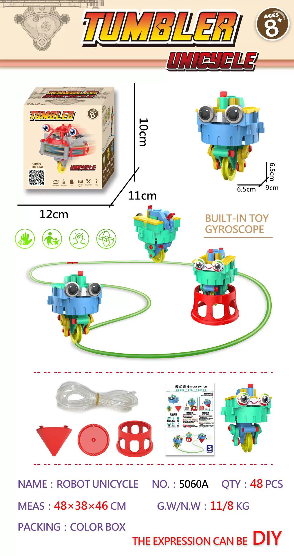 跨境儿童走钢丝机器人益智玩具DIY拼装黑科技不倒翁独轮车自平衡