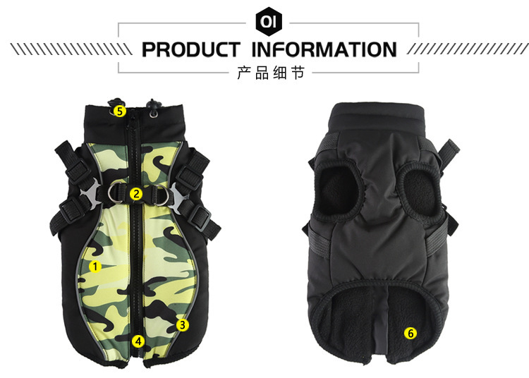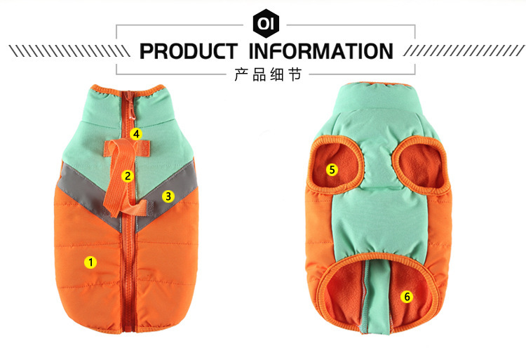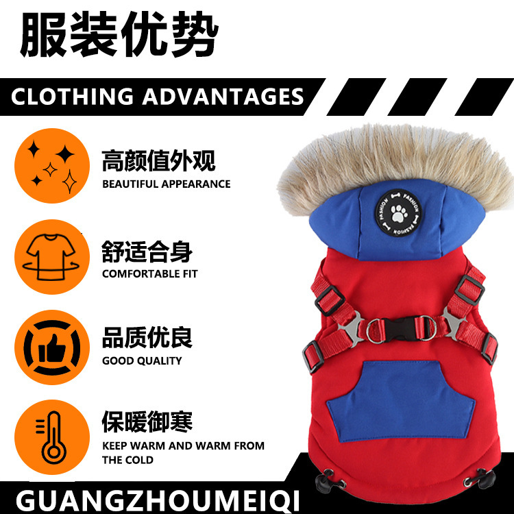 跨境热销宠物衣服秋冬季保暖防水反光条中大型犬棉衣外套狗狗服装