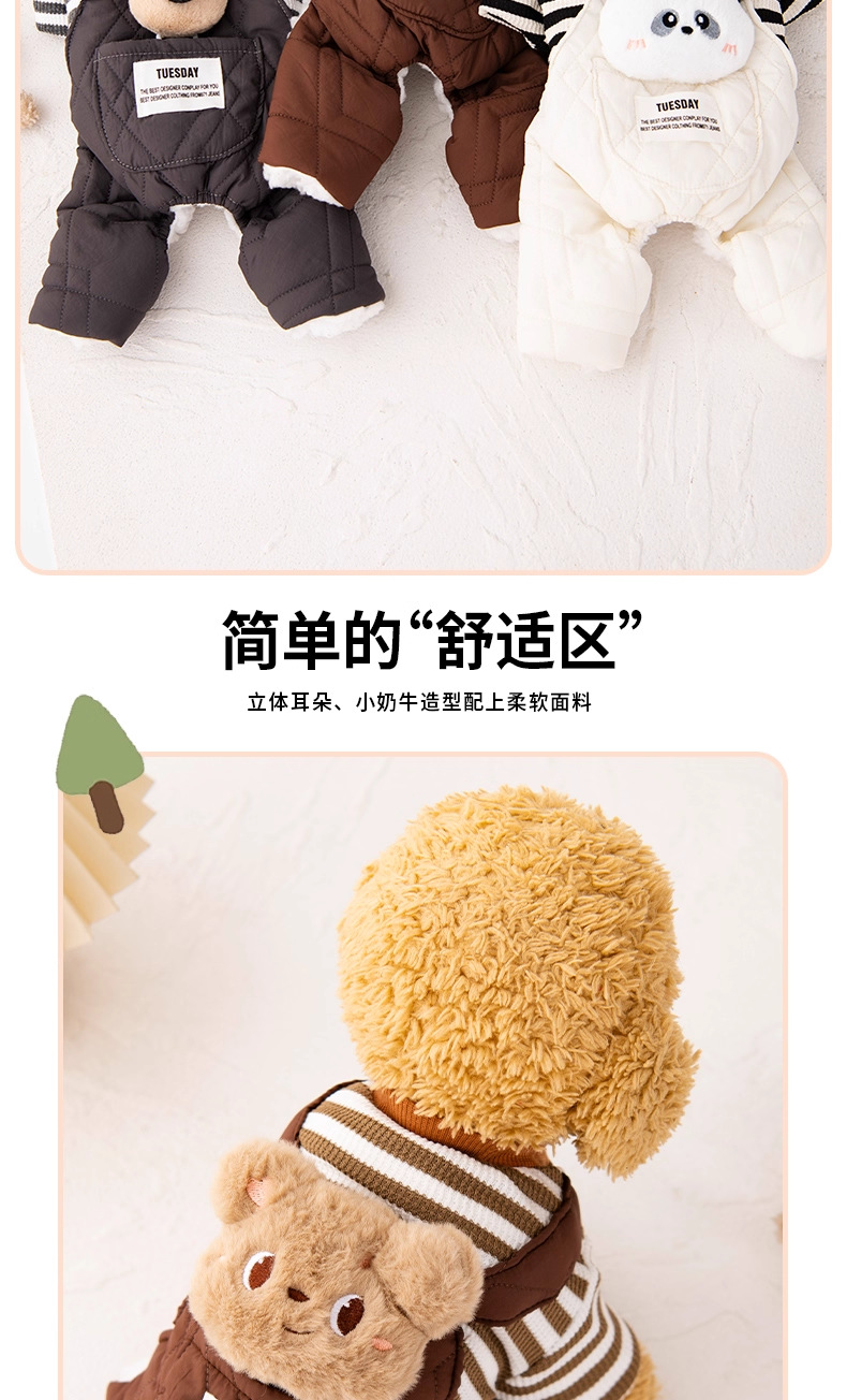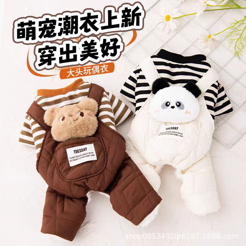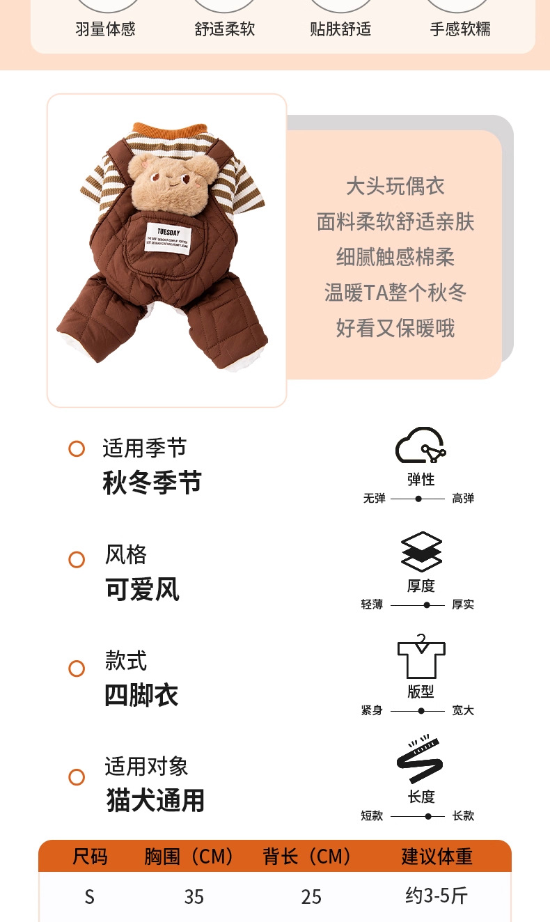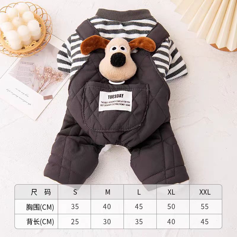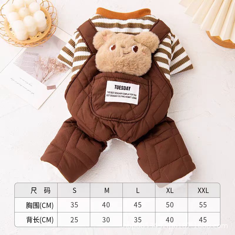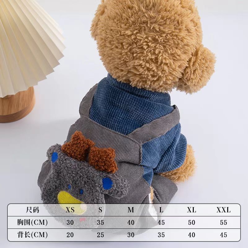狗狗衣服秋冬装厚款大口袋四脚立体卡通背带裤小型犬泰迪宠物棉服