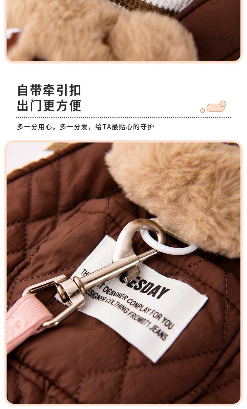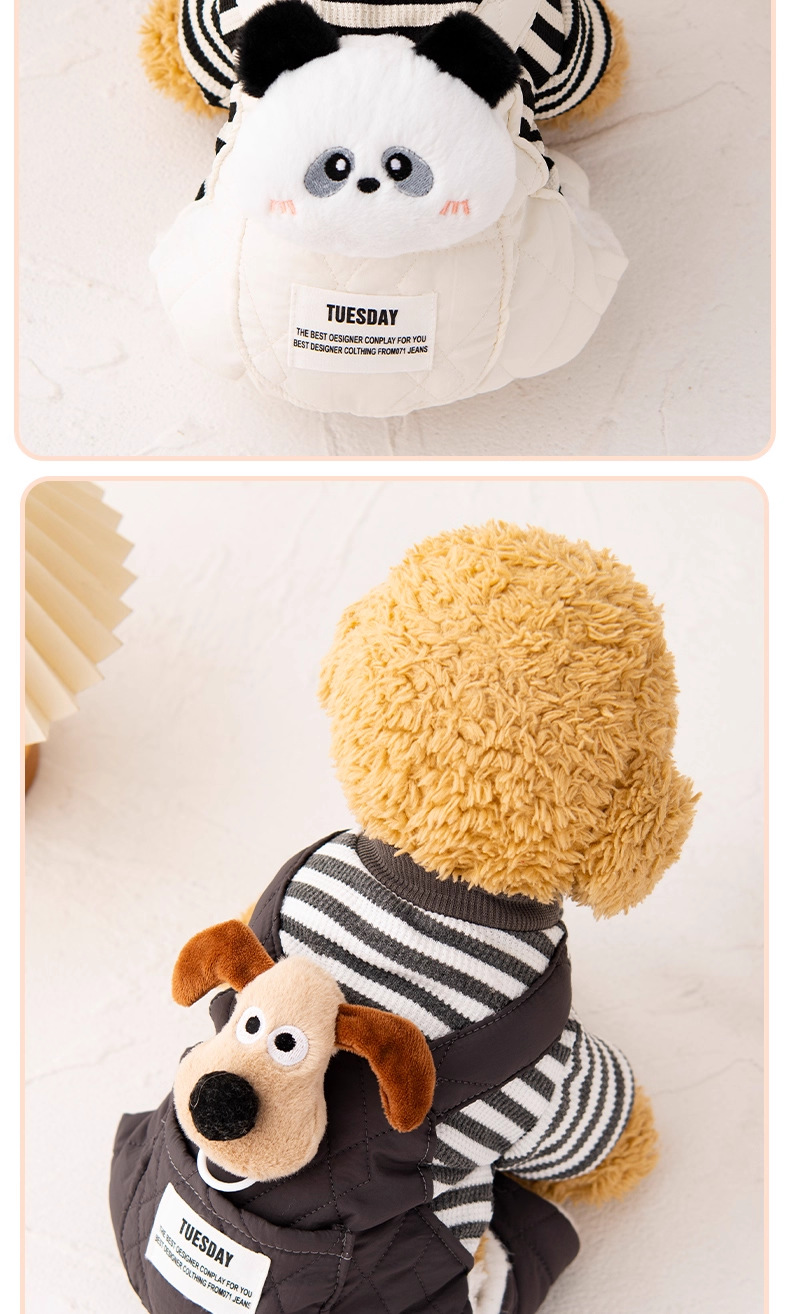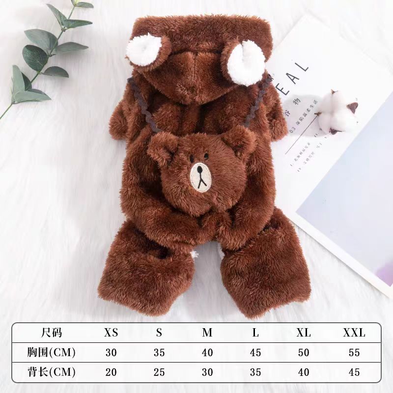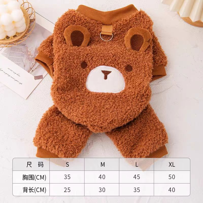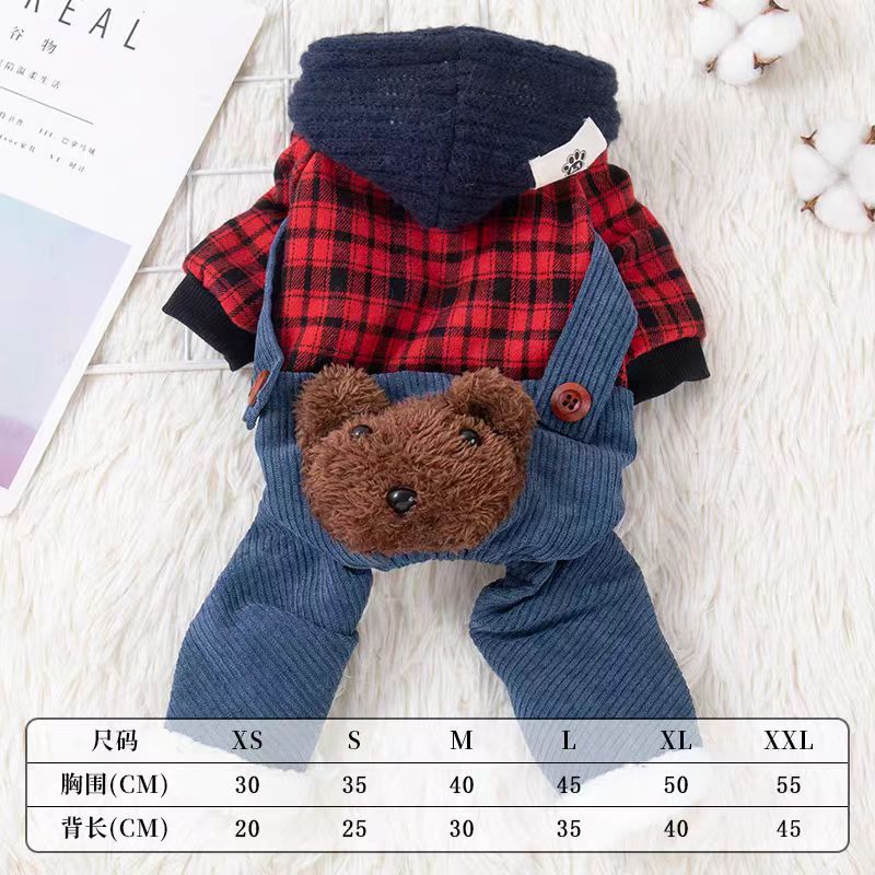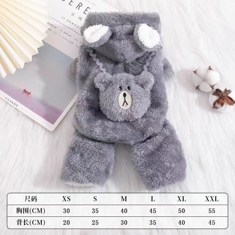 狗狗衣服秋冬装厚款大口袋四脚立体卡通背带裤小型犬泰迪宠物棉服