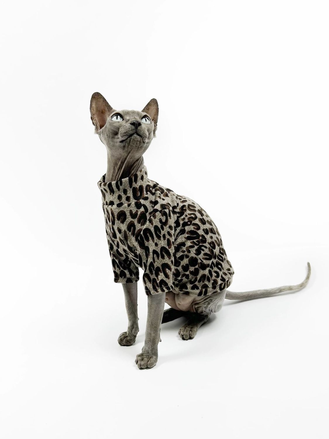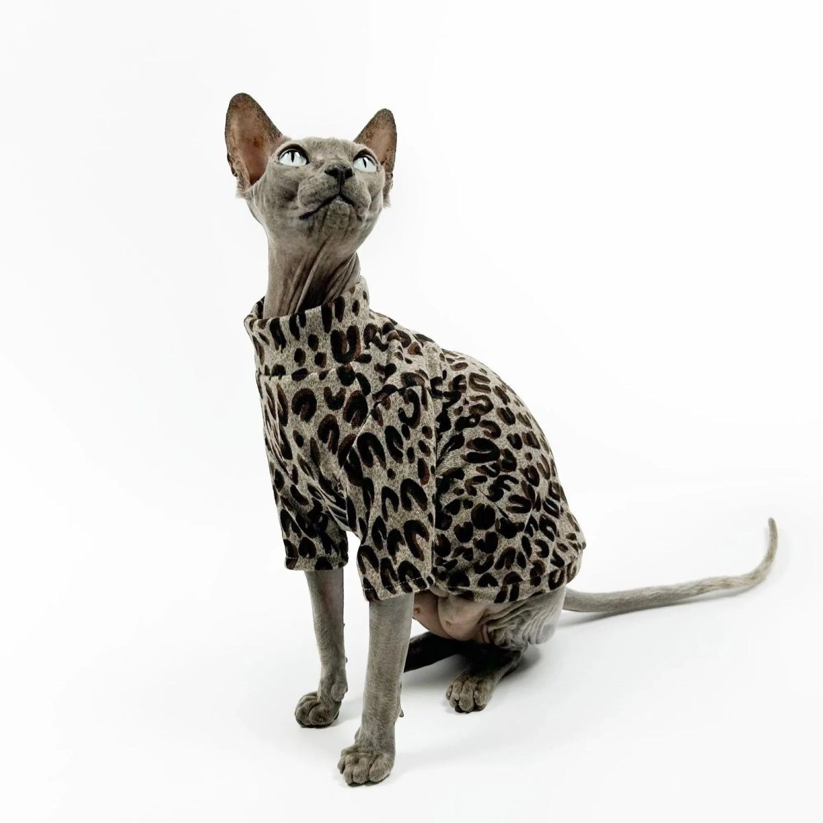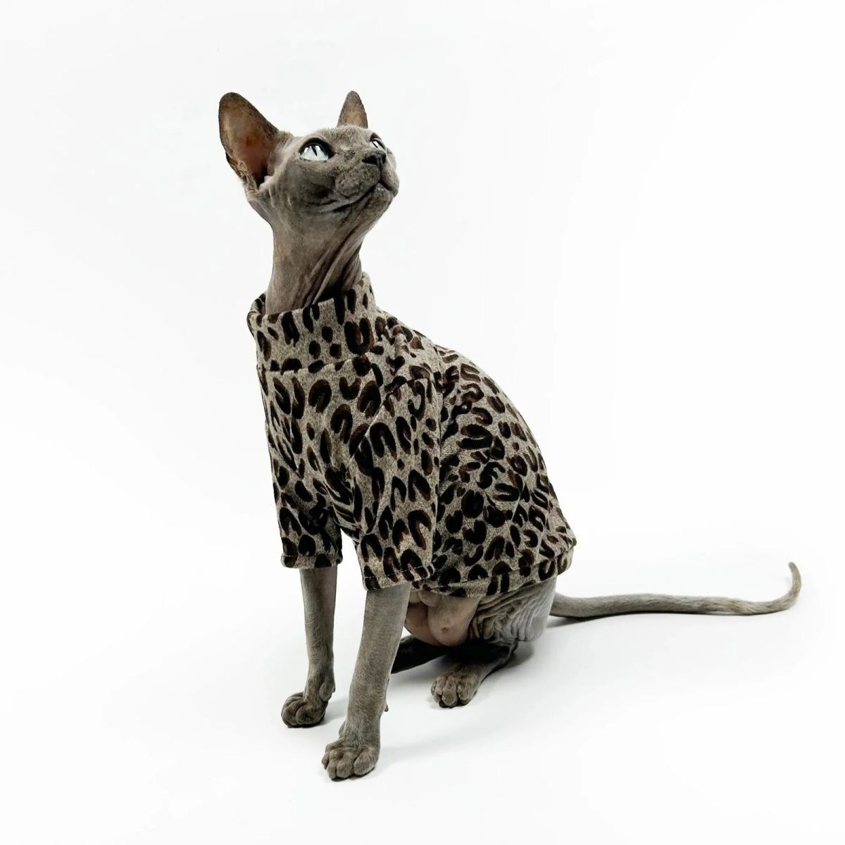 冬季无毛猫衣服斯芬克斯德文空调服薄款打底衫豹纹潮酷猫咪四脚衣