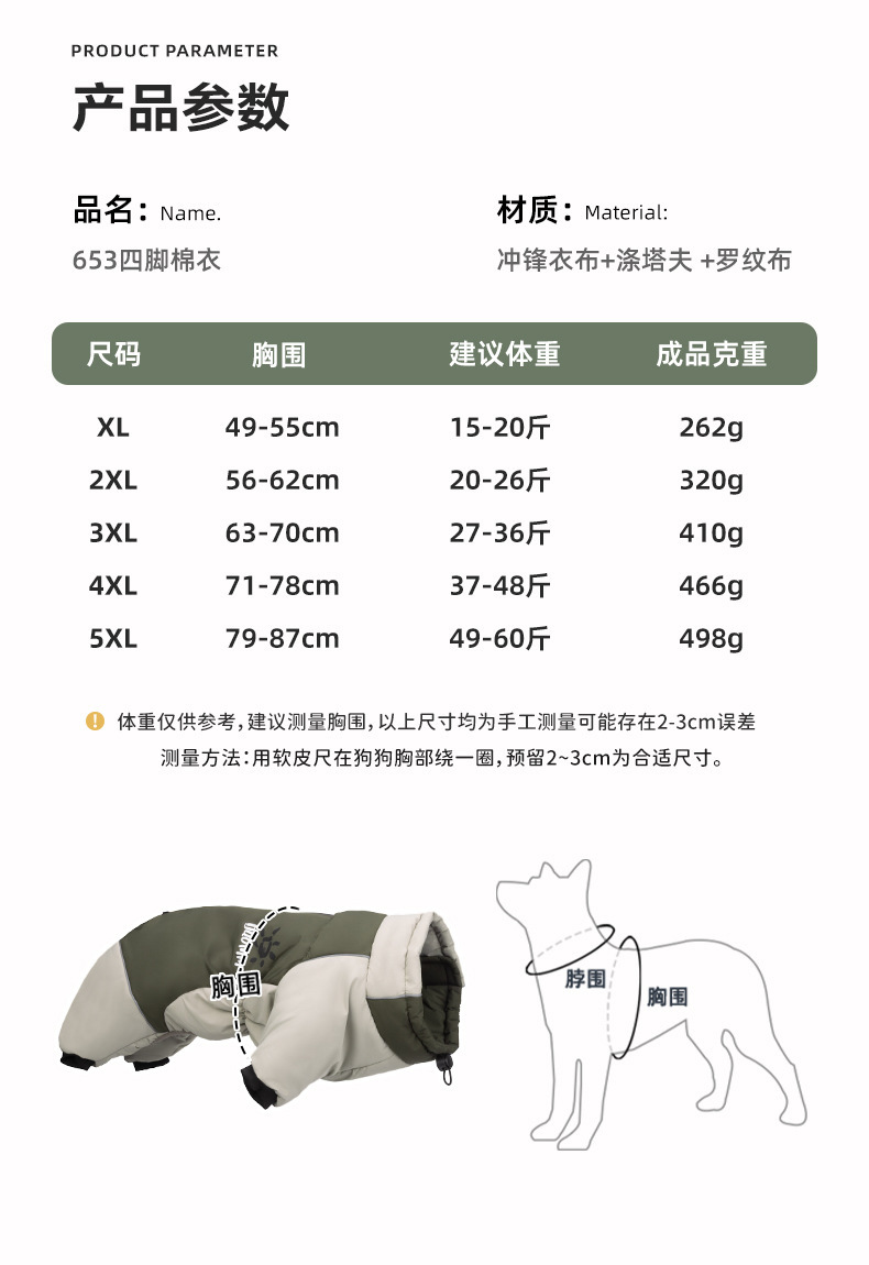 新款狗狗秋冬衣服防风保暖防水加厚冲锋衣棉服高亮强反光狗狗棉服