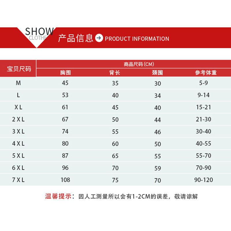 | 3XL胸围74体重(30--40斤) | USD $4.21 | 867 piece available |