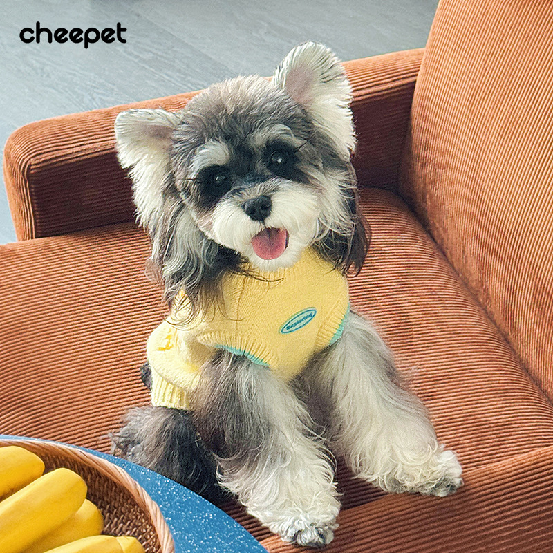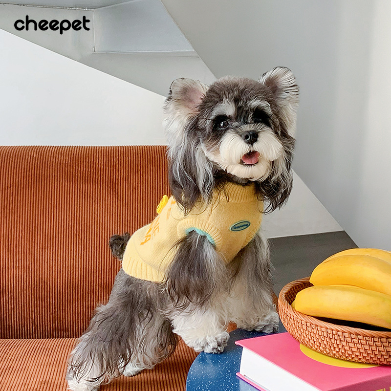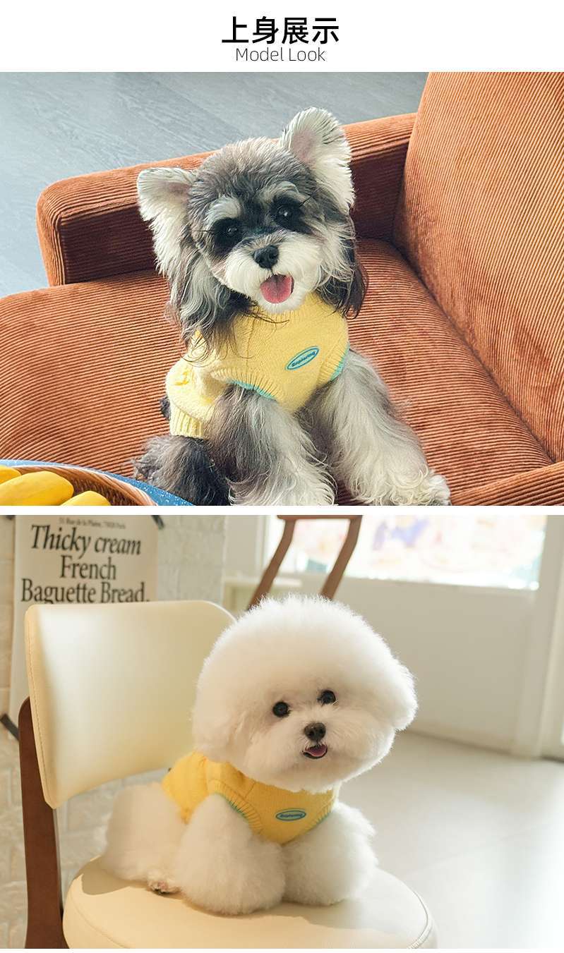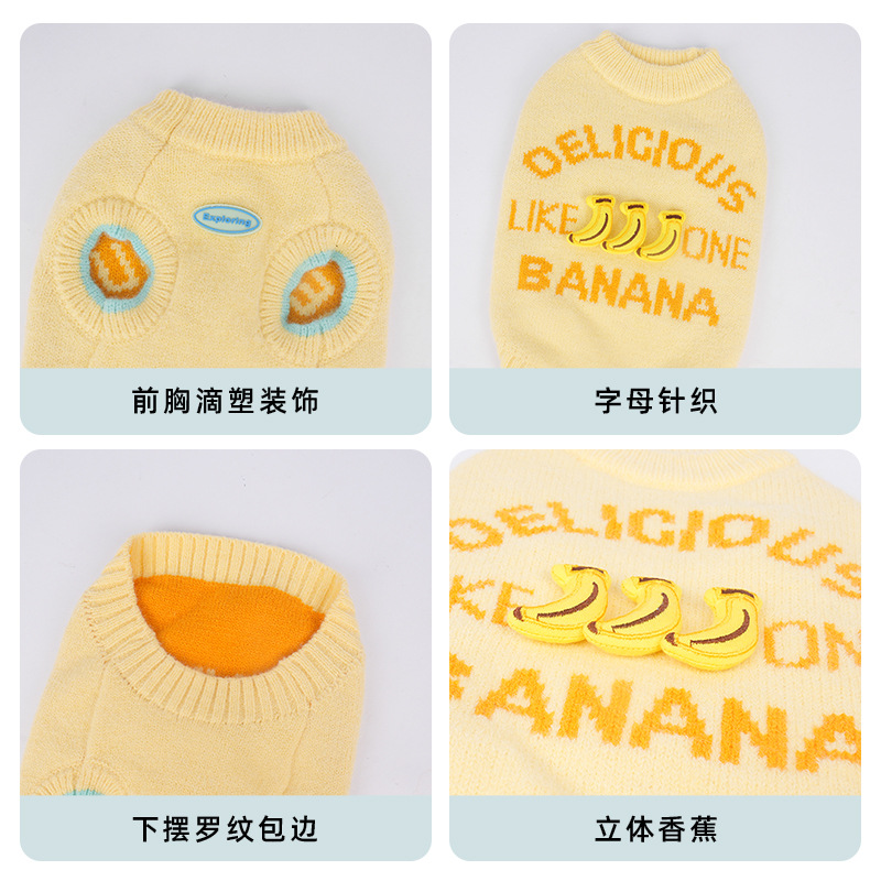 趣派甜美可爱立体香蕉刺绣针织衫泰迪小狗狗无袖毛衣外套秋冬装
