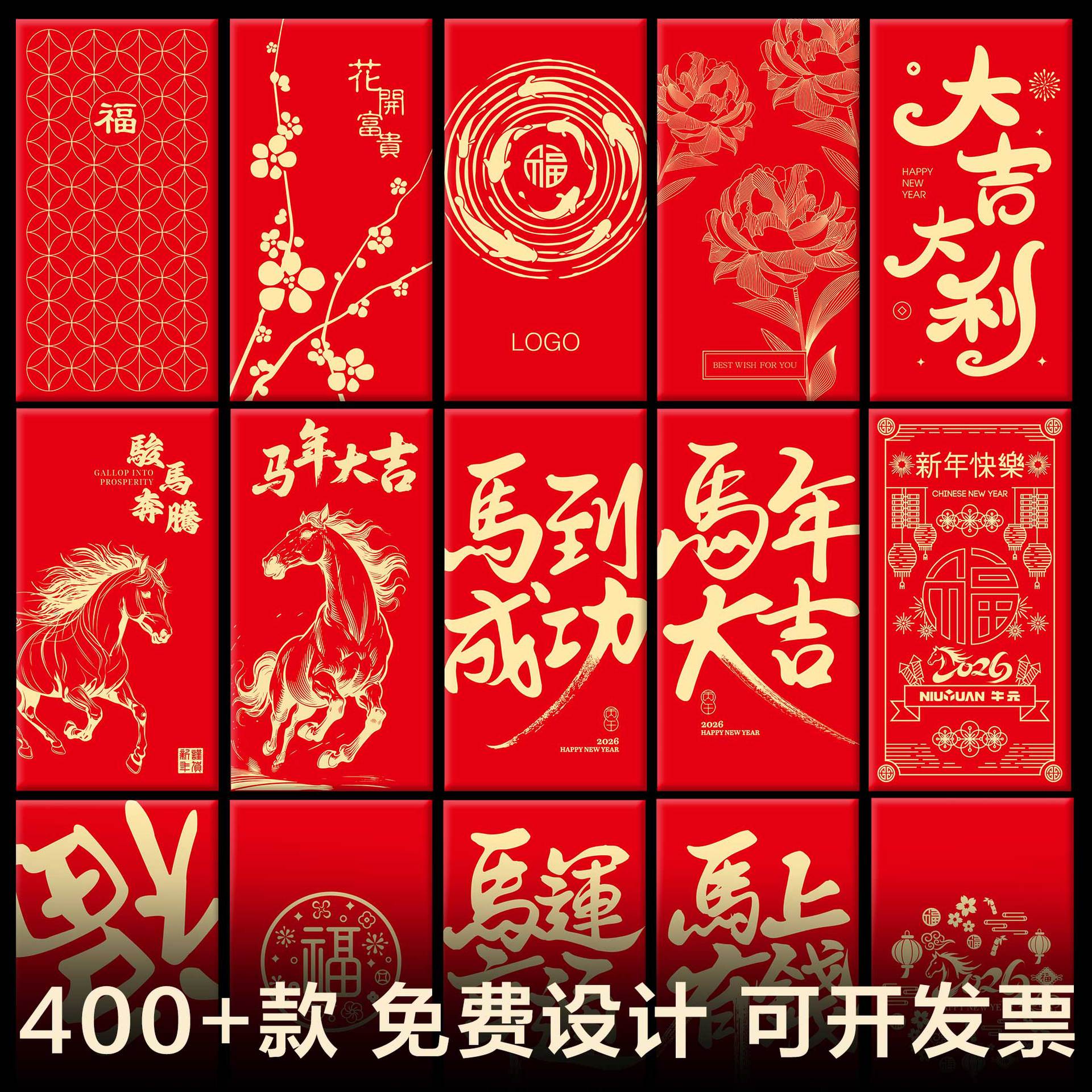 2026马年红包定制logo触感金色福字港版利是封创意广告红包袋定做