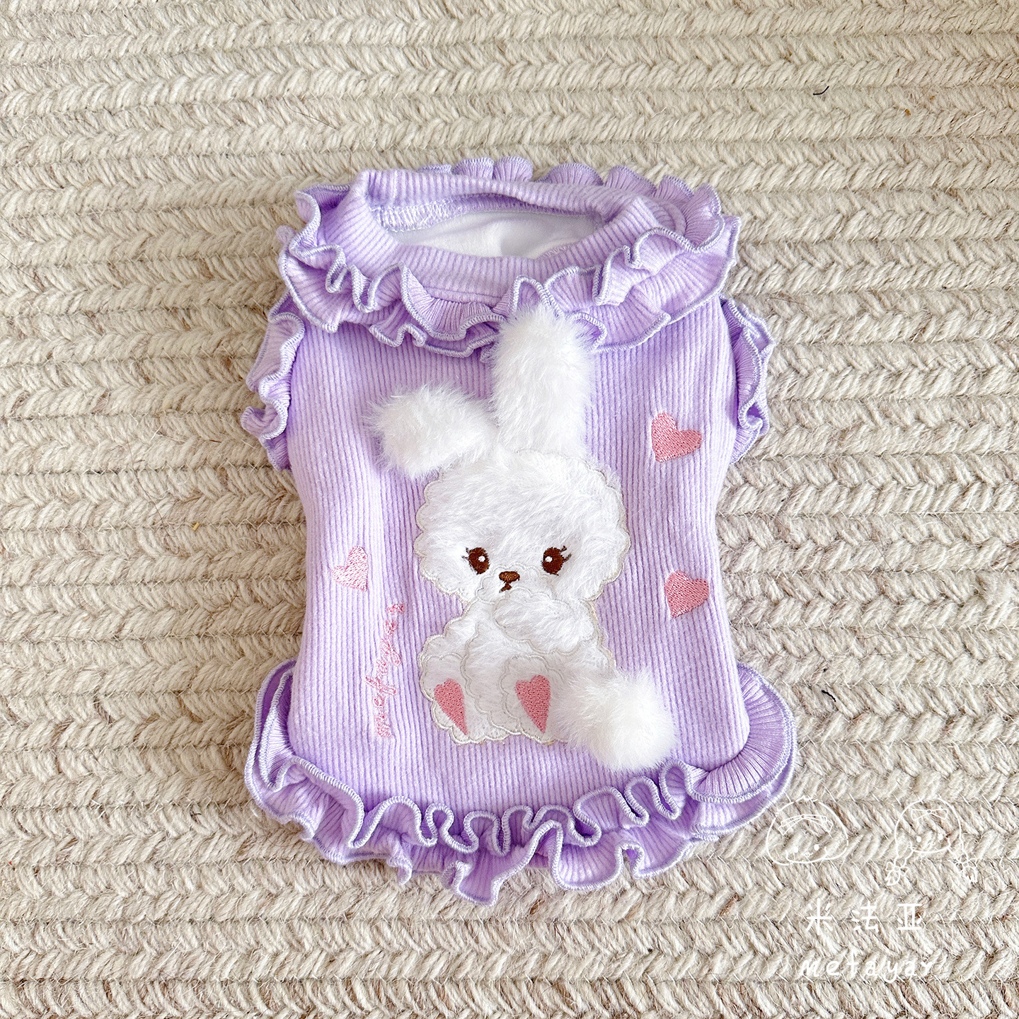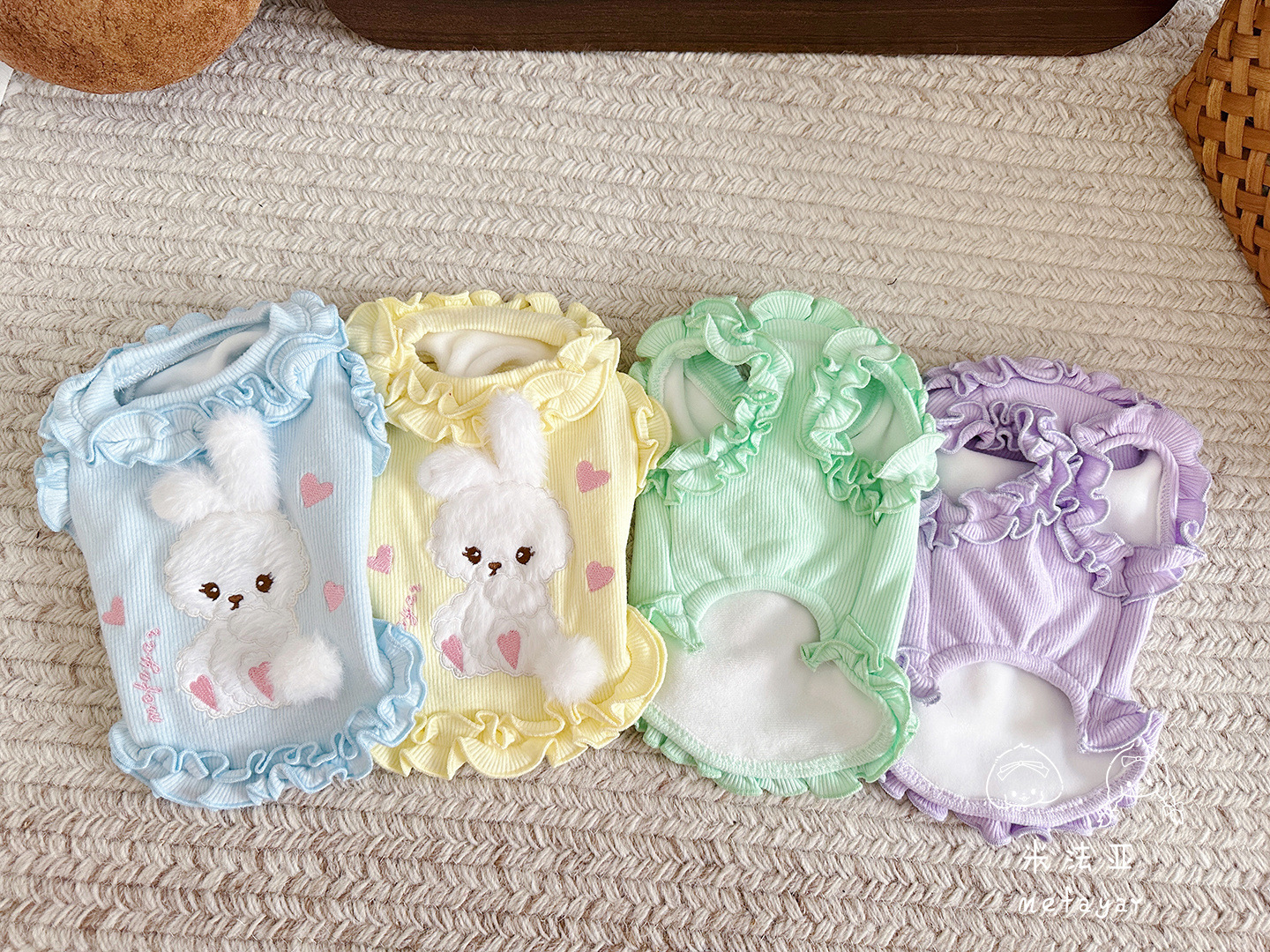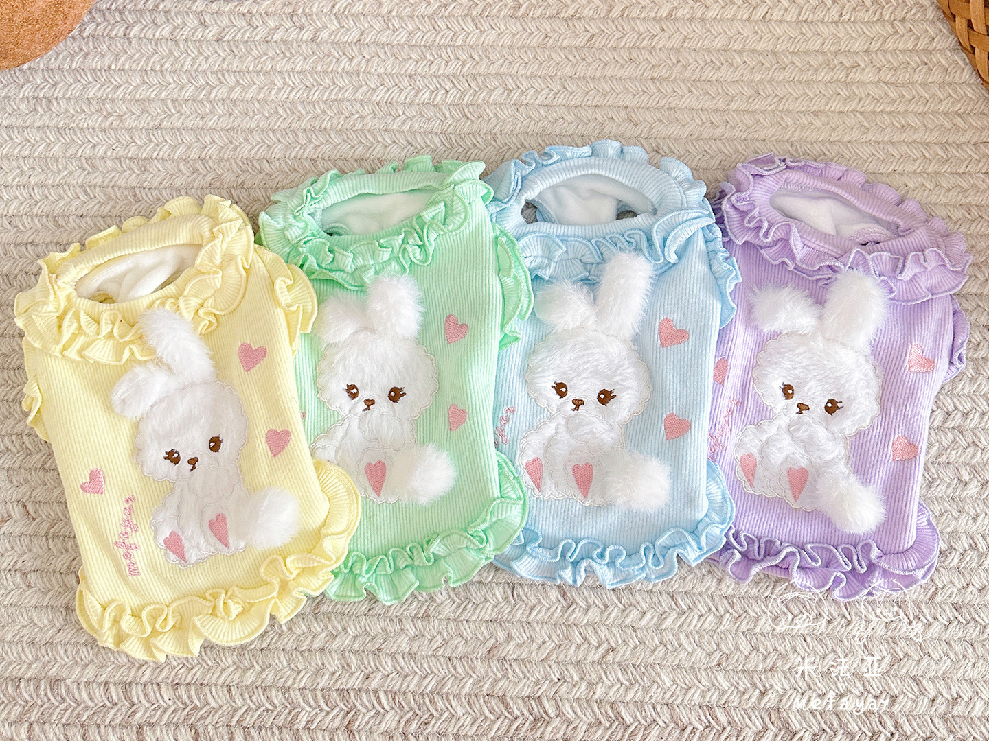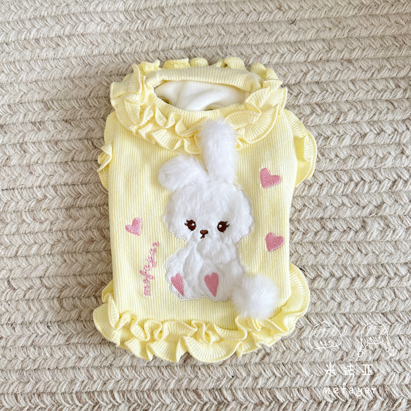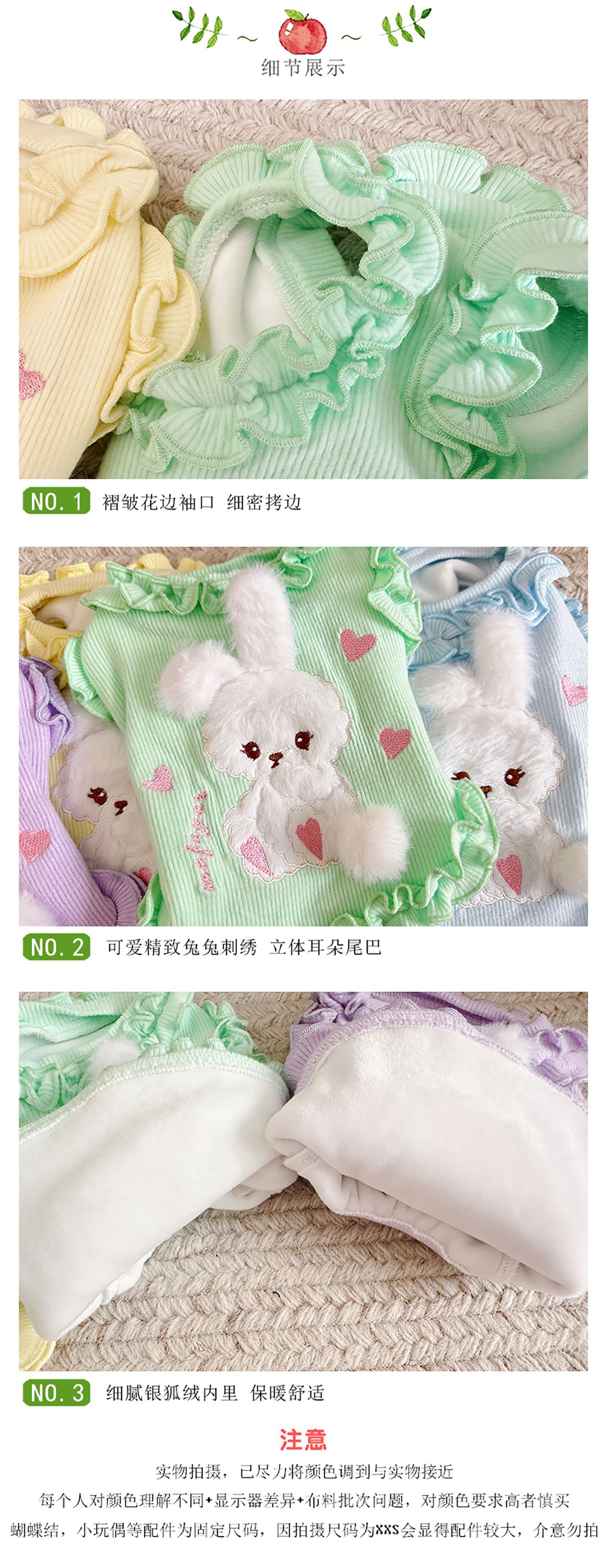 米法亚厂家直销宠物猫狗衣服秋冬加绒加厚花边可爱立体立耳兔毛球