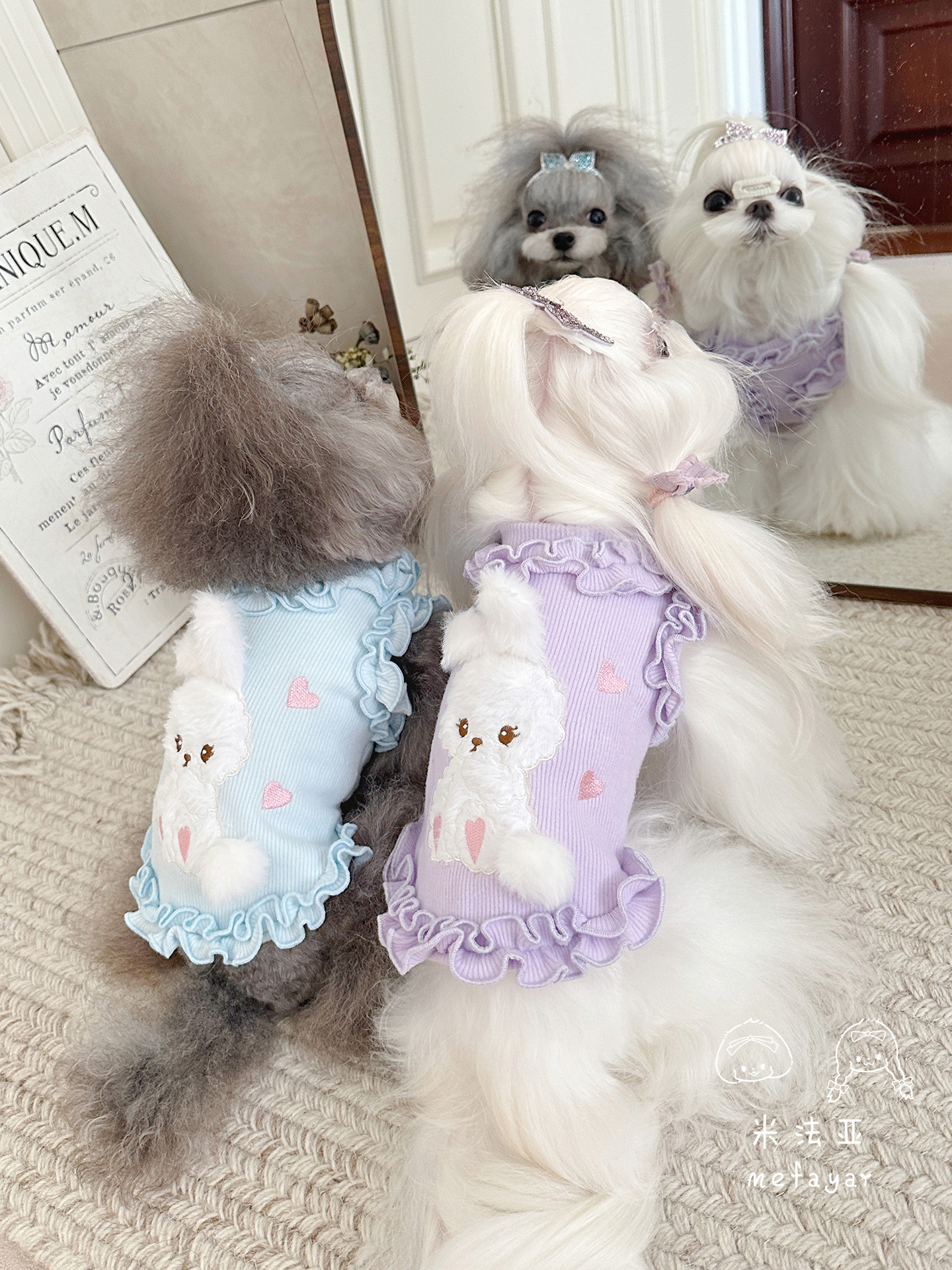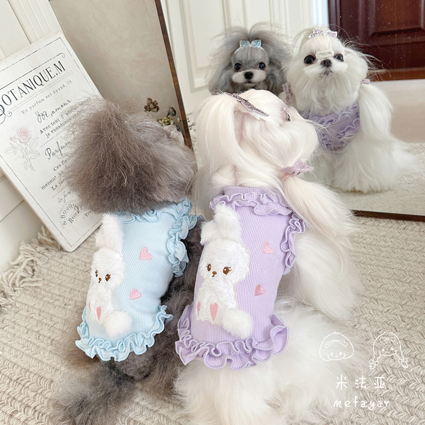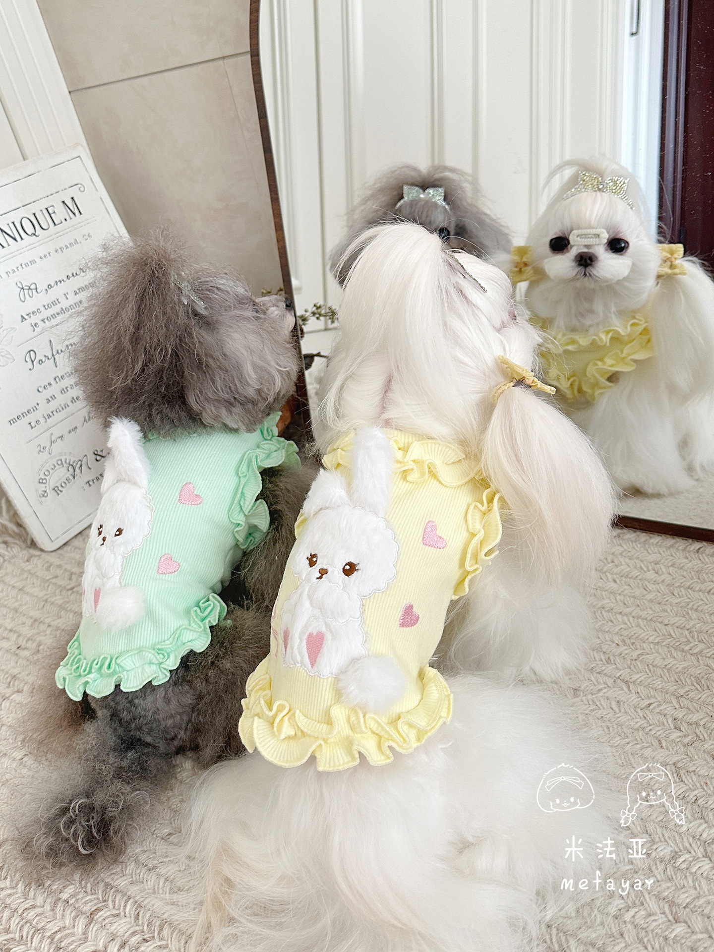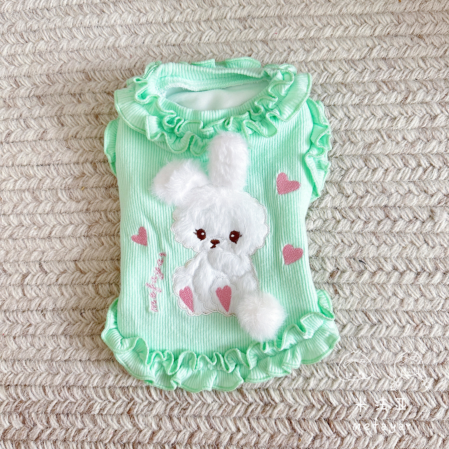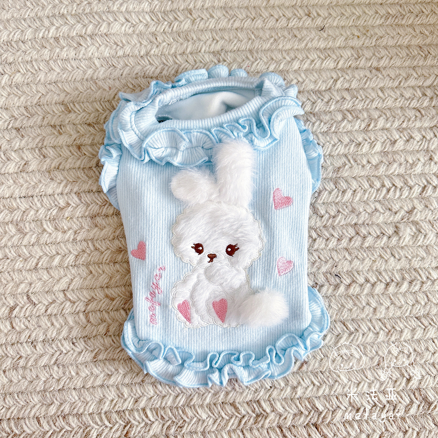 米法亚厂家直销宠物猫狗衣服秋冬加绒加厚花边可爱立体立耳兔毛球