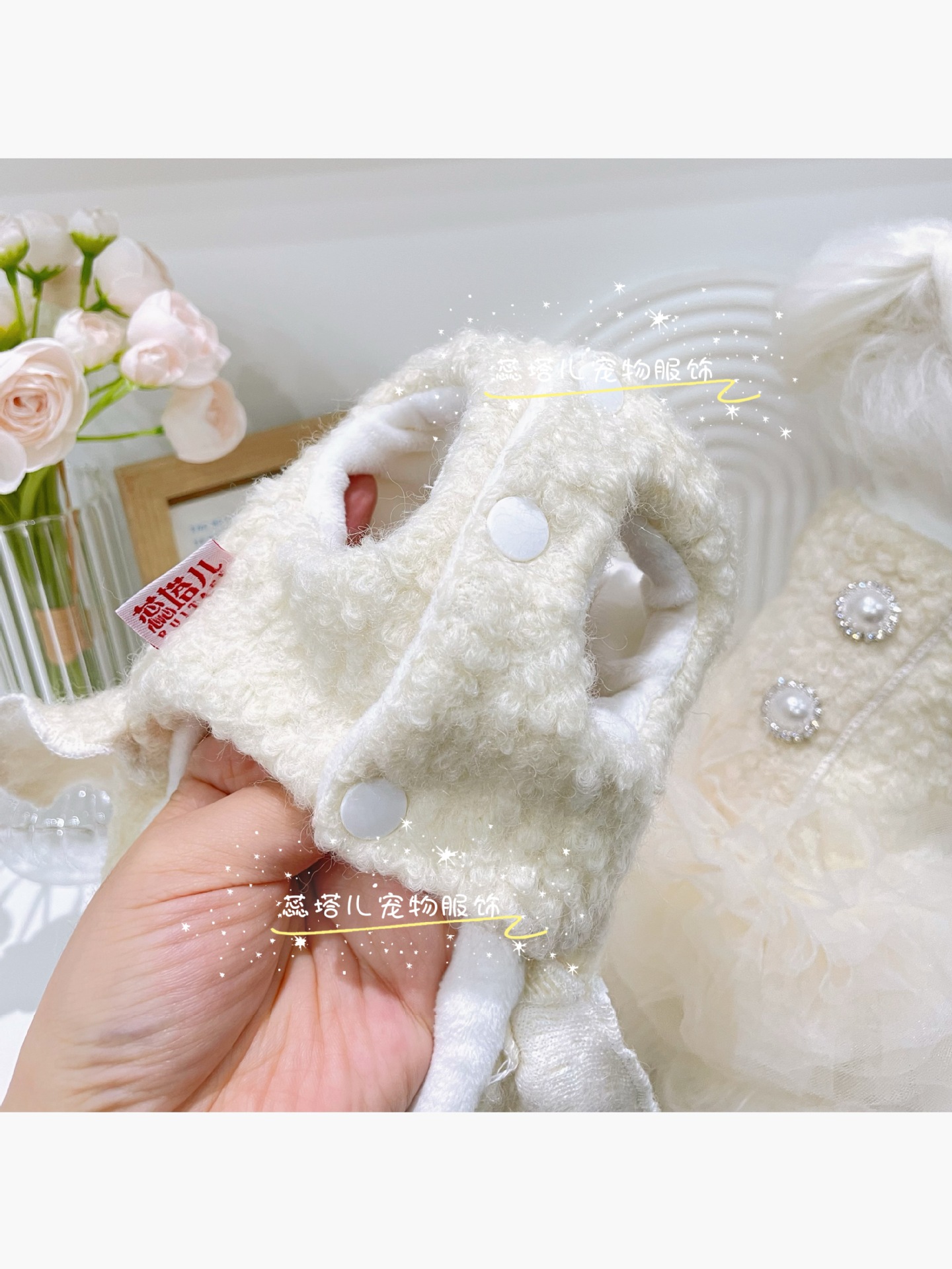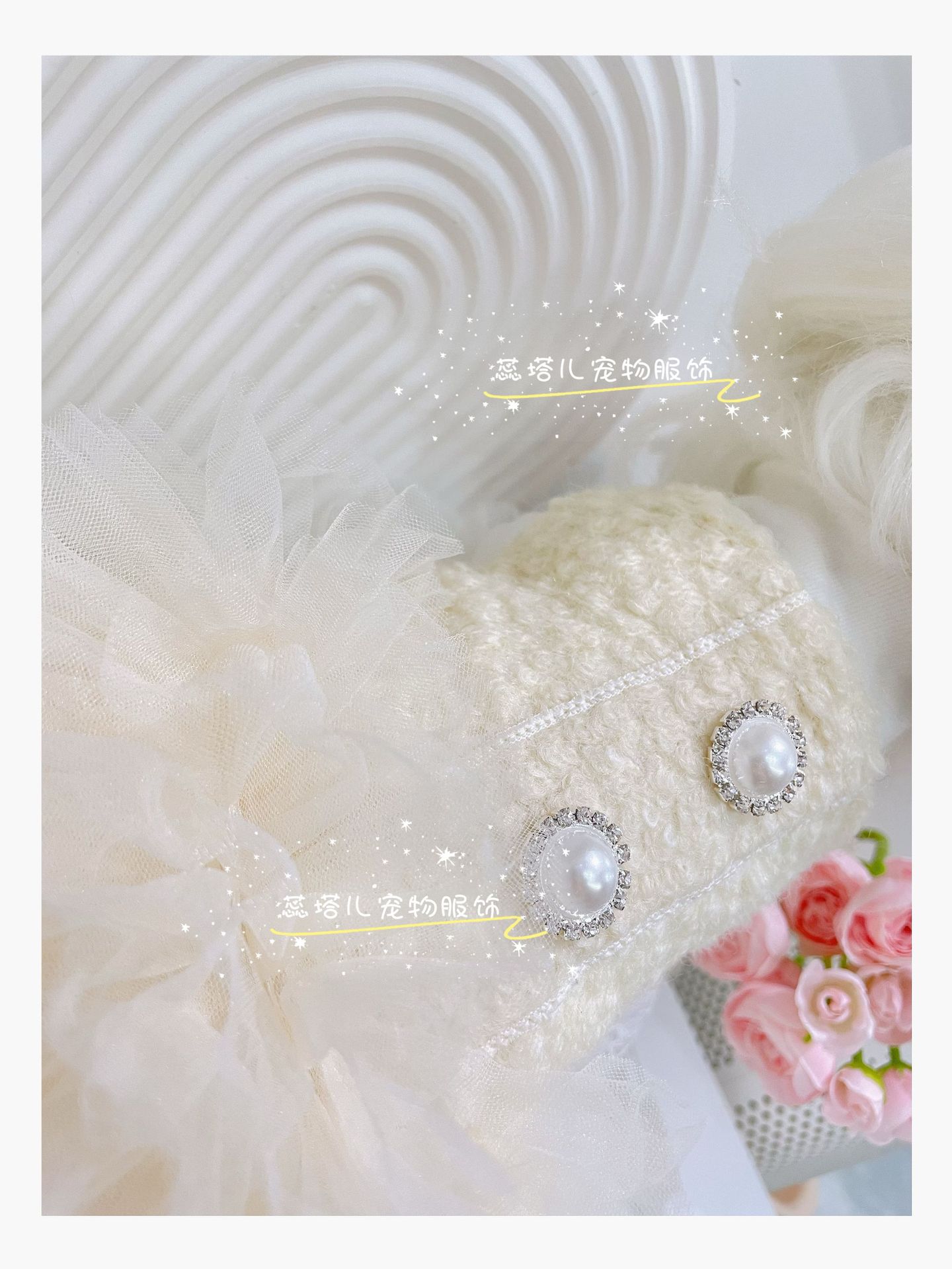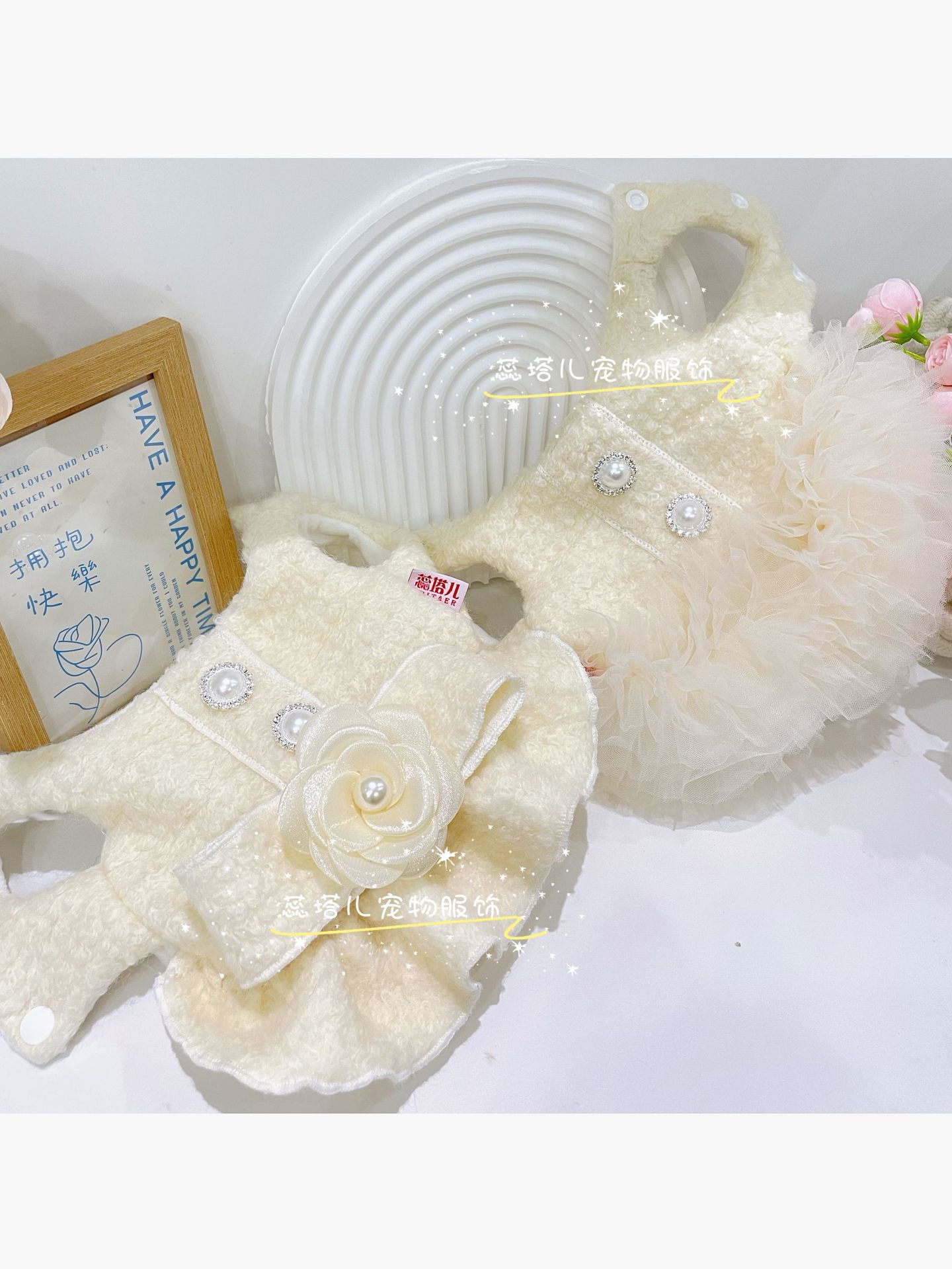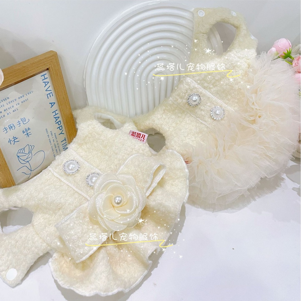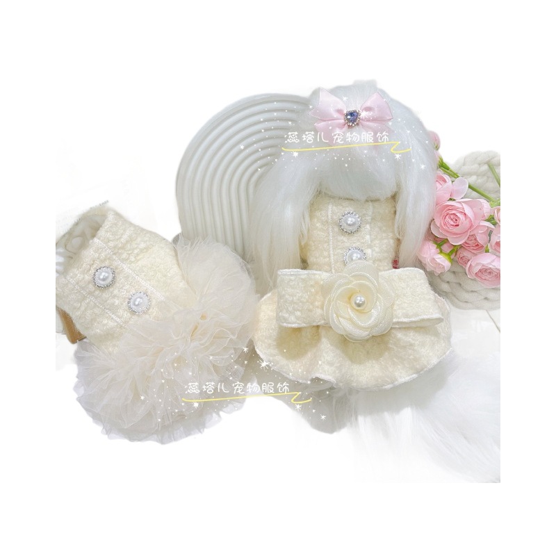小型犬马尔济斯衣服小香风米白色连衣裙蓝猫布偶猫冬装tutu裙毛呢
