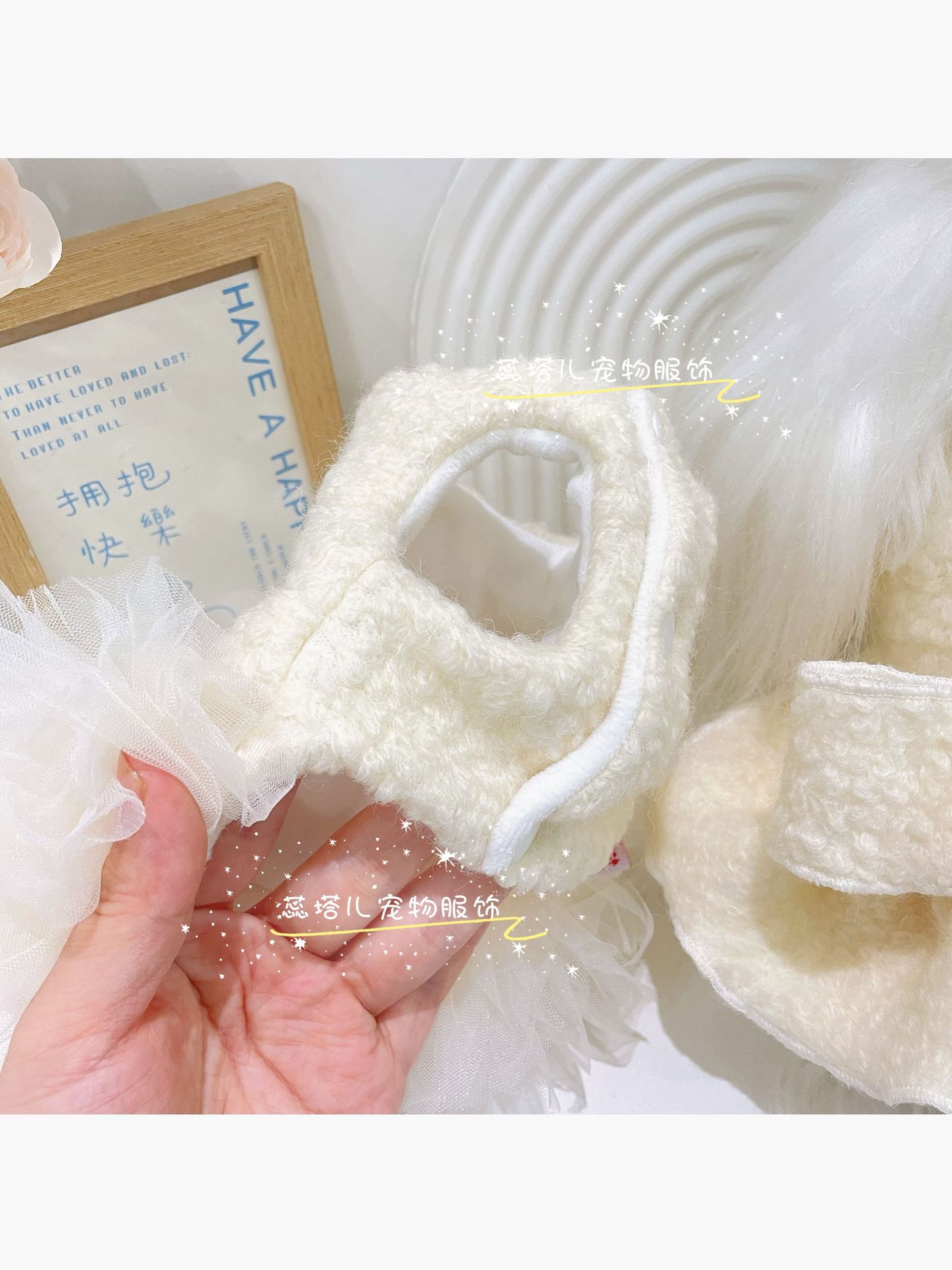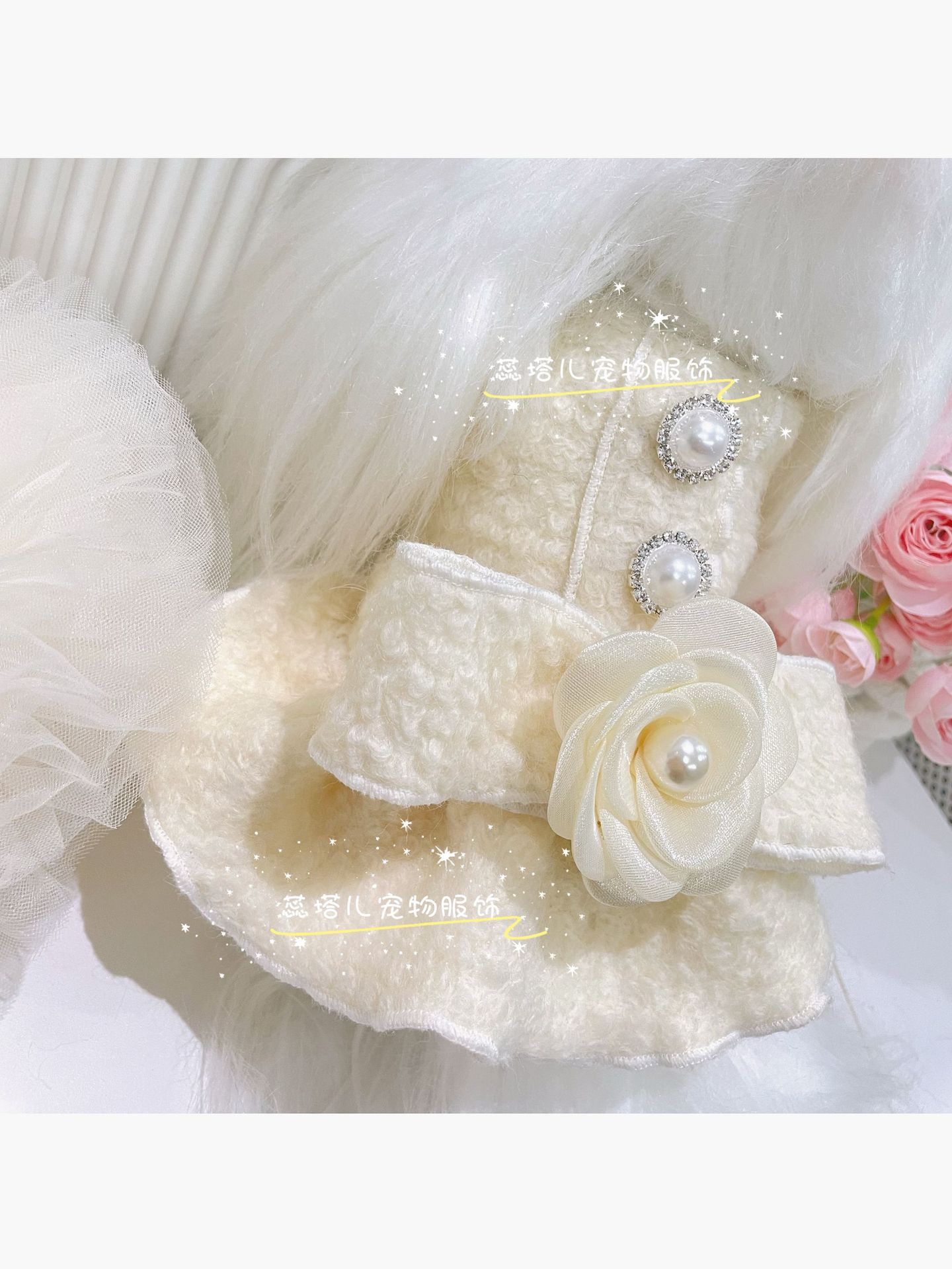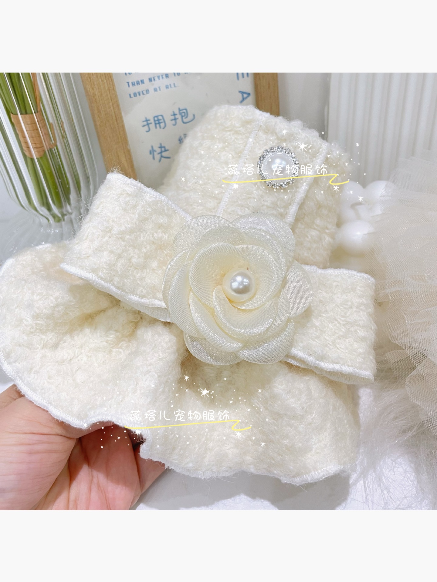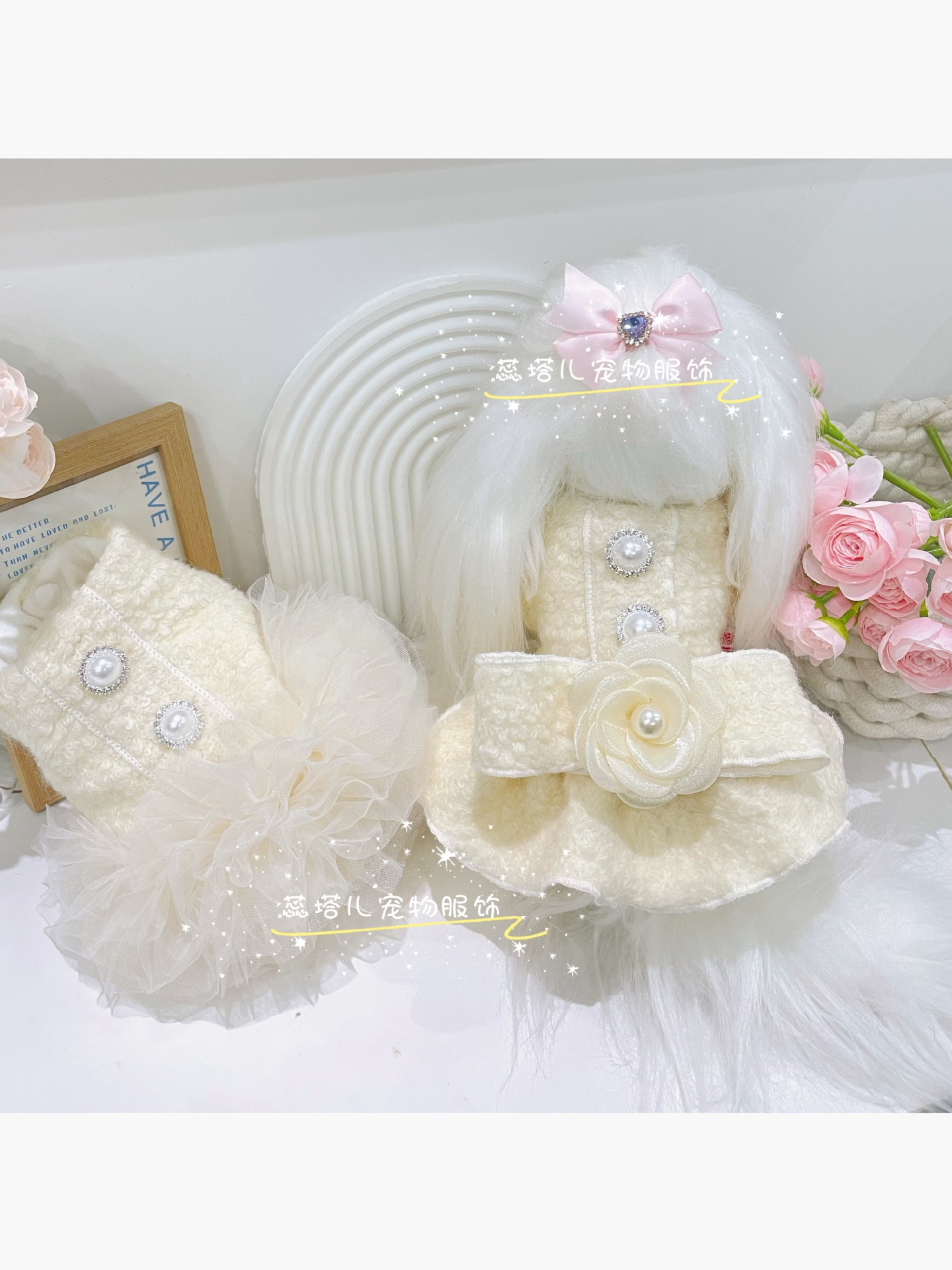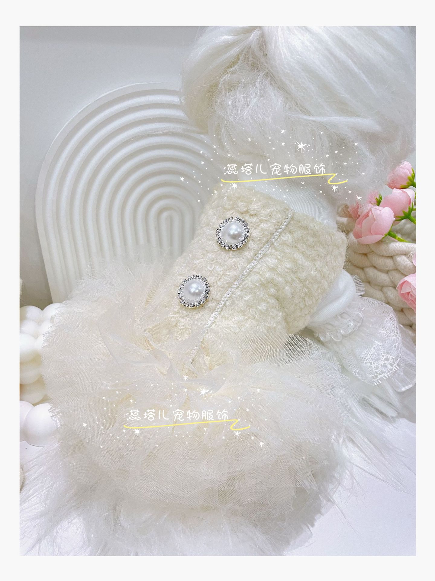 小型犬马尔济斯衣服小香风米白色连衣裙蓝猫布偶猫冬装tutu裙毛呢